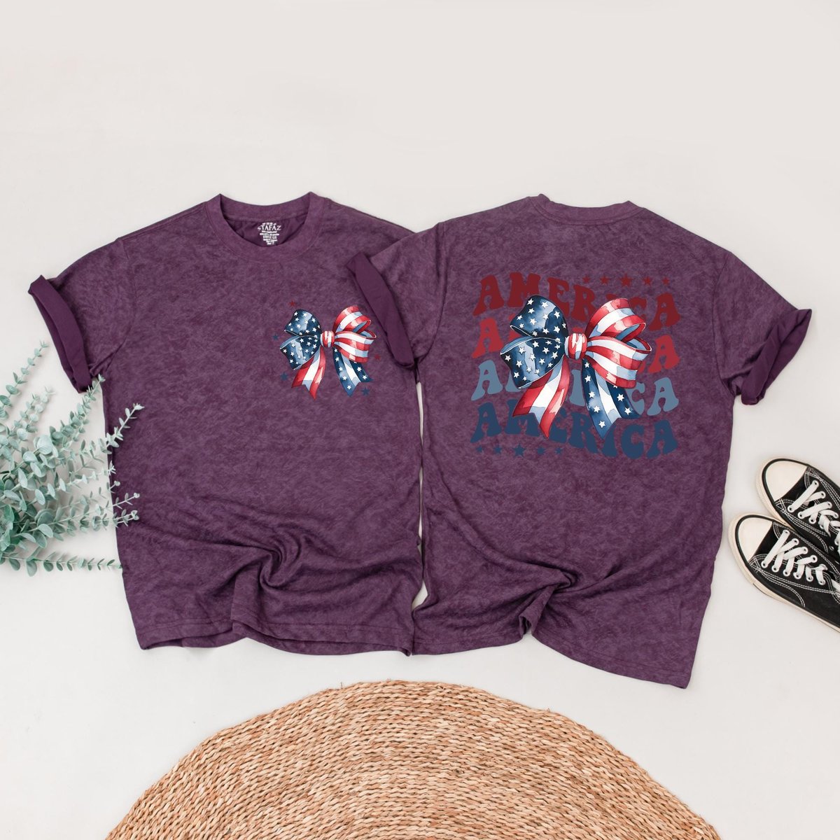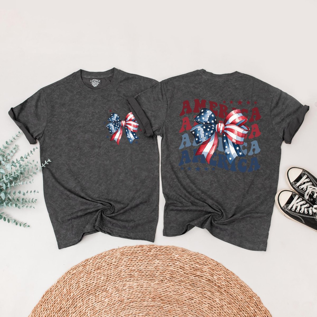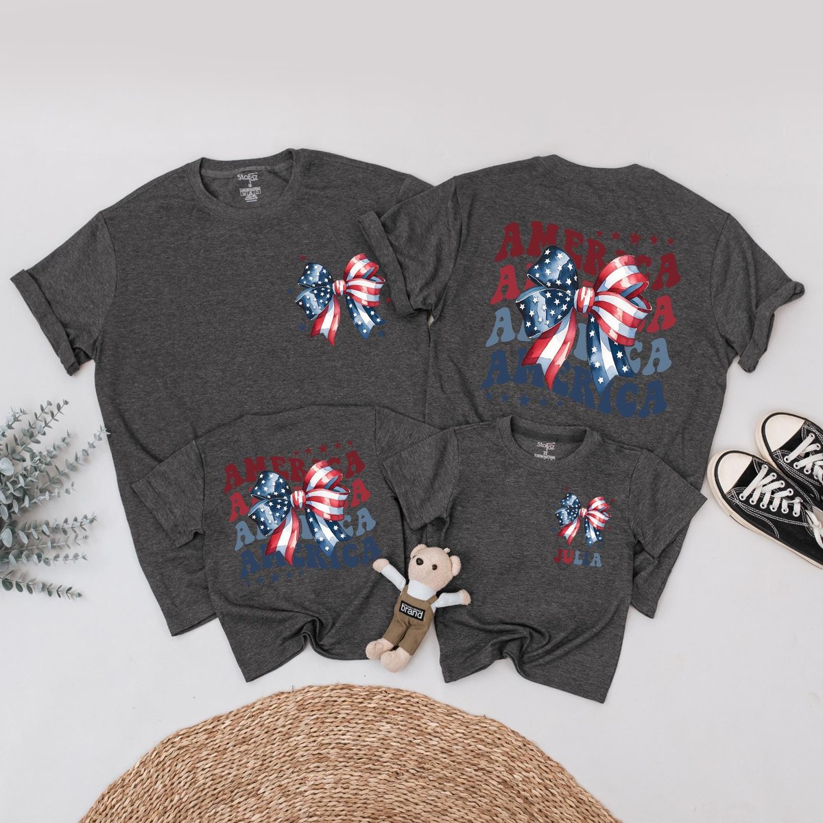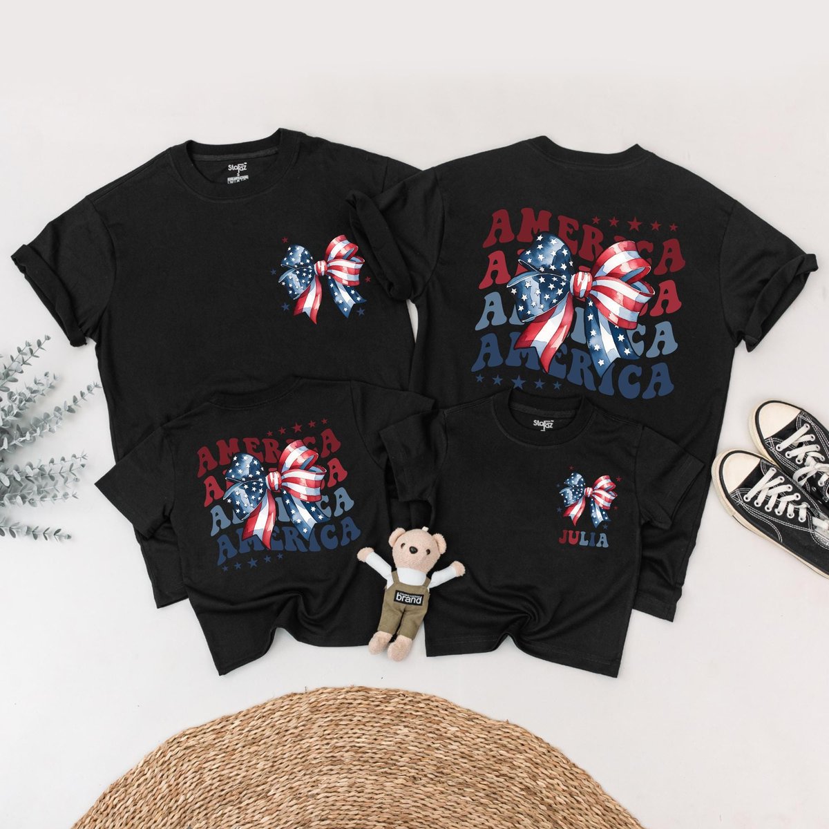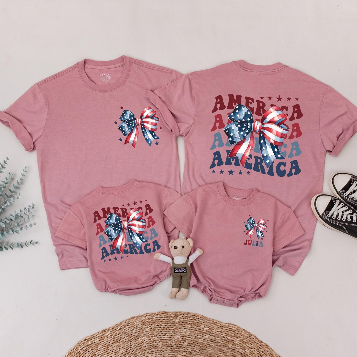 Custom 4th of July Family Outfits with USA Flag Bow Matching American Pride Shirts and Personalized 430