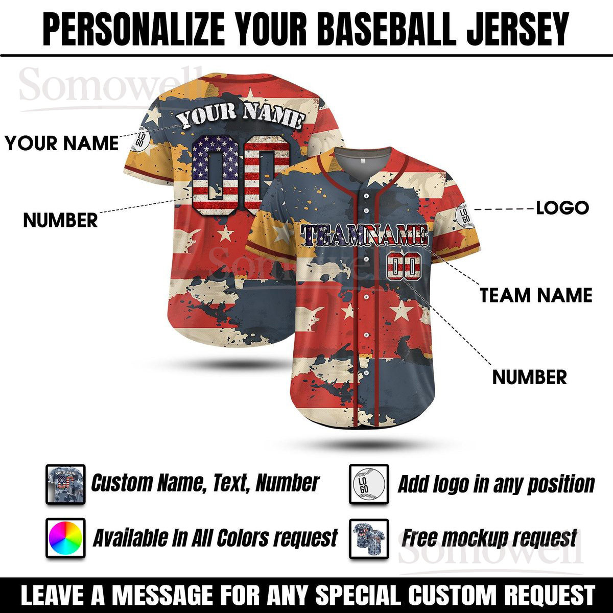 Custom American Flag Camo Baseball Jersey Personalized Team Name Number Patriotic Family Matching Outfit Multi Color Edition