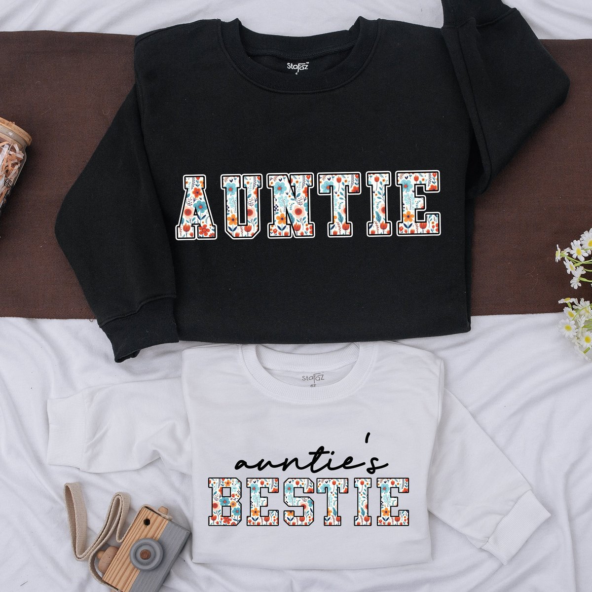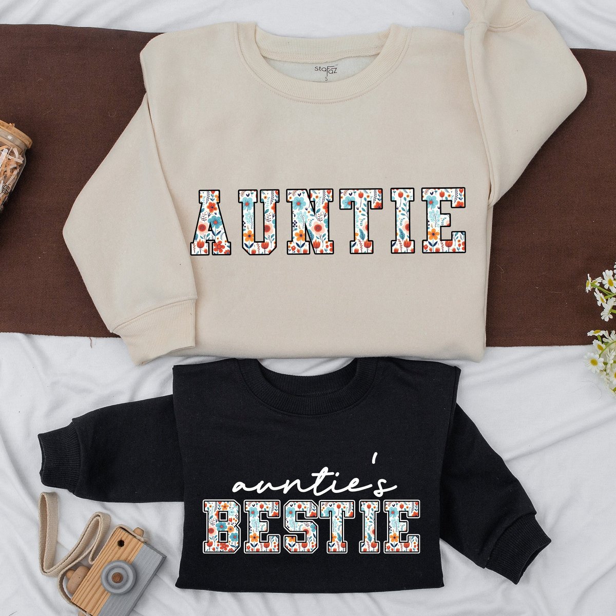 Custom Auntie And Auntie’s Bestie Sweatshirt Aunt and Nephew Shirts baby romper Gift for Her Floral 164