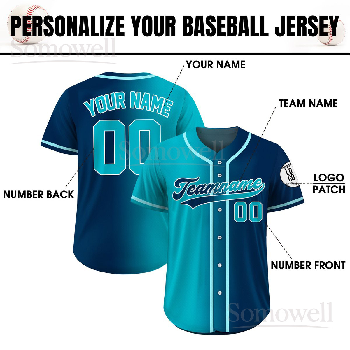 Custom Baseball Jersey Gradient with Teamname Name Number Personalized Ombre Teamwear Multi Color Edition