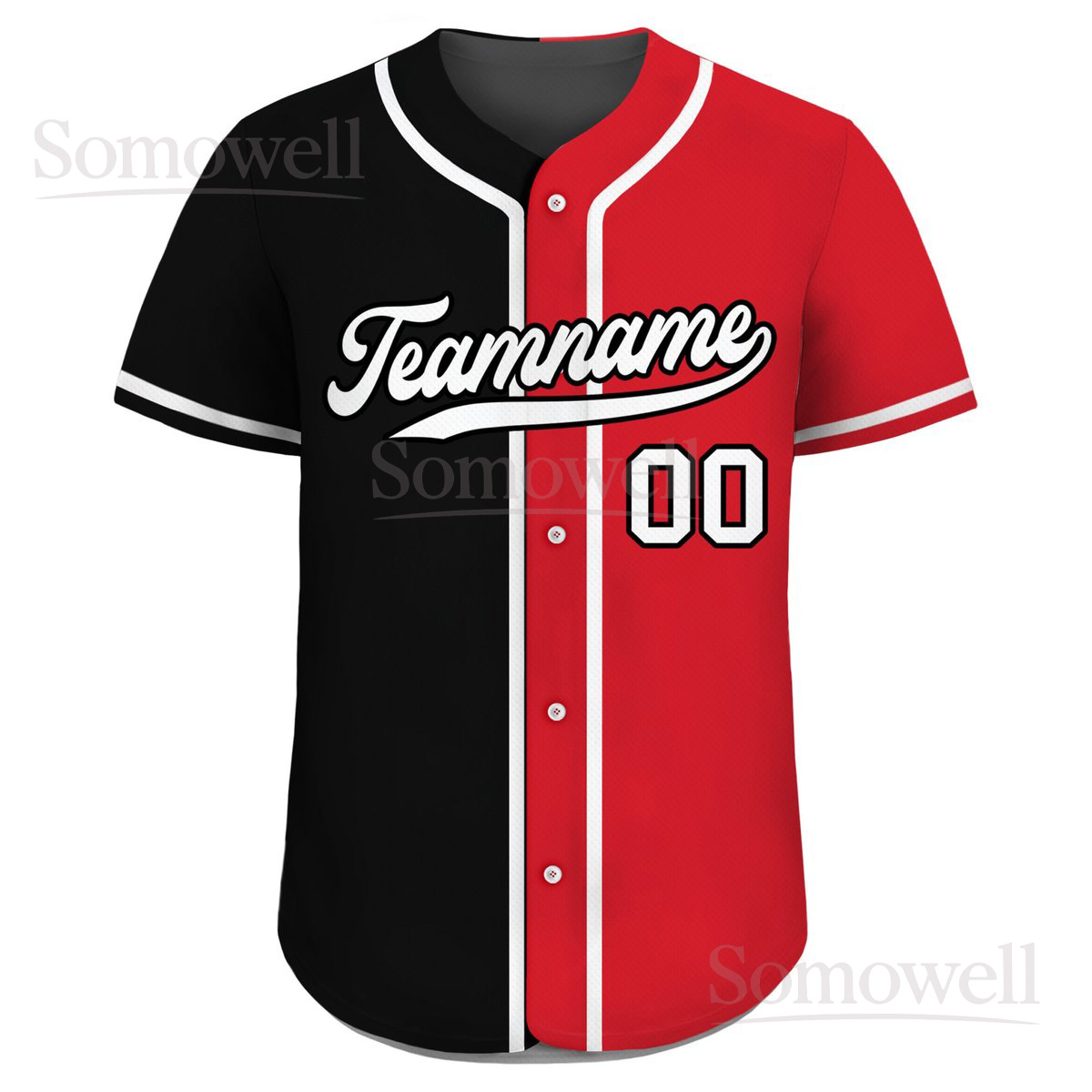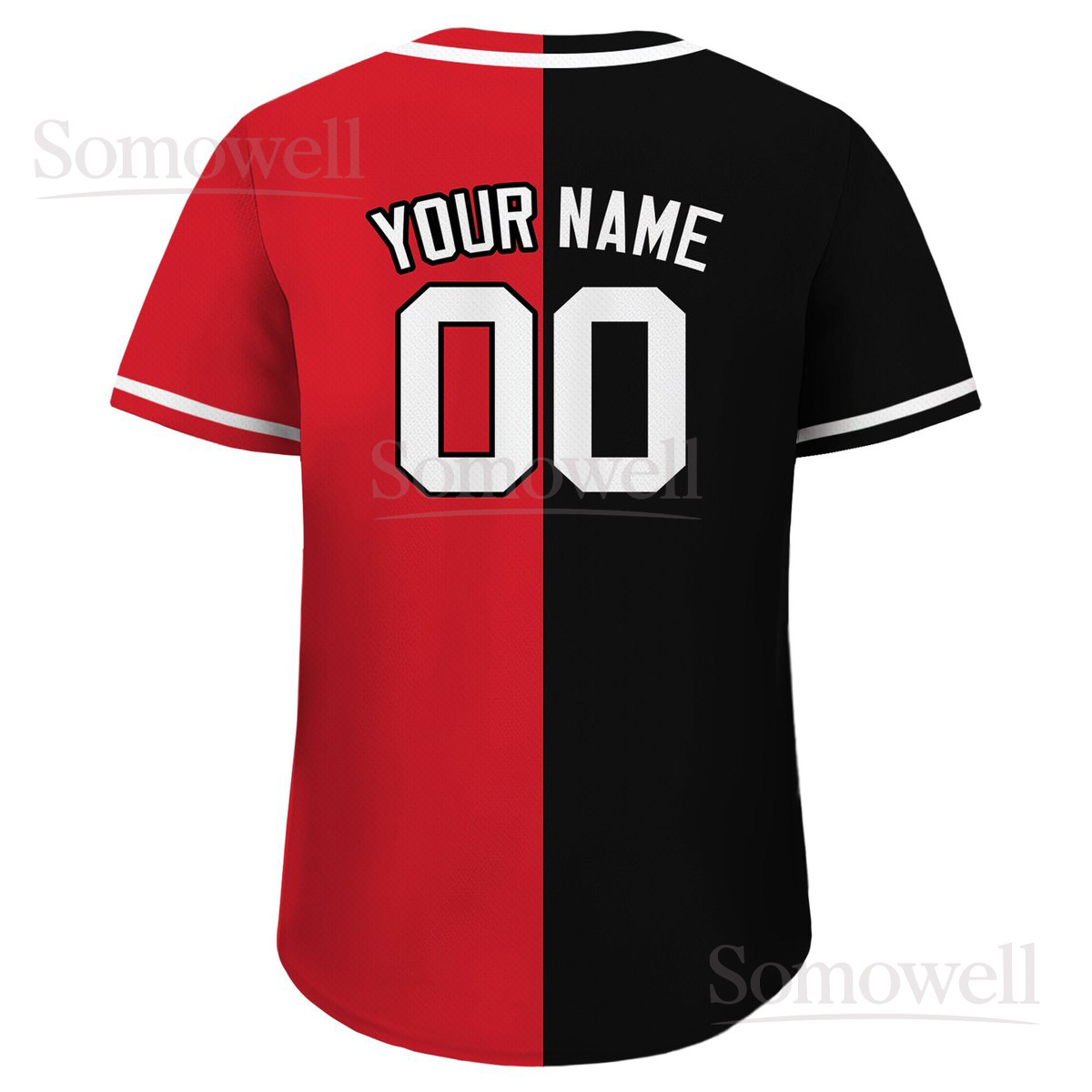 Custom Baseball Jersey Personalized Team Name Number Split Color Half Red Half Black Design for Adult Youth Multi Color Edition