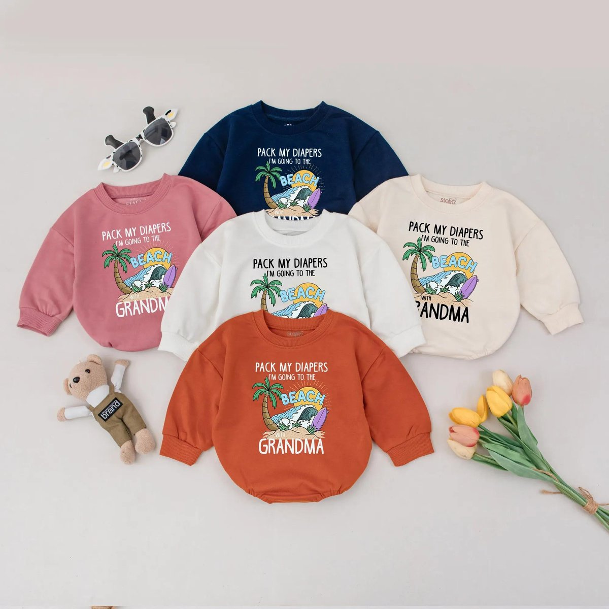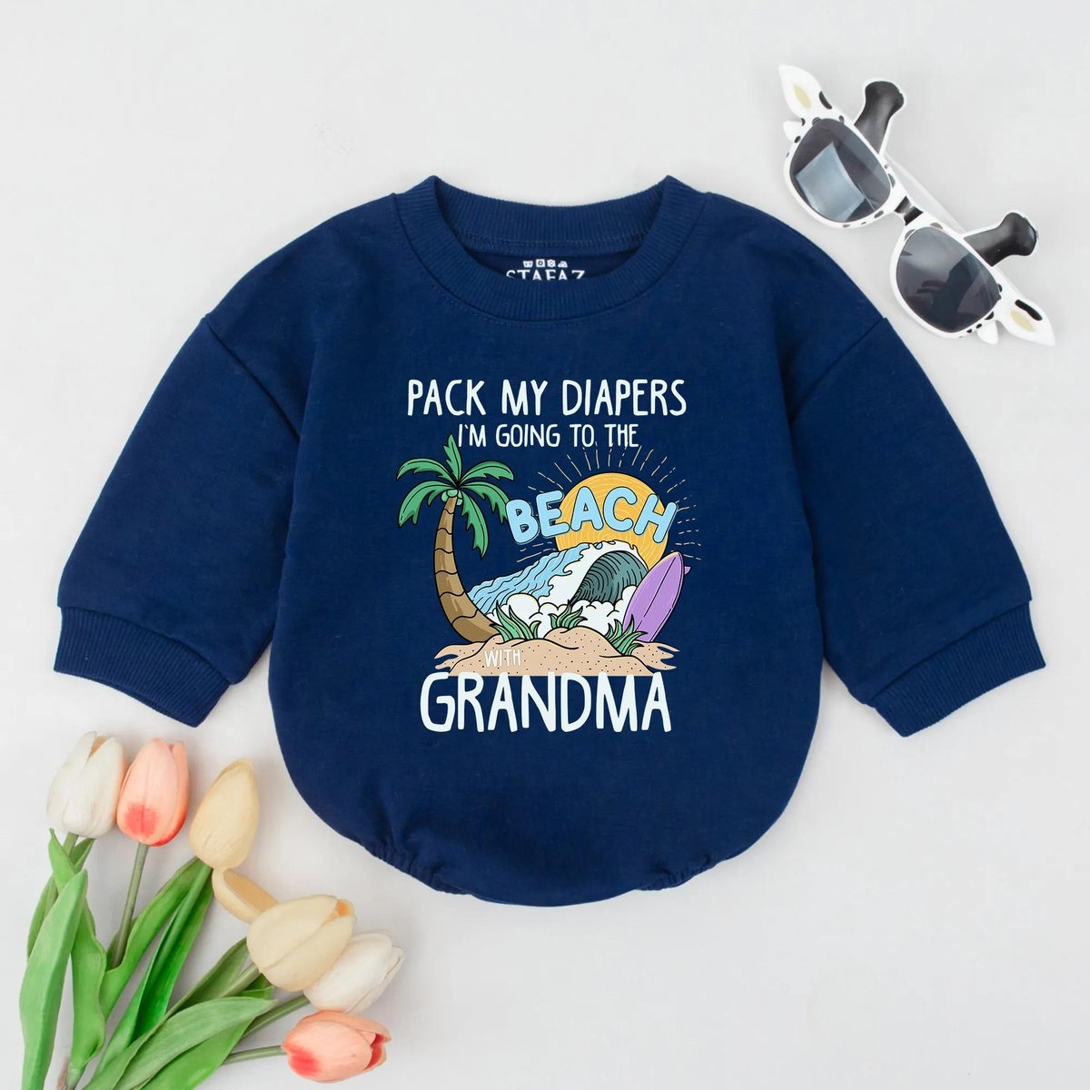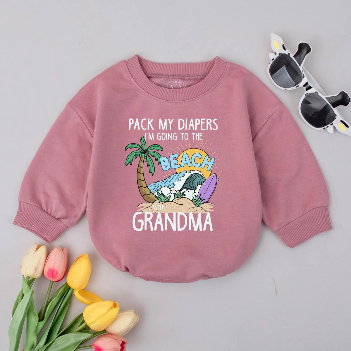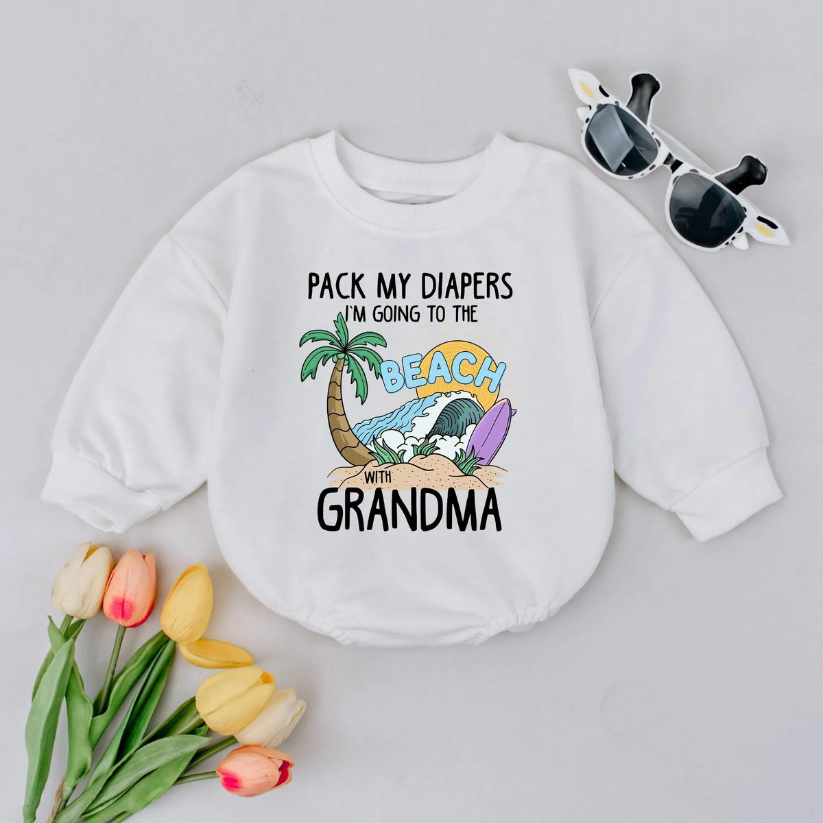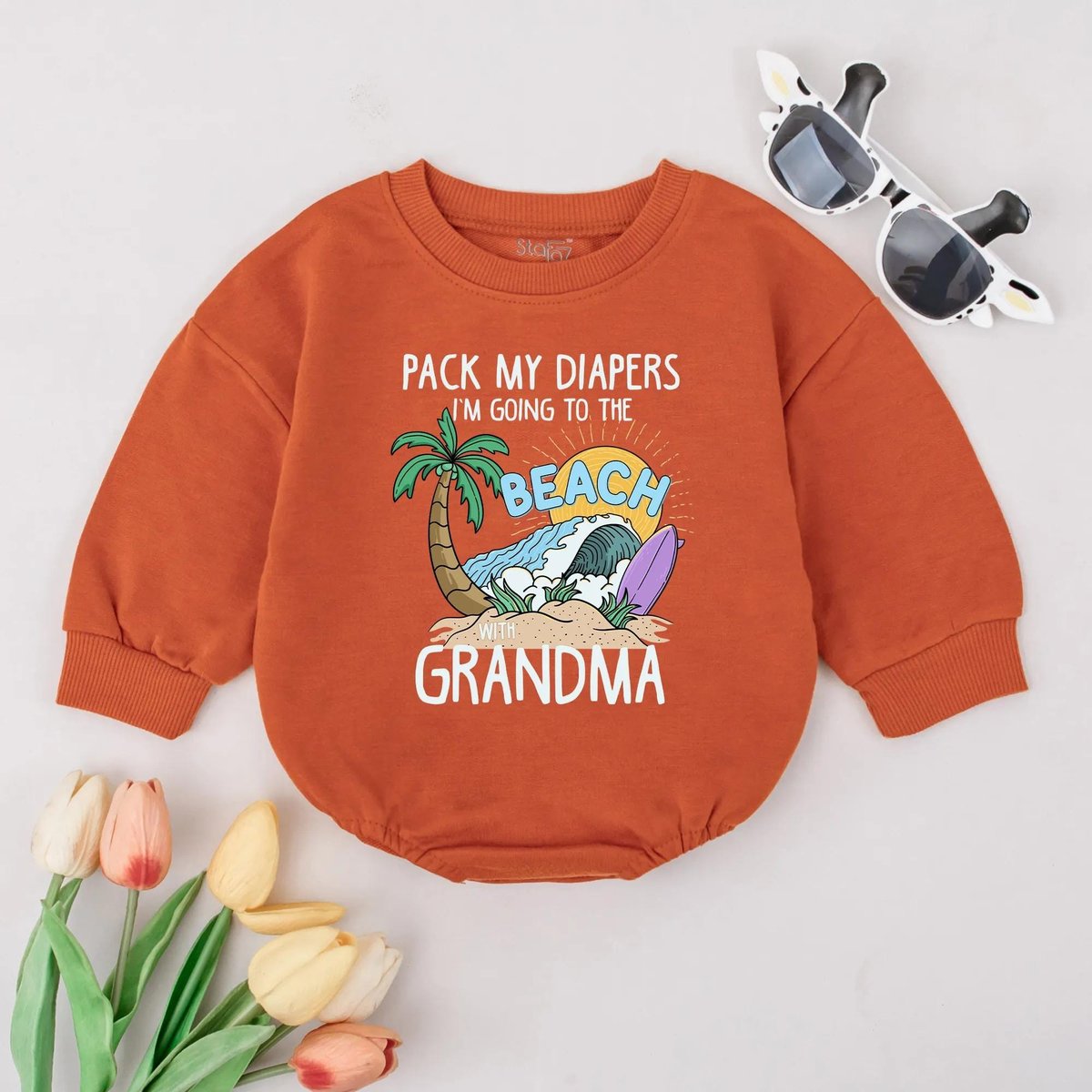 Custom Beach Baby Bubble Romper Pack My Diapers I’m Off To The Beach With Grandma Funny Summer Baby 433