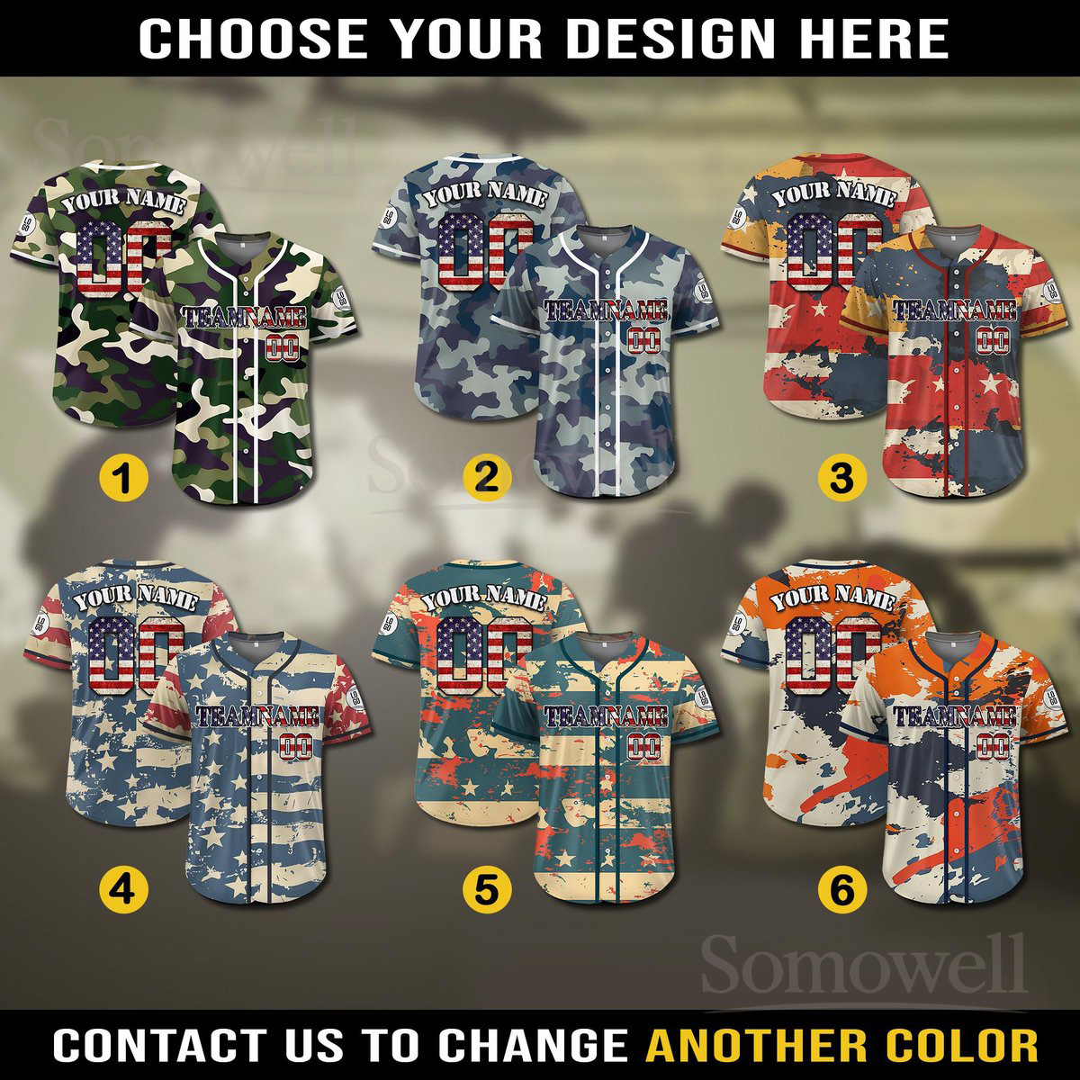 Custom Camo Baseball Jersey Personalized Team Name and Number Military Style Softball Uniform for Men Women Youth Multi Color Edition