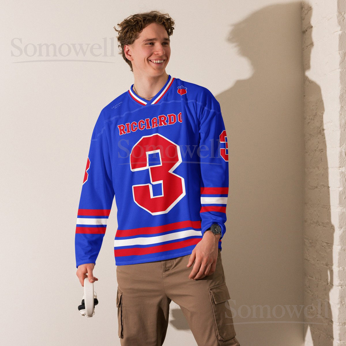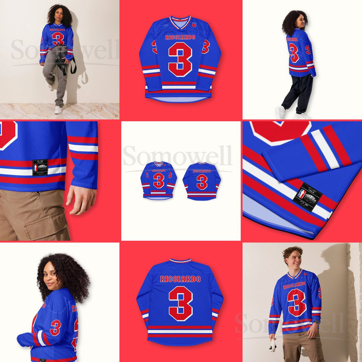 Custom Daniel Ricciardo F1 Hockey Jersey Shirt for Racing Fans Red and Blue Team Design for Motorsport Enthusiasts