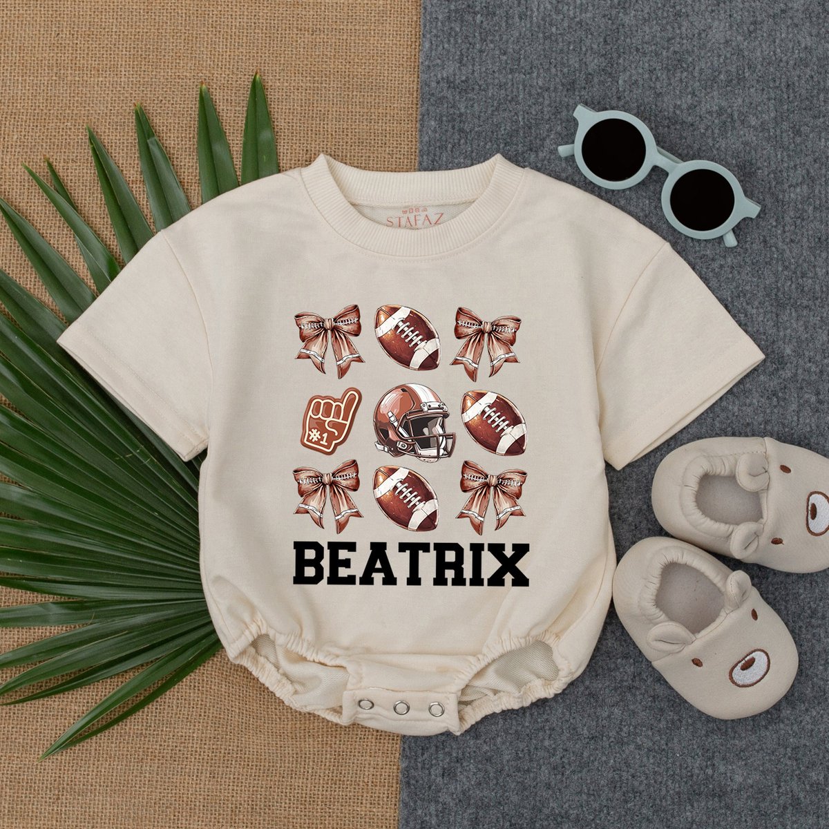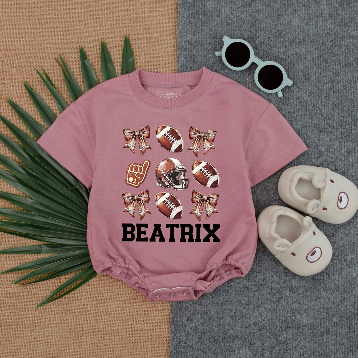 Custom Football Bow Bubble Romper Football Birthday Football Game Baby Gameday Outfit Baby Clothes B 176