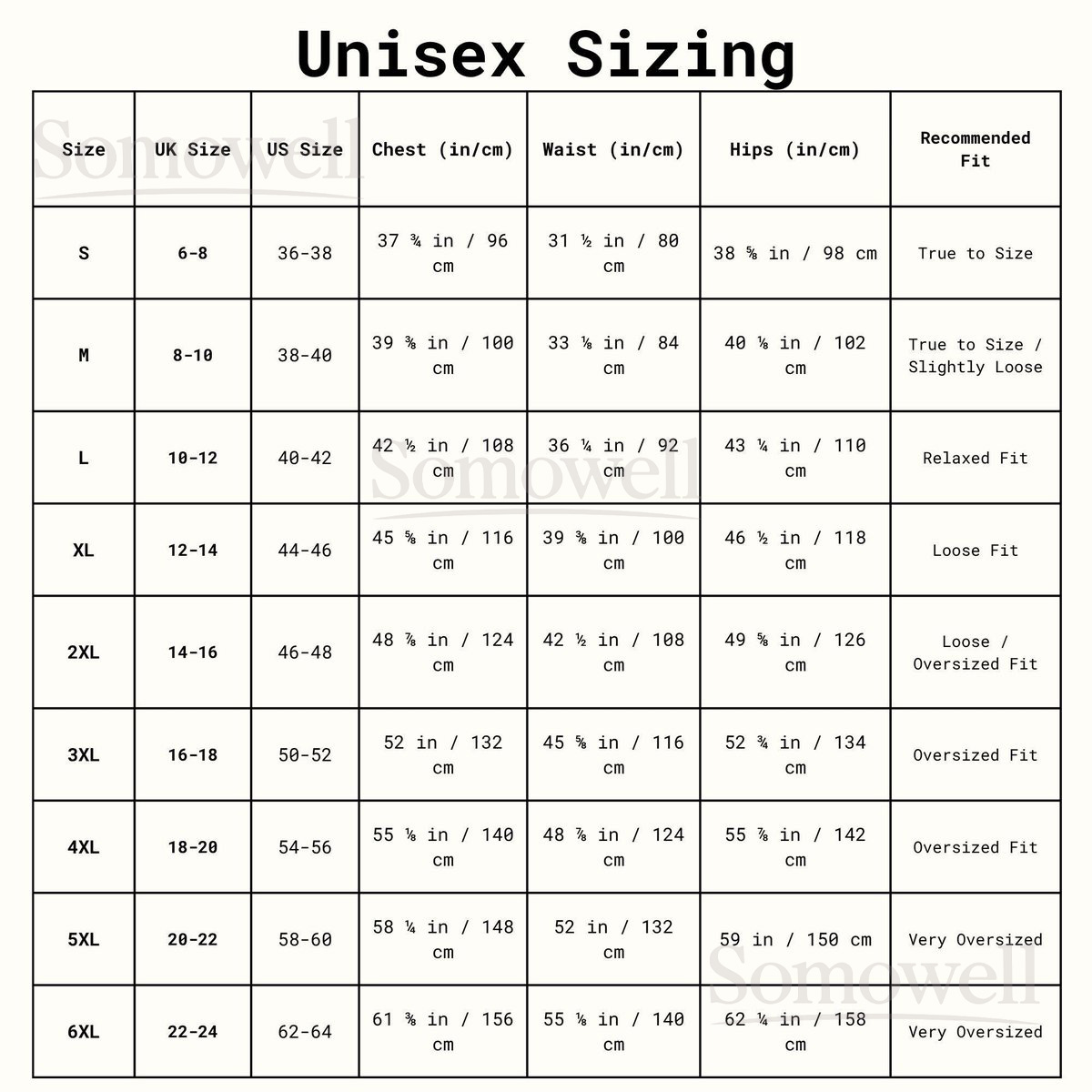 2XL, 3XL, 4XL, 5XL, L, M, S, XL