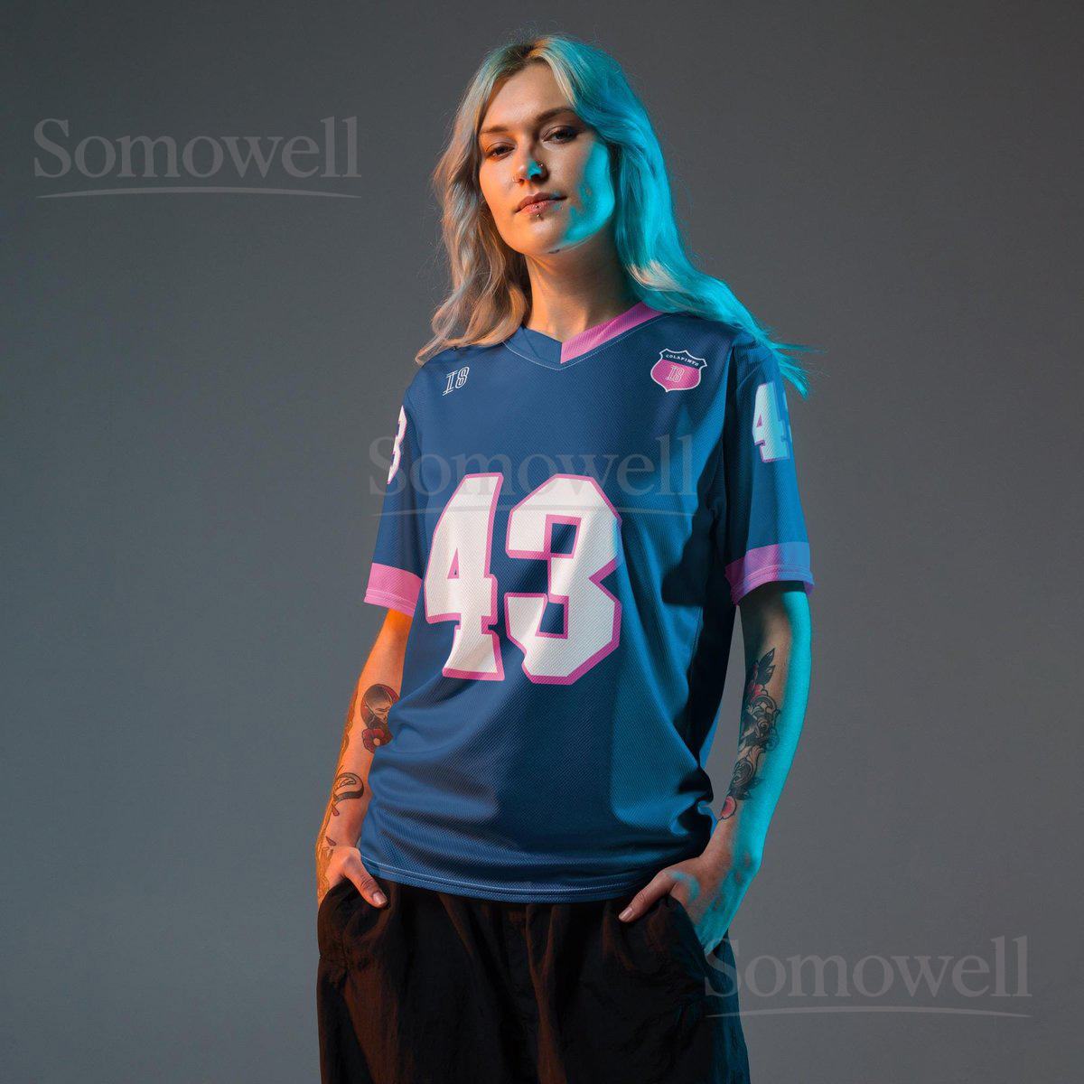 Custom Franco Colapinto Alpine F1 Football Jersey Shirt for Formula 1 Fans Blue and Pink Recycled Polyester Racing Apparel