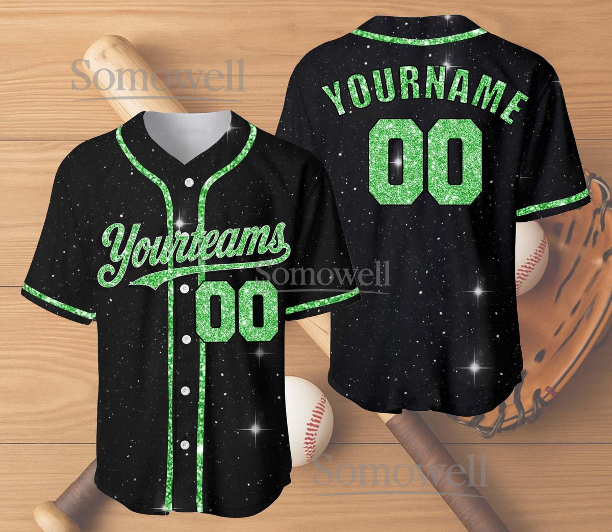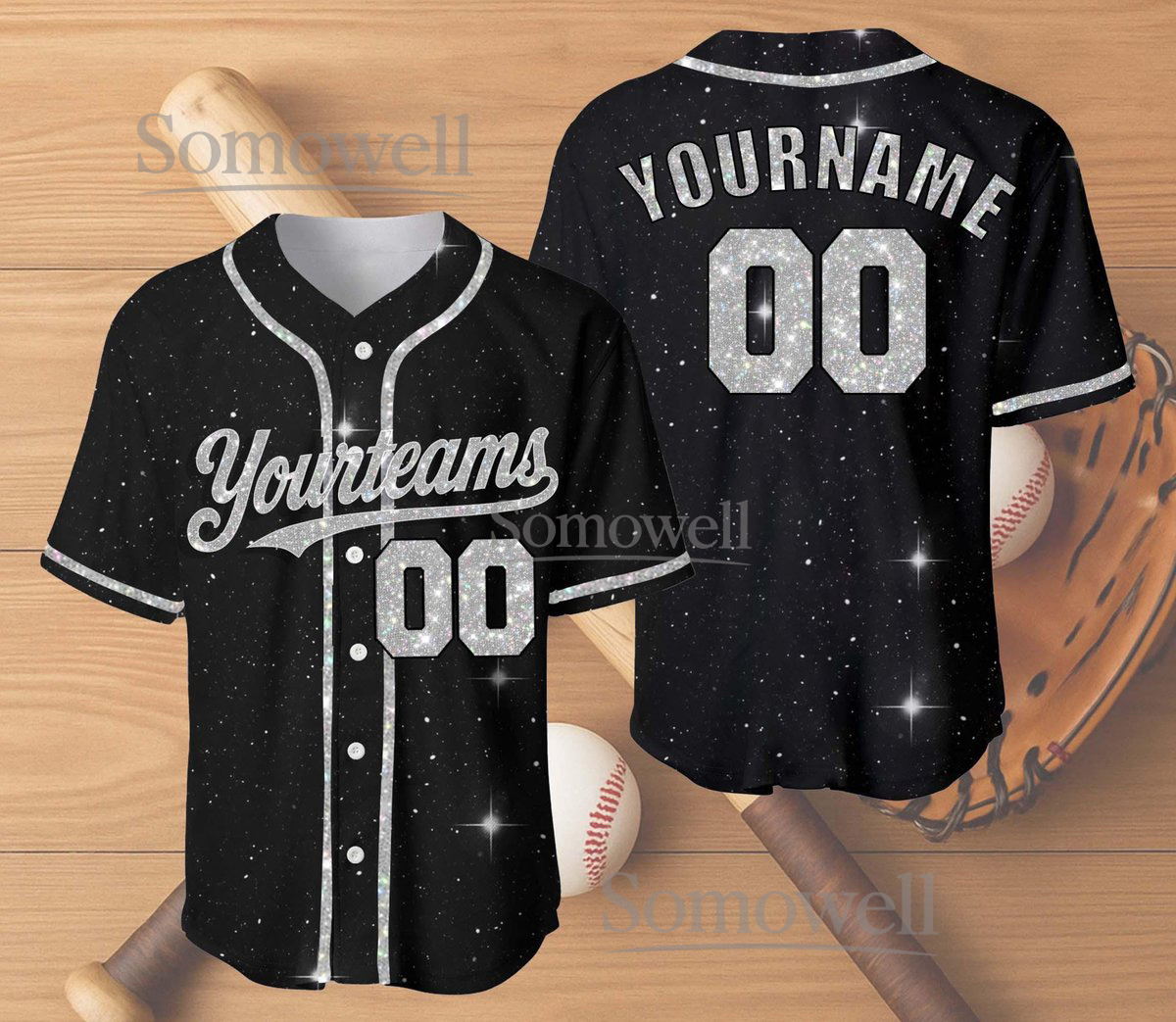 Be the first to review “Custom Glitter Baseball Jersey Black Blue Sparkle Personalized Team Name and Number Edition”