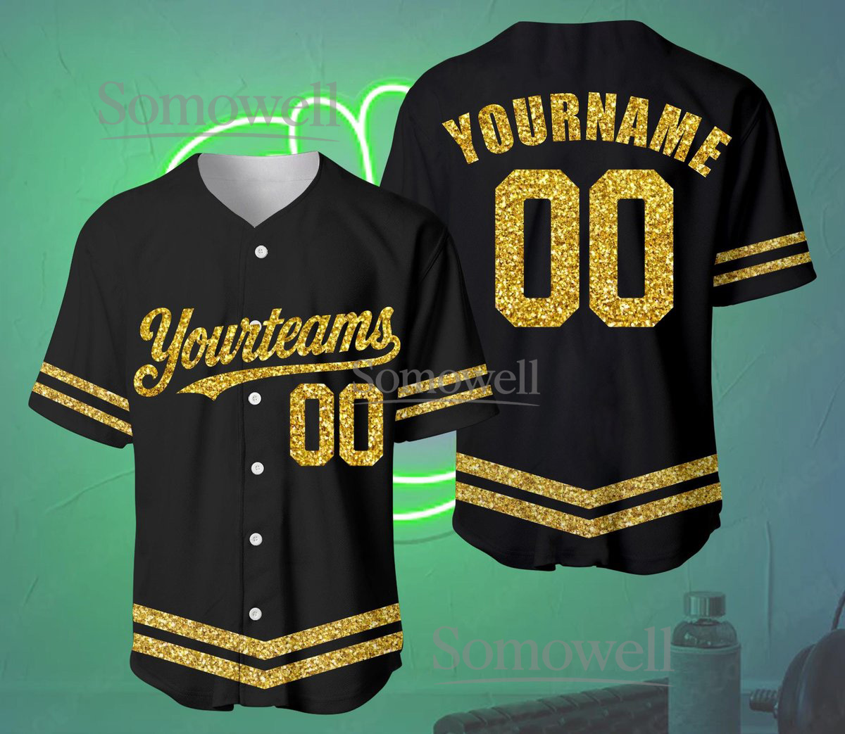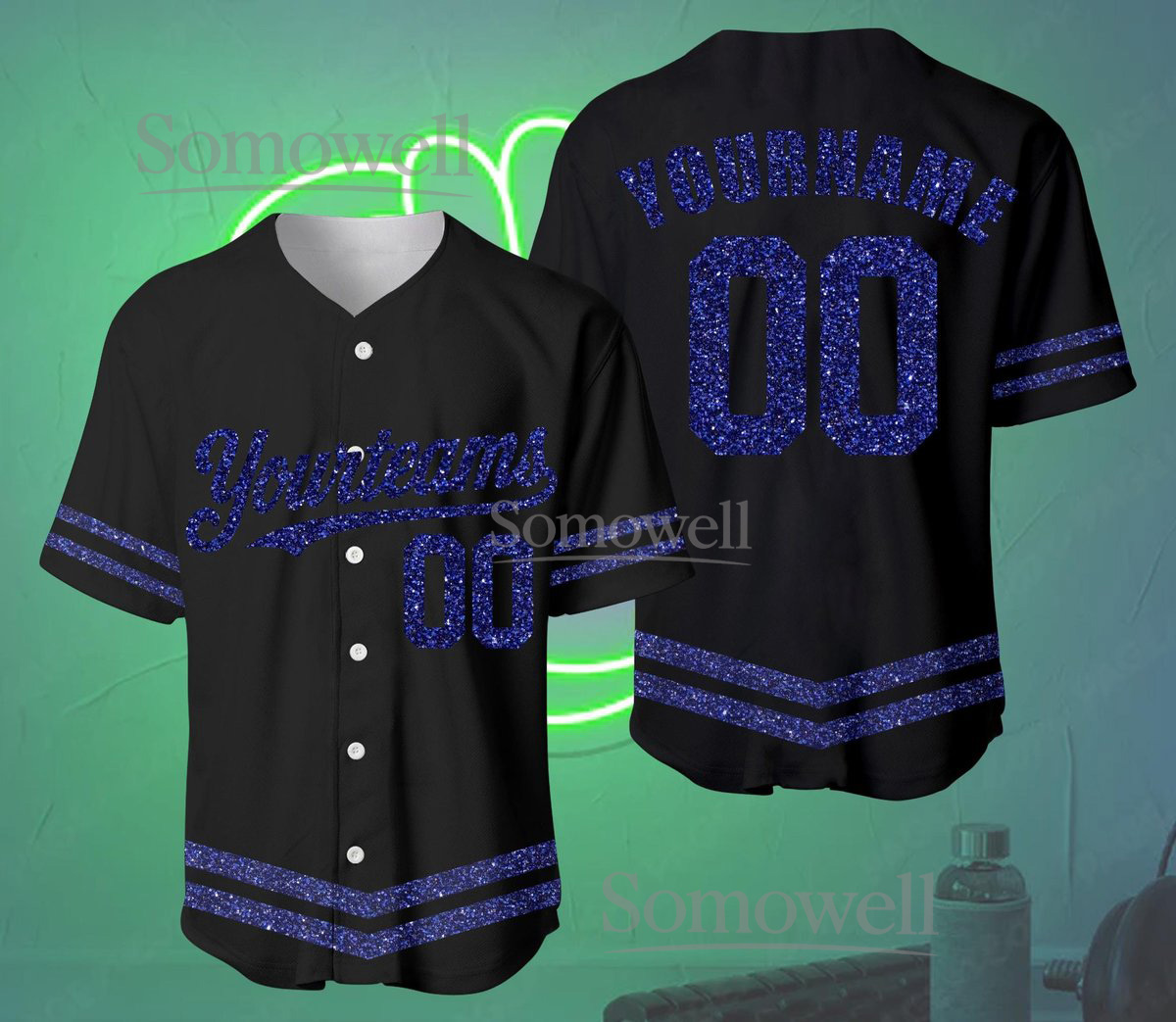 Be the first to review “Custom Glitter Baseball Jersey Black Silver Sparkle Personalized Team Name Number Shirt”