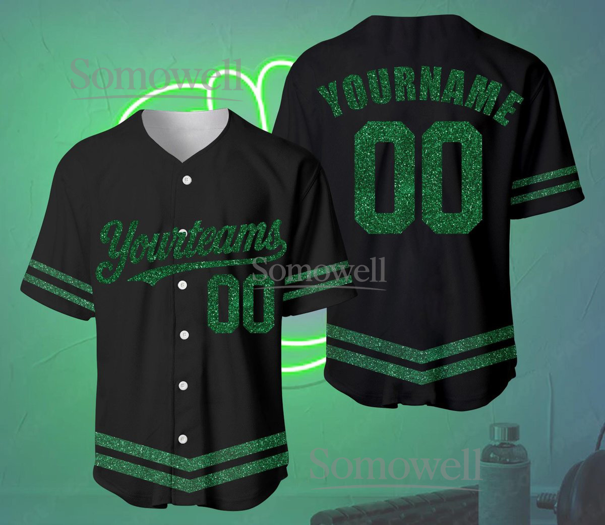 Custom Glitter Baseball Jersey Black Silver Sparkle Personalized Team Name Number Shirt