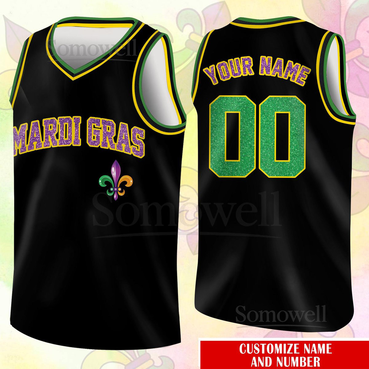 Custom Glitter Mardi Gras Basketball Jersey Team Name Number Basketball Jersey Team Basketball Jersey for Mardi Gras Printed Glitter_168