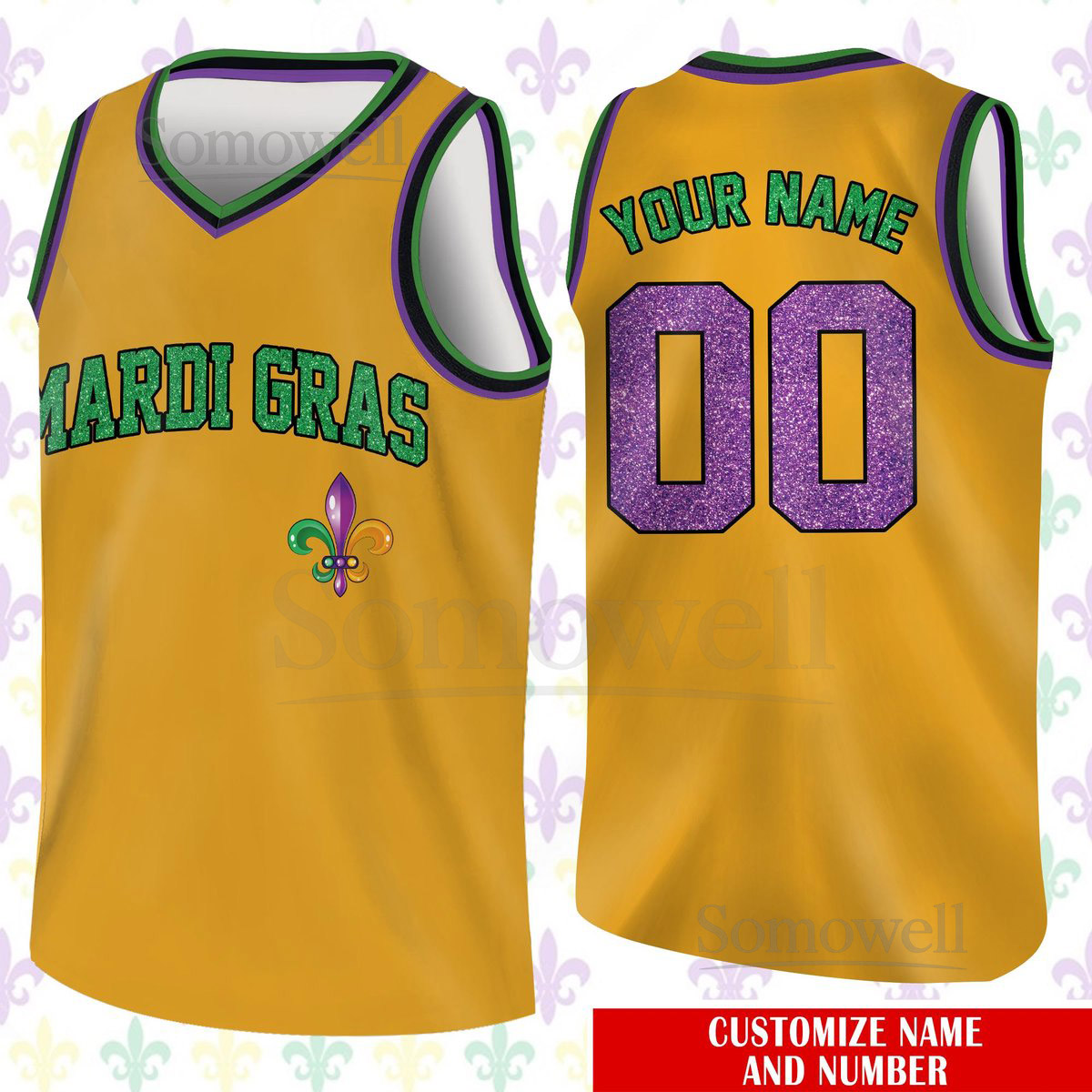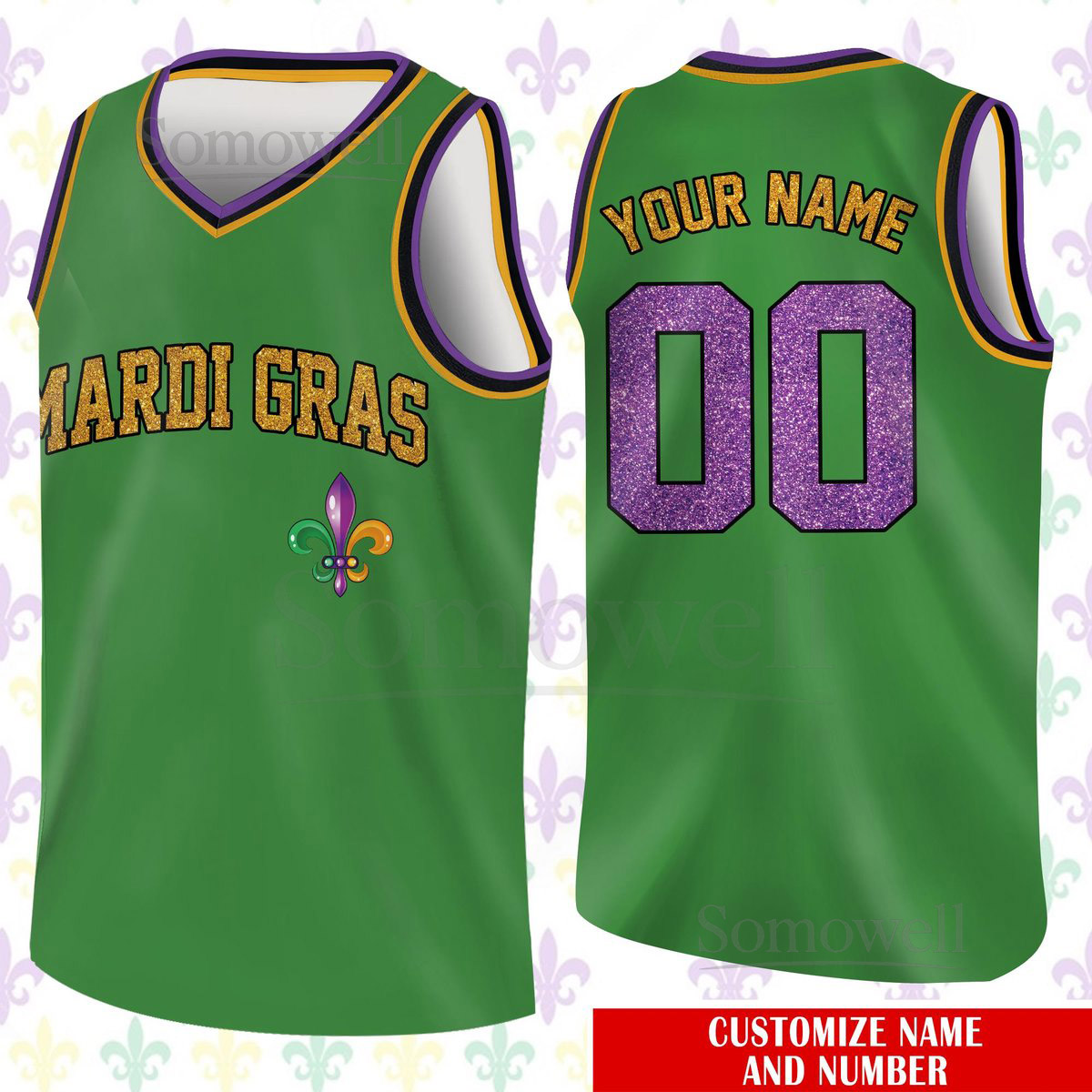 Custom Glitter Mardi Gras Basketball Jersey Team Name Number Basketball Jersey Team Basketball Jersey for Mardi Gras Printed Glitter_170