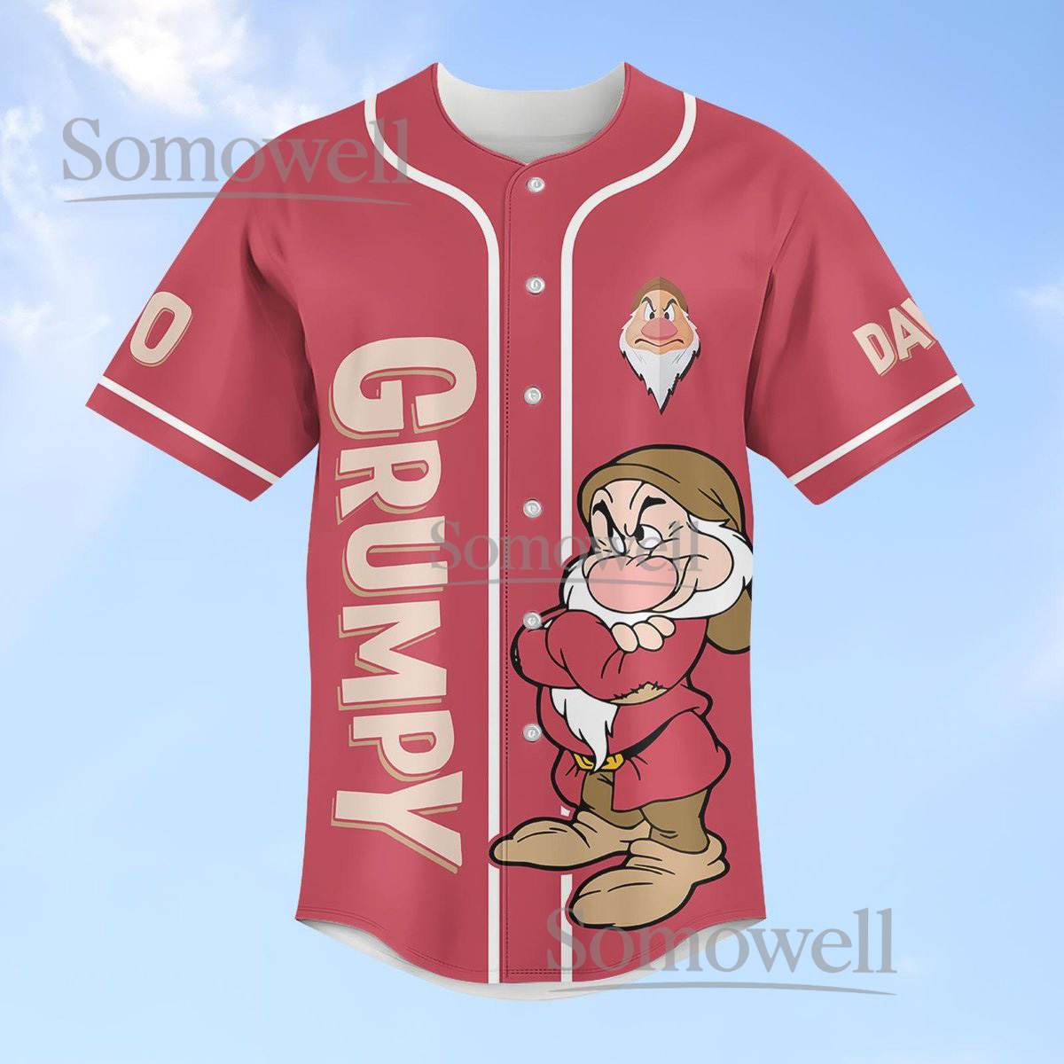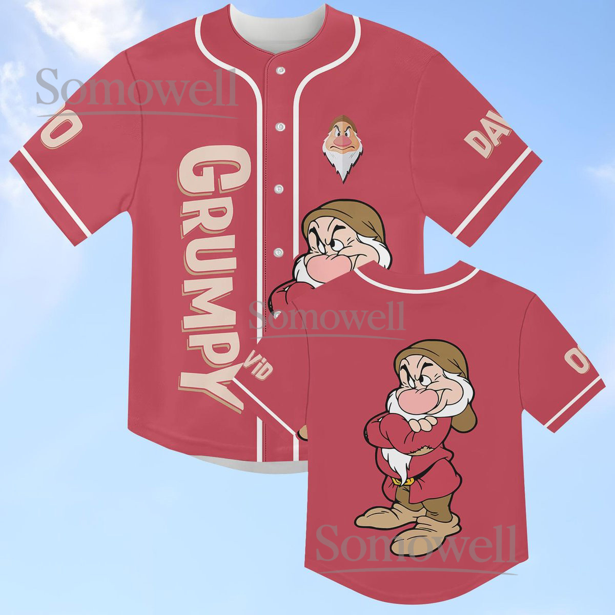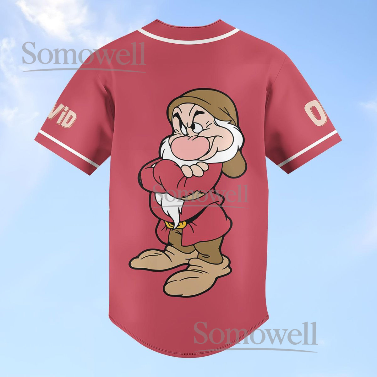 Custom Grumpy Dwarf Baseball Jersey Shirt Red Cartoon Character Disney Personalized Gift