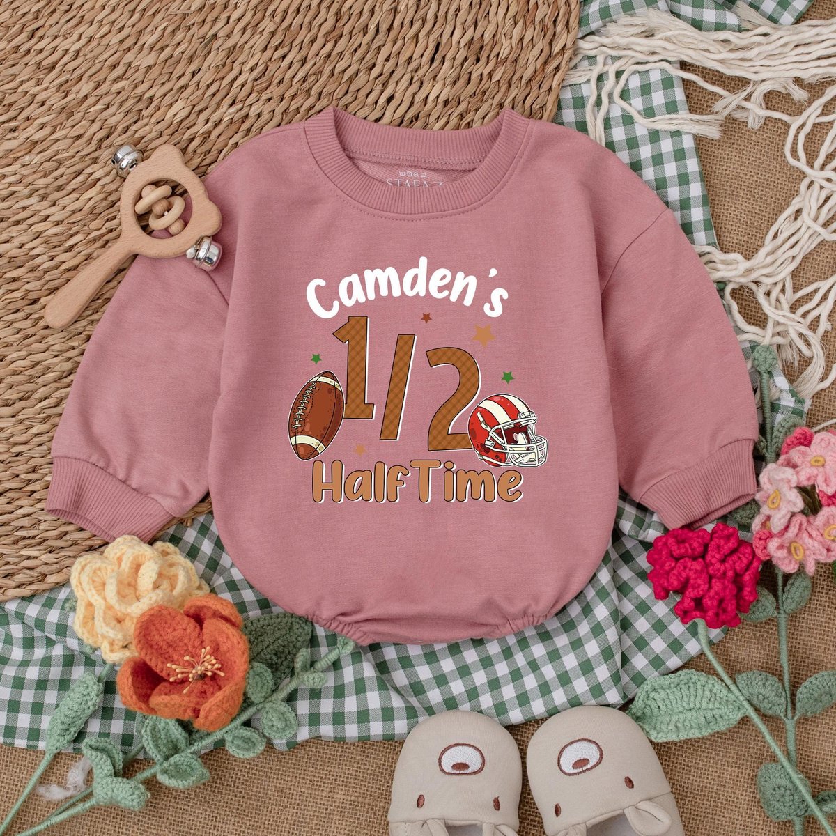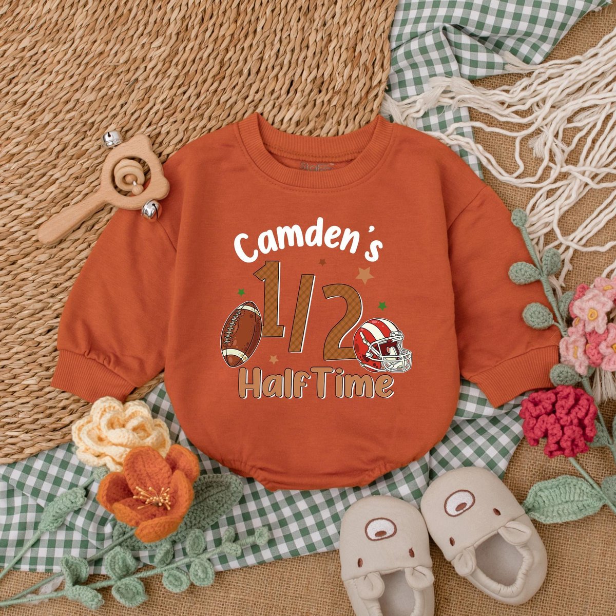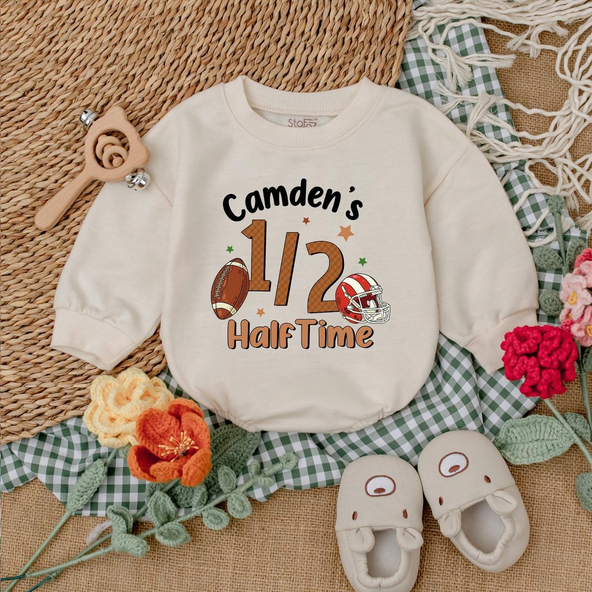 Custom Half Way To One Football Romper Half Birthday Boy Bodysuit 12 Birthday Outfit Football Half B 185