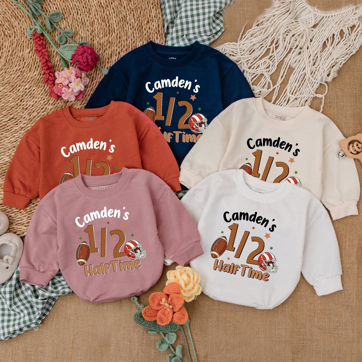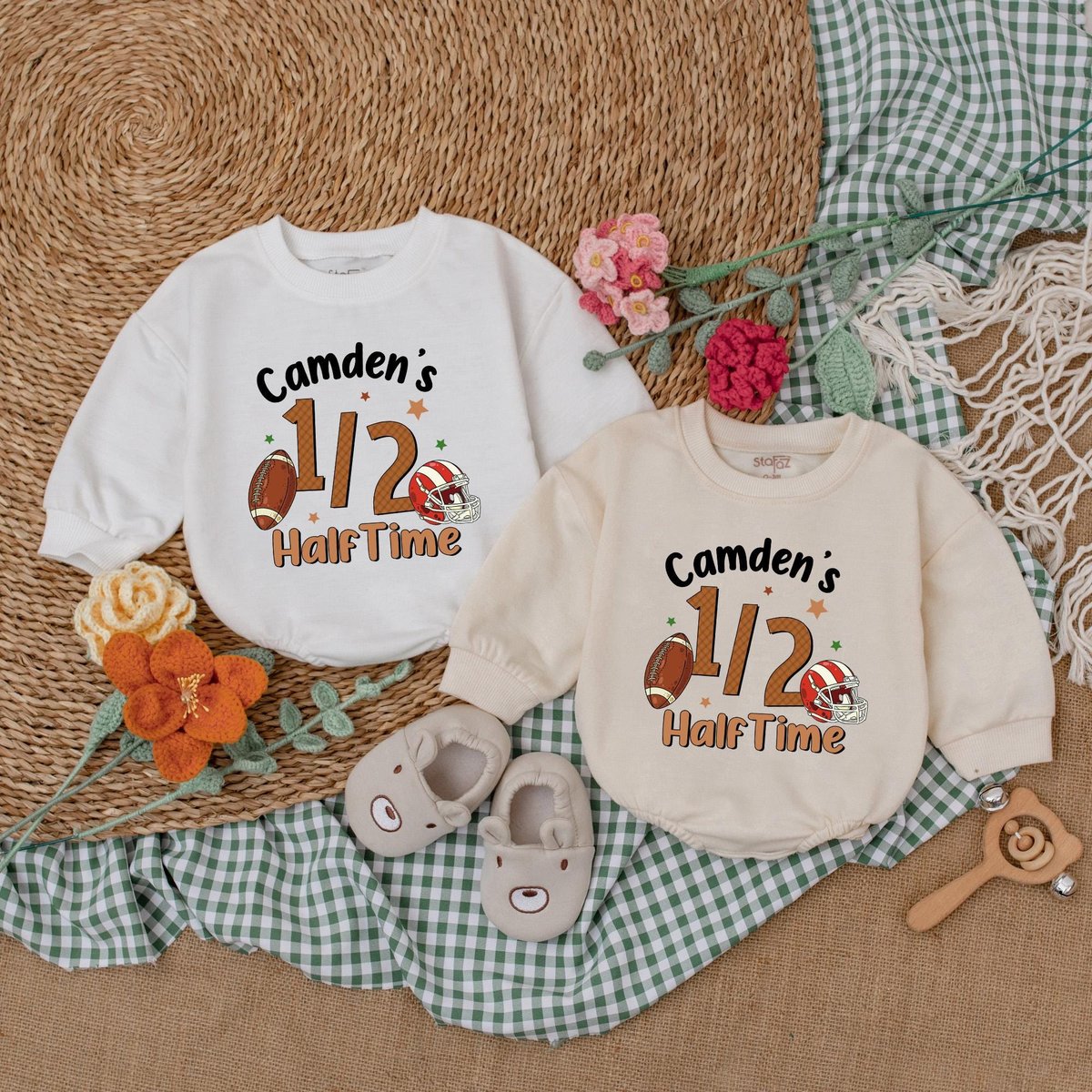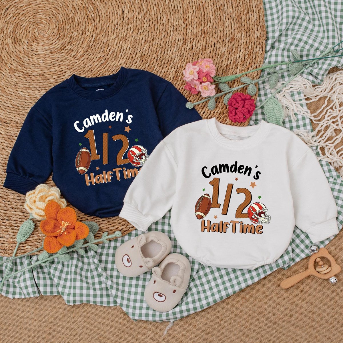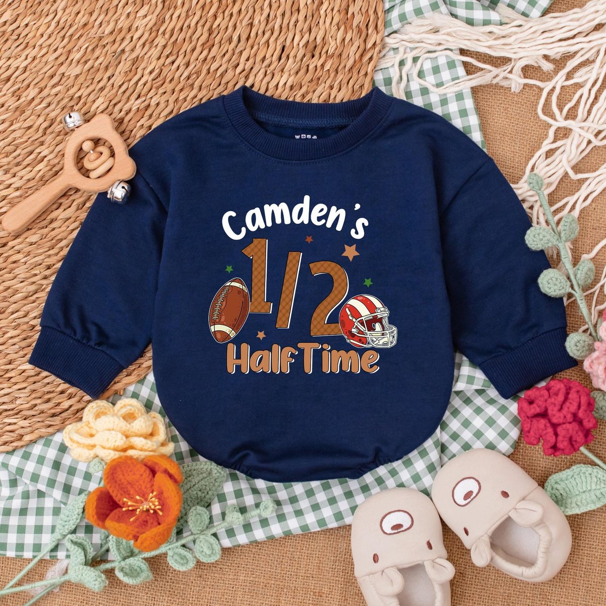 Custom Half Way To One Football Romper Half Birthday Boy Bodysuit 12 Birthday Outfit Football Half B 185
