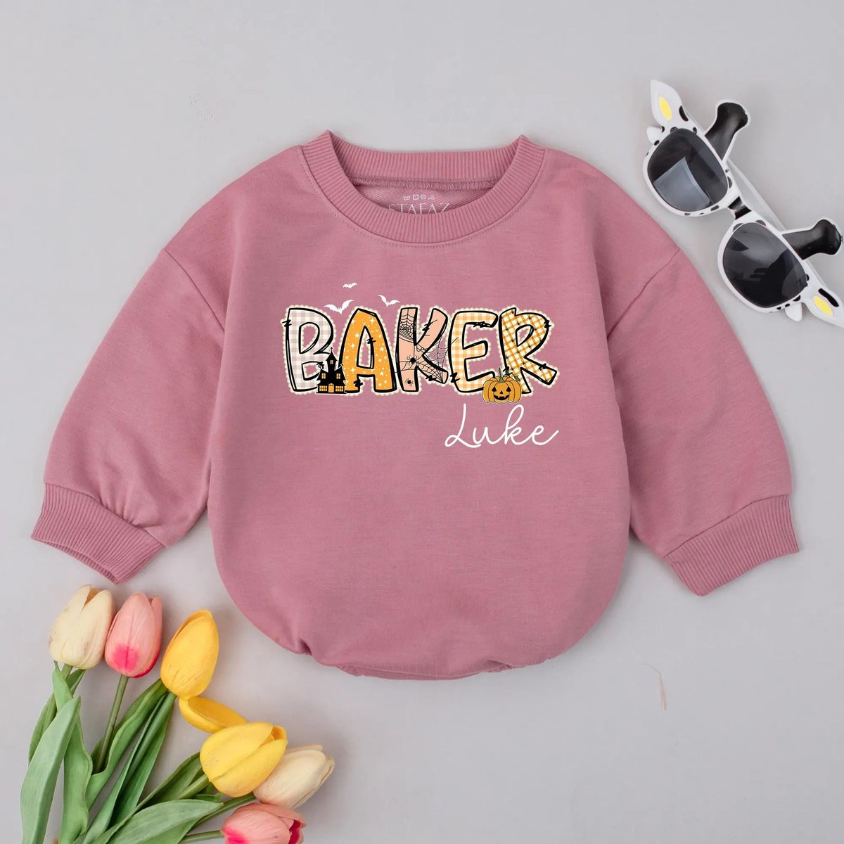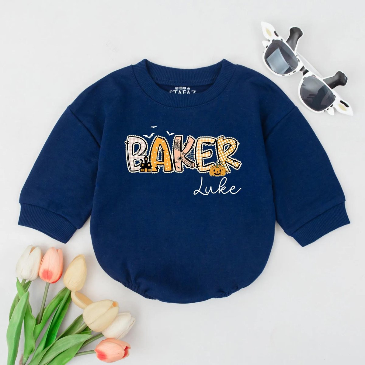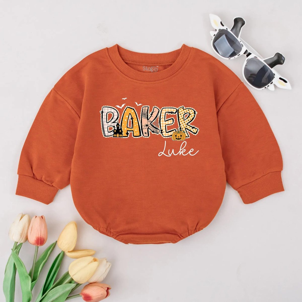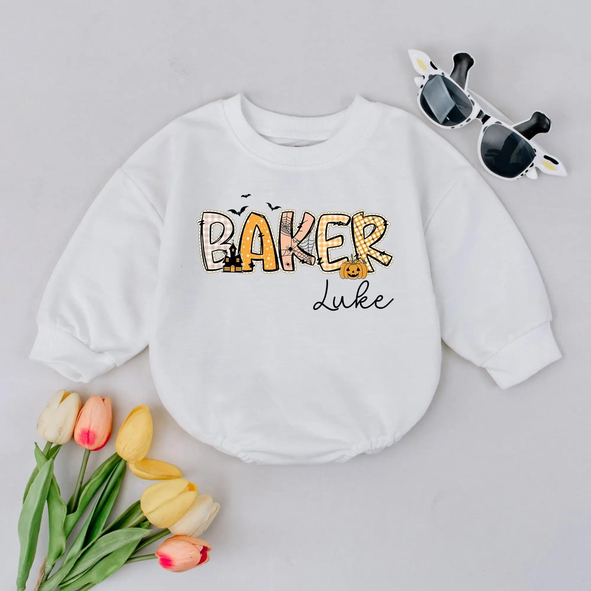 Custom Halloween Baby Bubble Romper Personalized Name Romper Retro Fall Baby Outfit Spooky Infant Cl 433