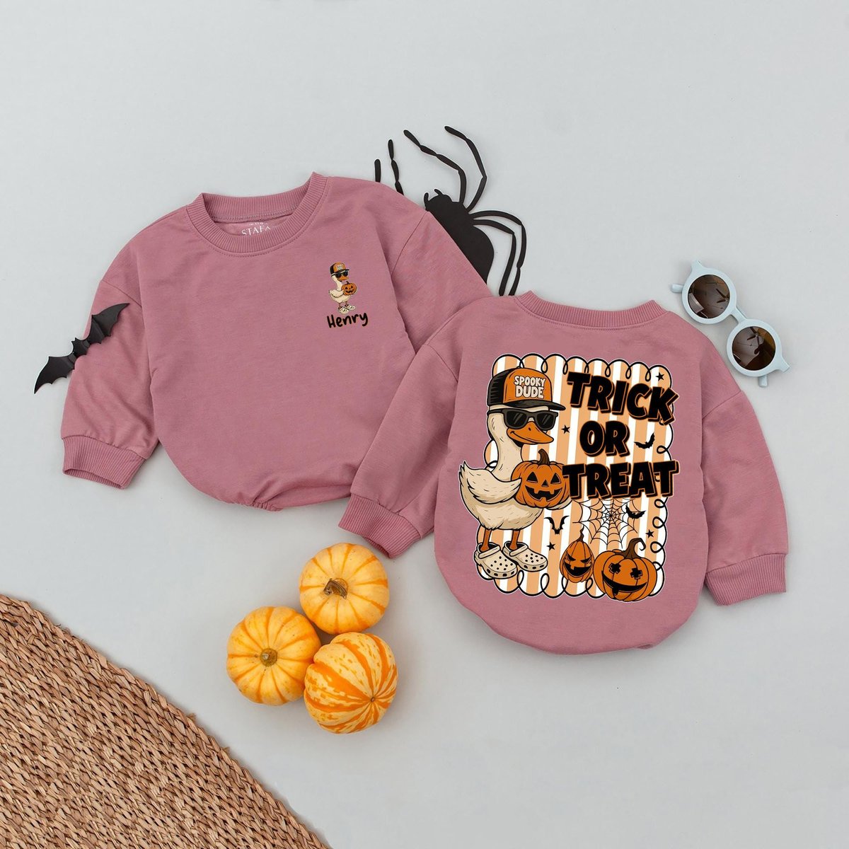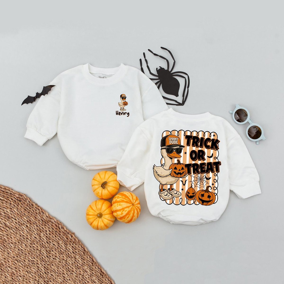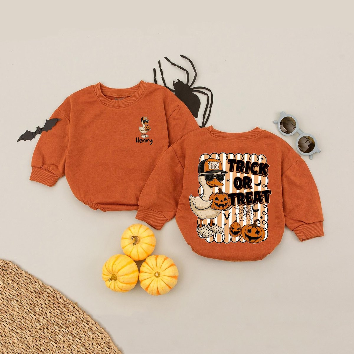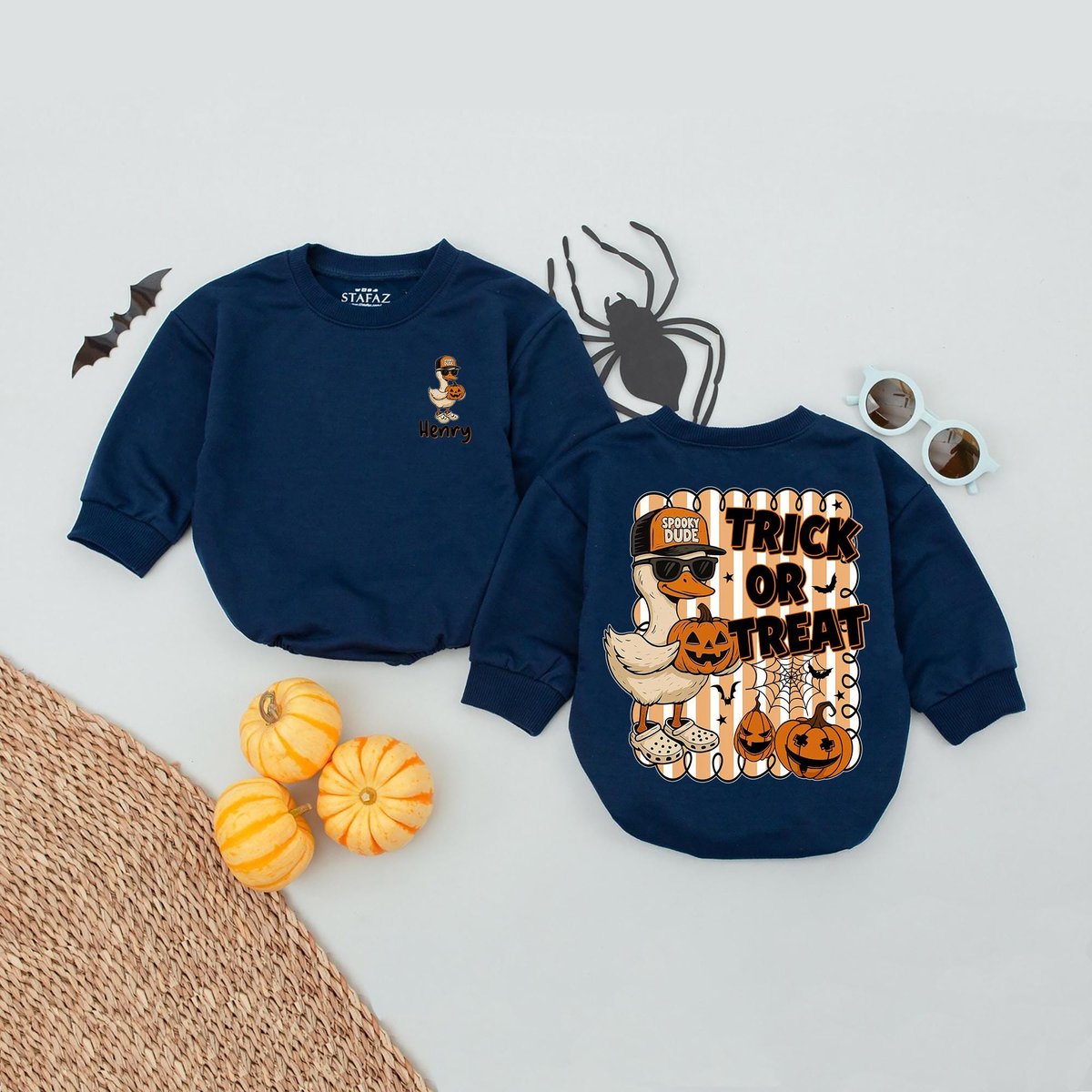 Custom Halloween Goose Trick or Treat Romper Funny Goose Costume Halloween Silly Goose Baby Clothes