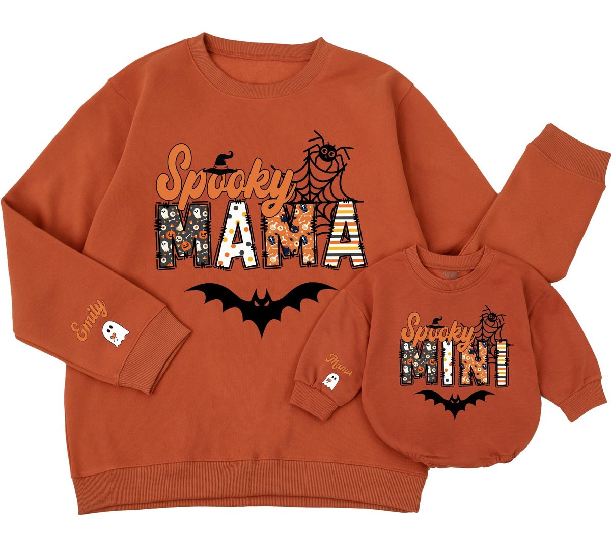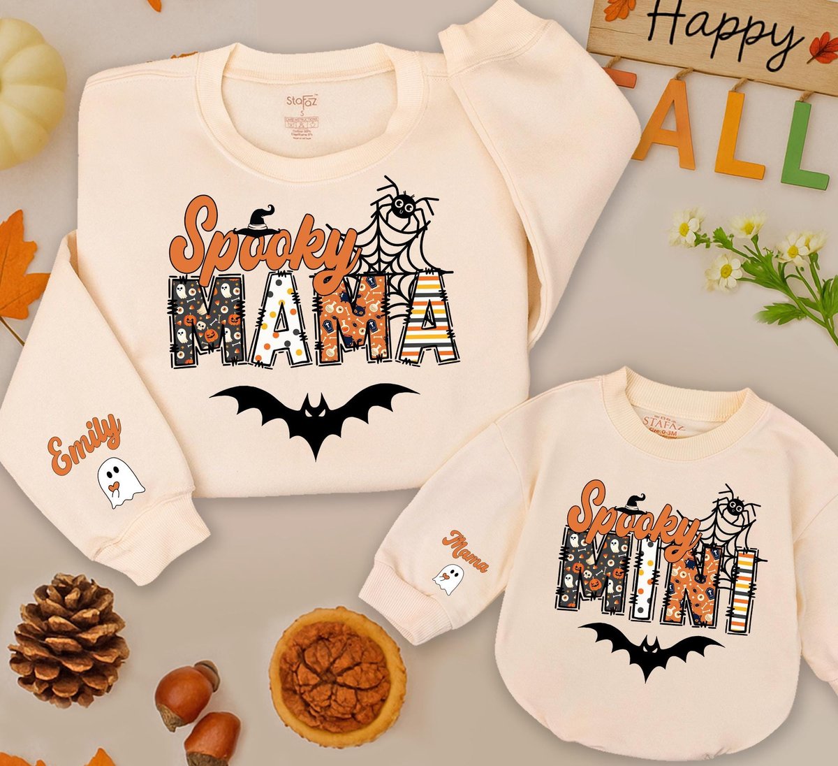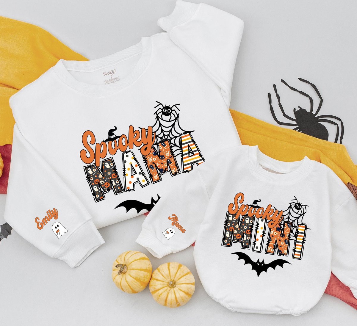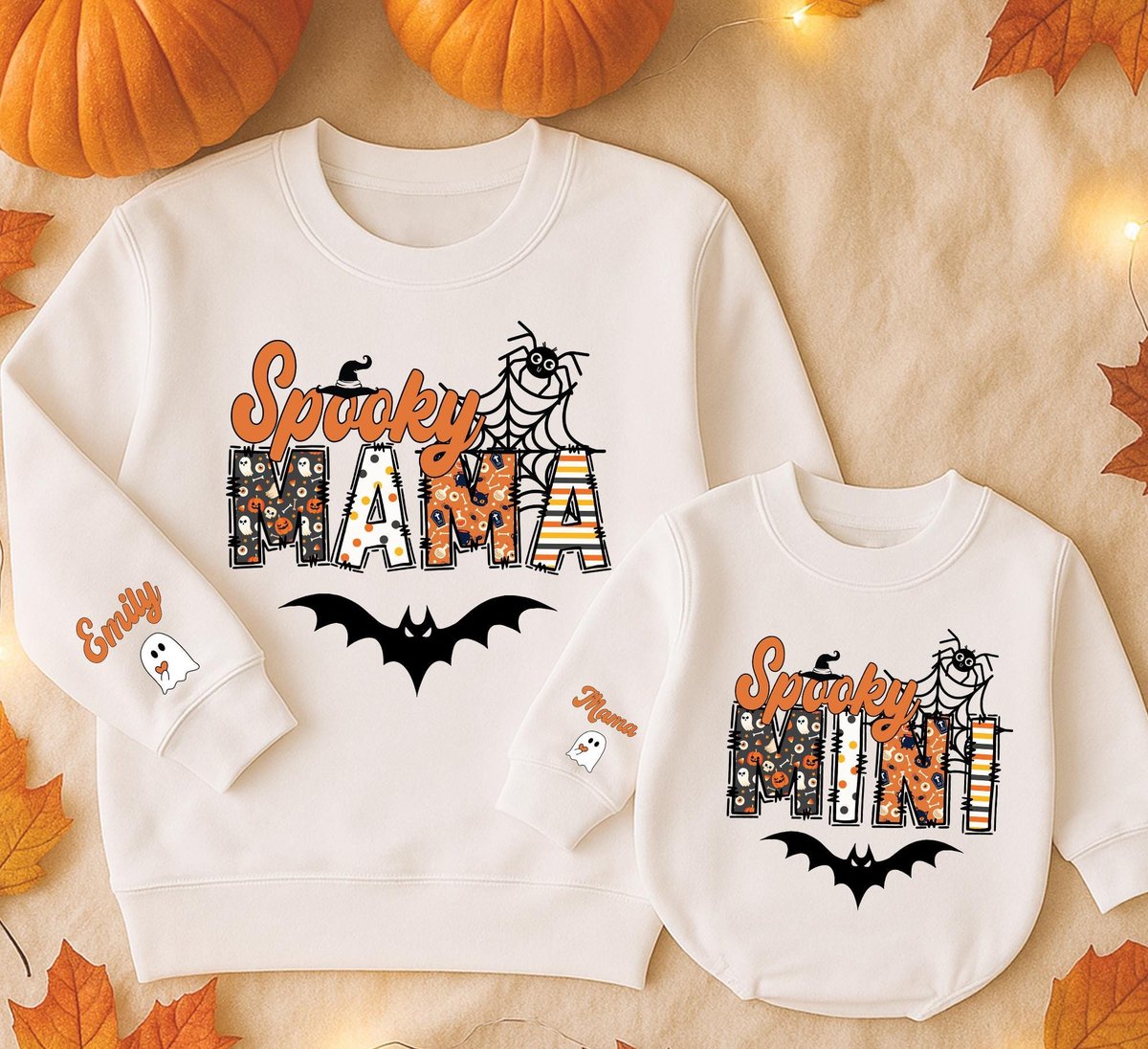 Custom Halloween Spooky Mama Mini Sweatshirt with Name on Sleeve Sweatshirt Cool Mama Halloween Swea 435