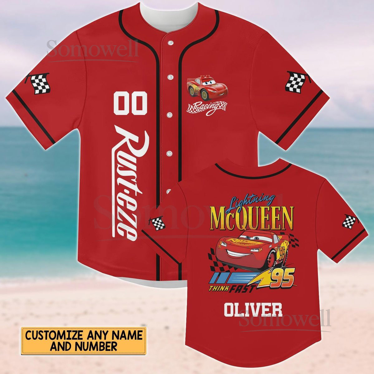 Custom Lightning Mcqueen Baseball Jersey Lightning Mcqueen 95 Shirt Piston Cup Shirt Pixar Cars Baseball Shirt Cars Land Jersey_21