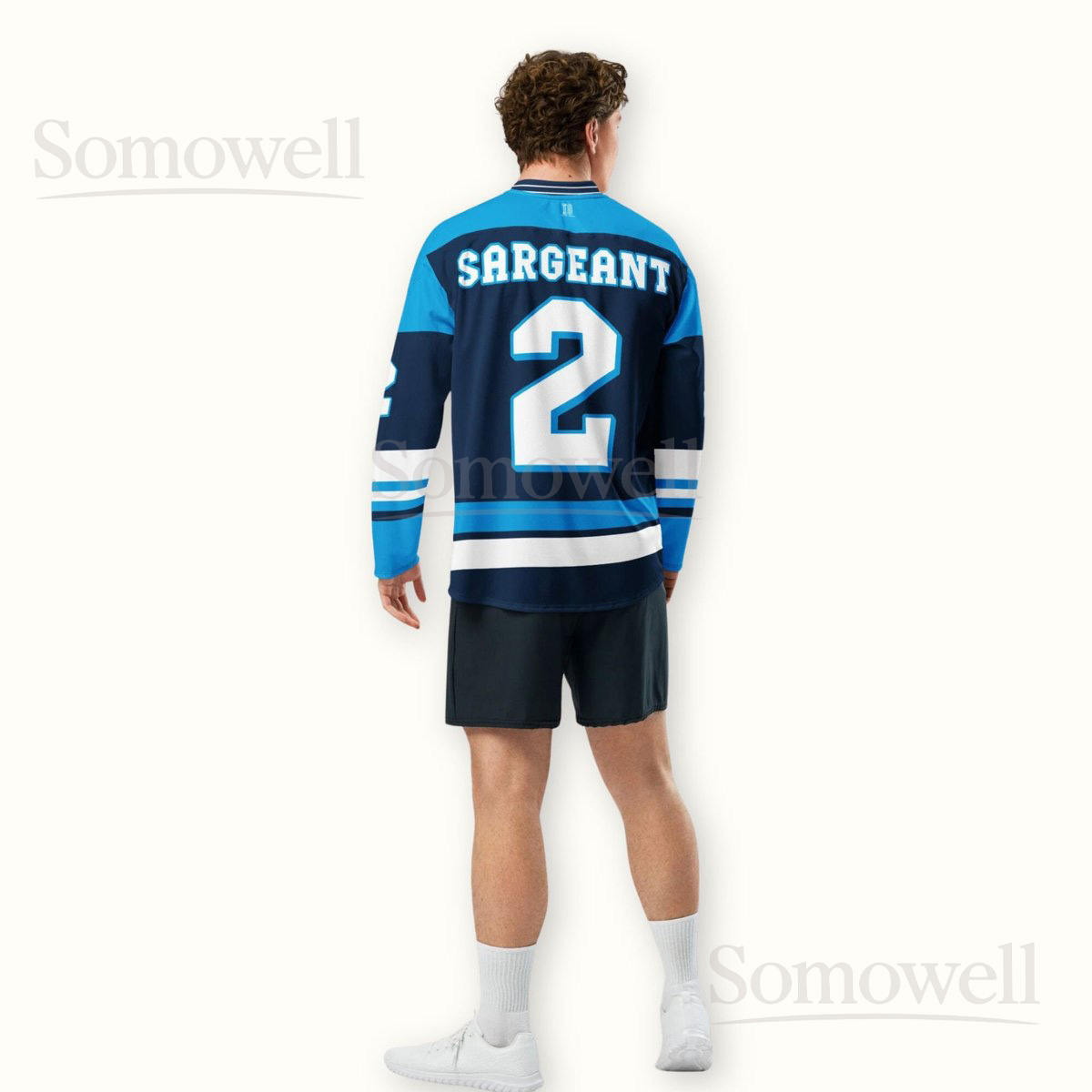 Custom Logan Sargeant Racing Hockey Jersey Shirt for Men and Women Unisex Blue and White Motorsport Sweatshirt Style