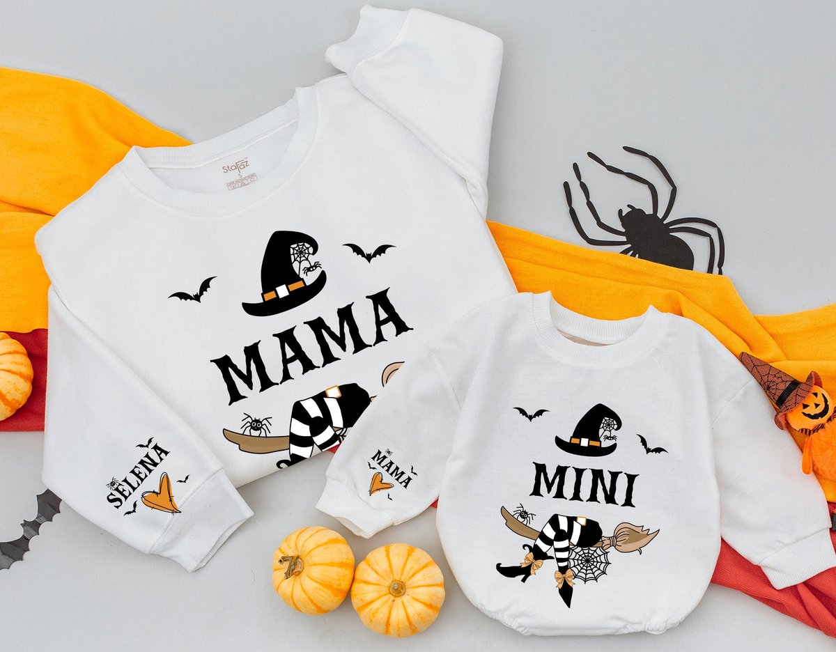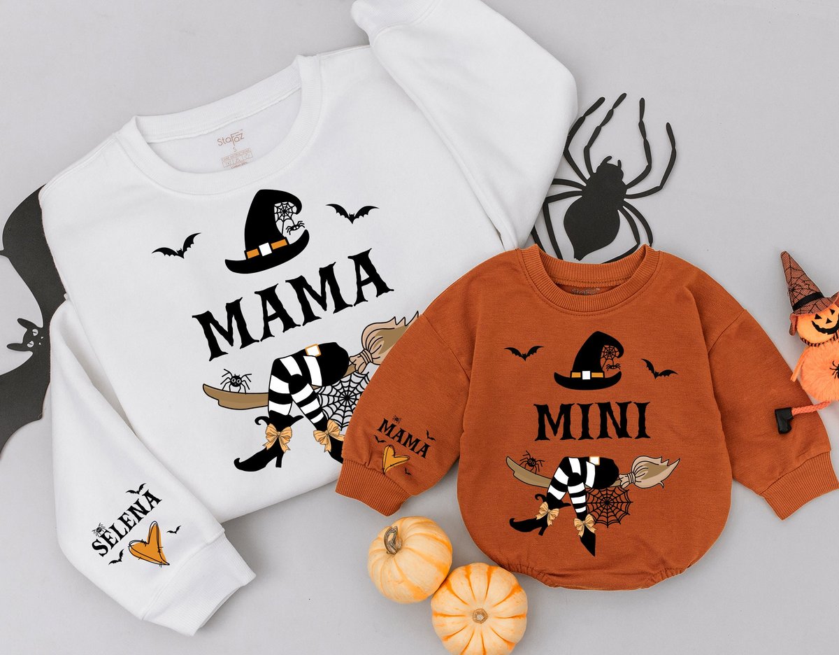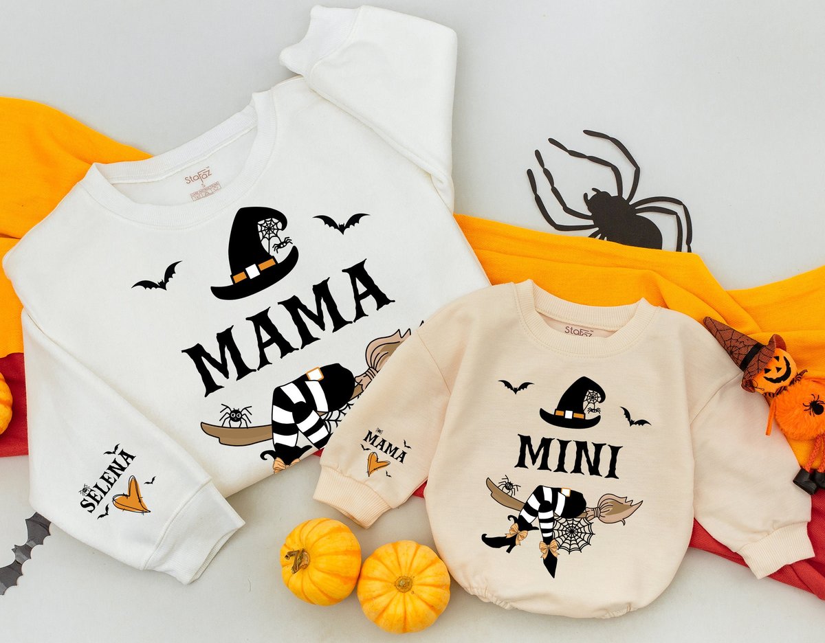 Custom Mama and Mini witchy Halloween Sweatshirts Baby romper gift Matching Family Outfits Best Gift 176