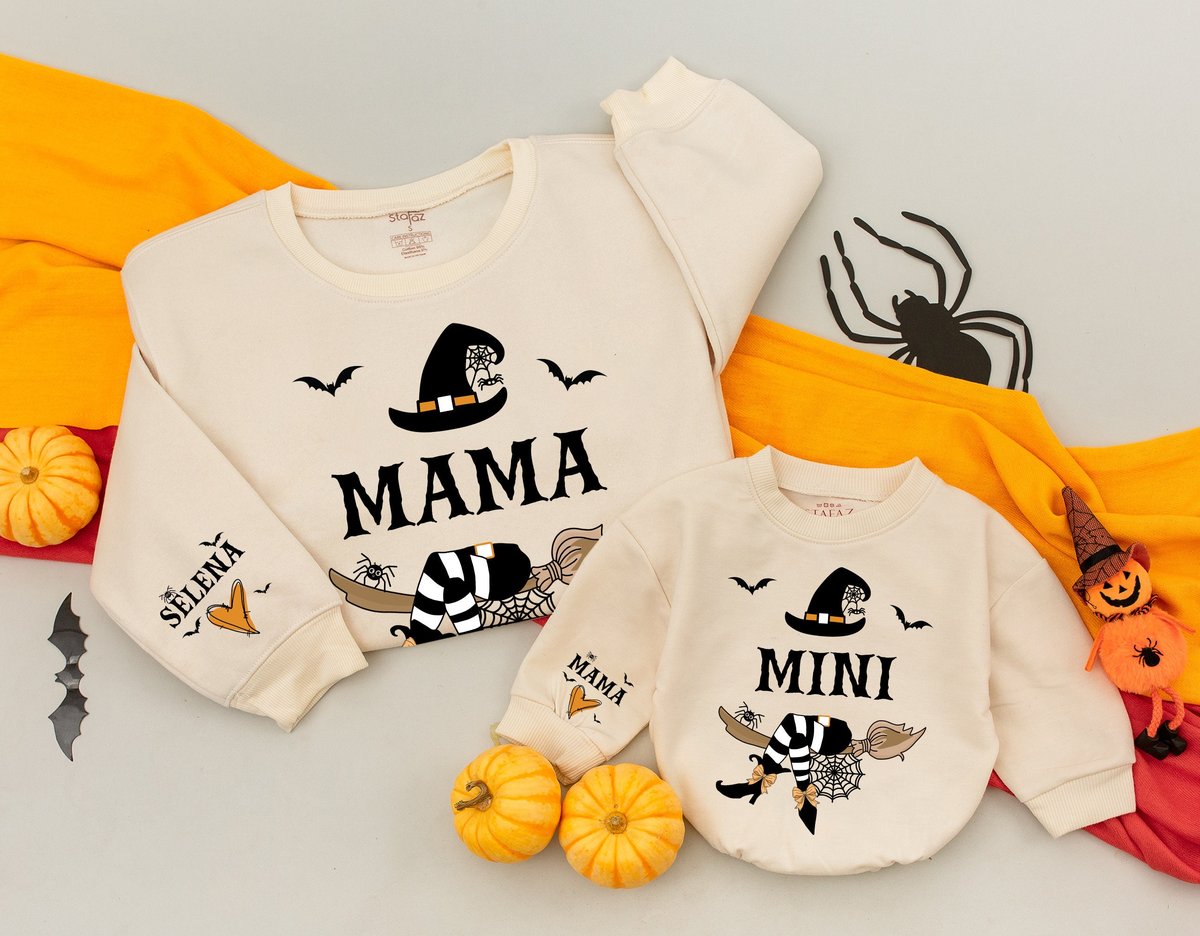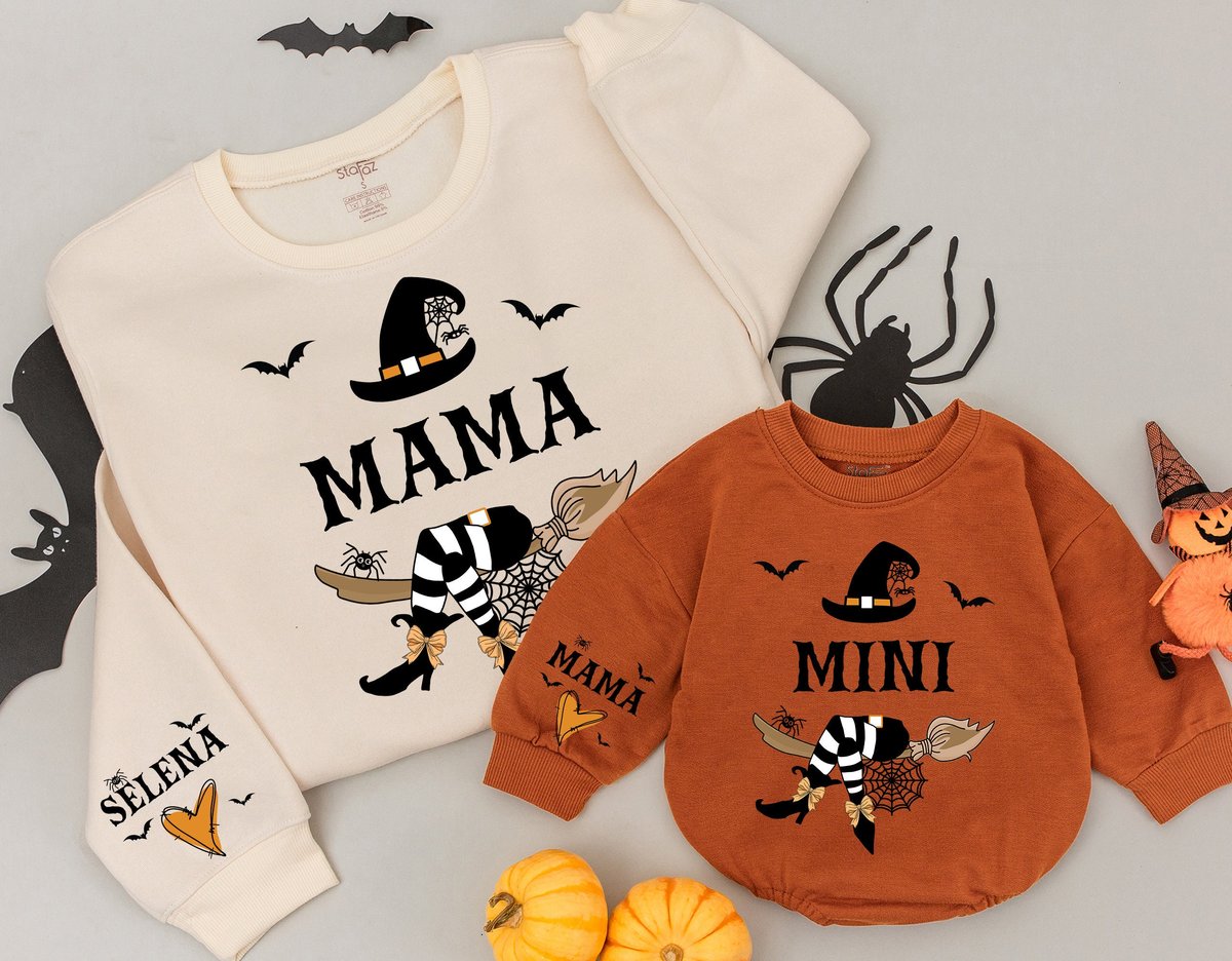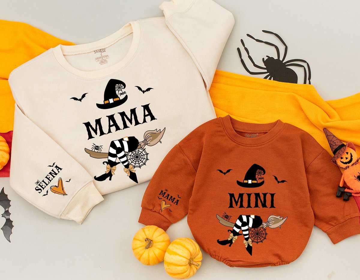 Custom Mama and Mini witchy Halloween Sweatshirts Baby romper gift Matching Family Outfits Best Gift 176