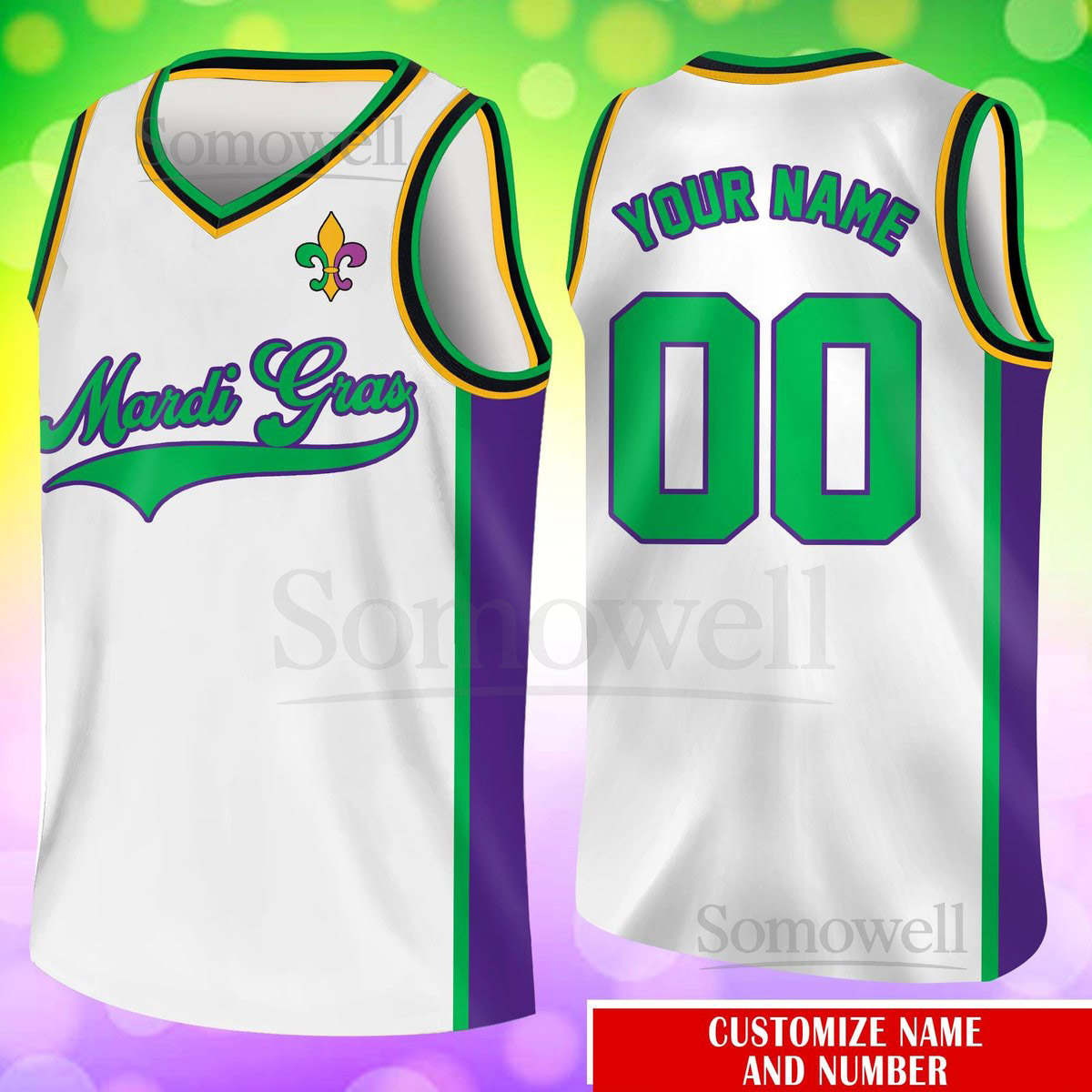 Custom Mardi Gras Basketball Jersey Team Name Number Basketball Jersey Team Basketball Jersey for Mardi Gras Parade New Orleans_192