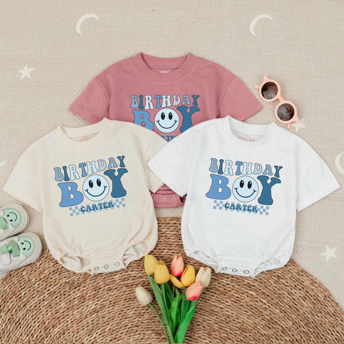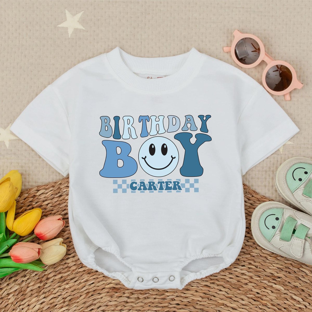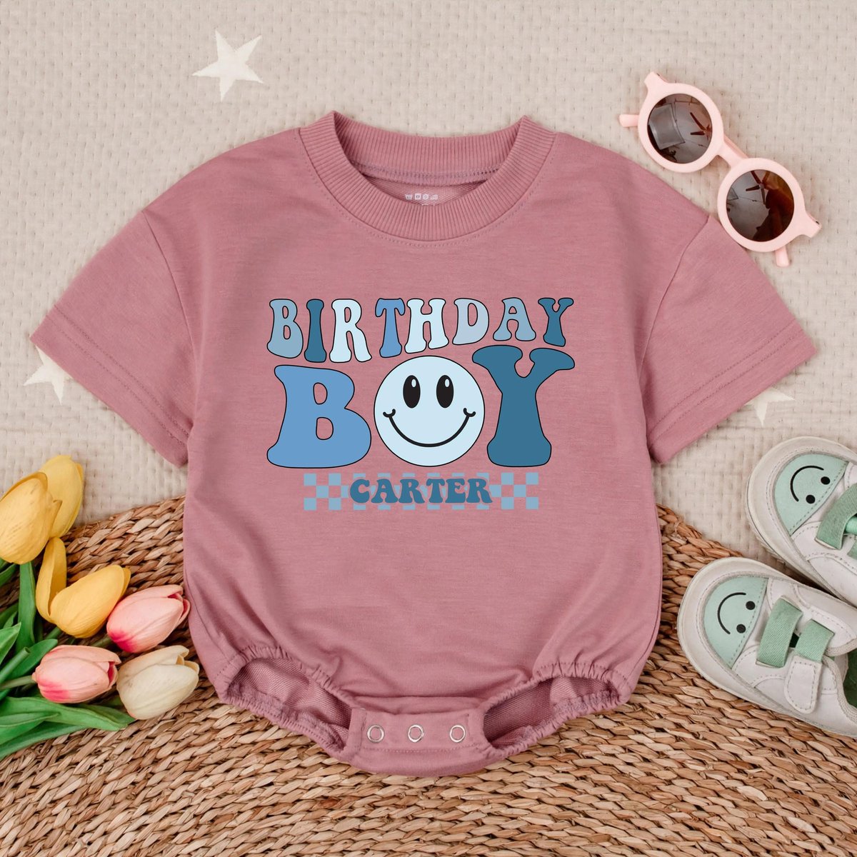 Custom Name 1st Birthday Boy Short Sleeve Bubble Romper Personalized Toddler Outfit Cute Baby Clothe