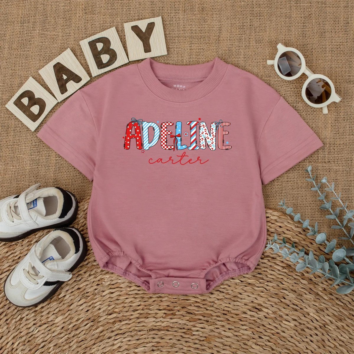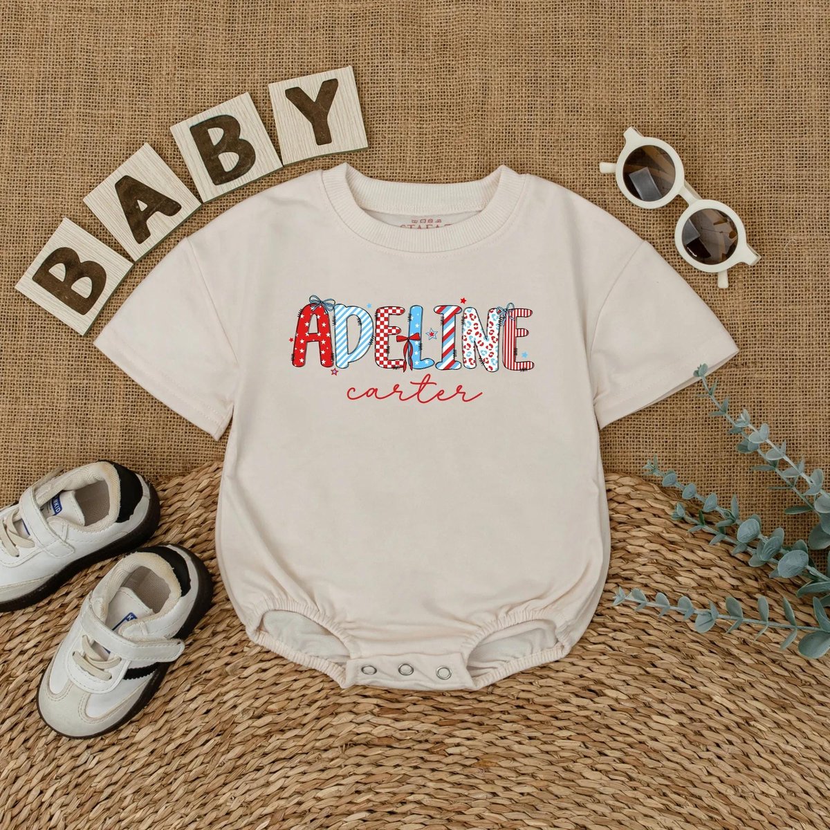 Custom Name 4th of July Baby Romper Personalized Independence Day Outfit Patriotic Baby Bodysuit Tsh 431
