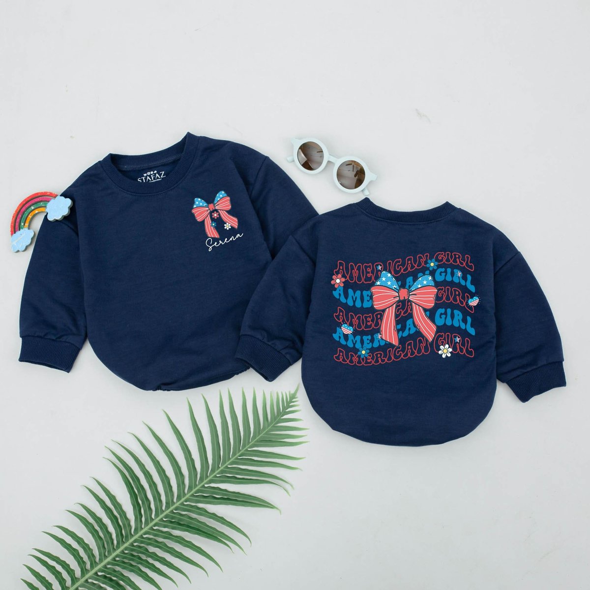 Be the first to review “Custom Name American Girl Romper 4th of July Baby Outfit Party in the USA Bodysuit July Birthday Gif”
