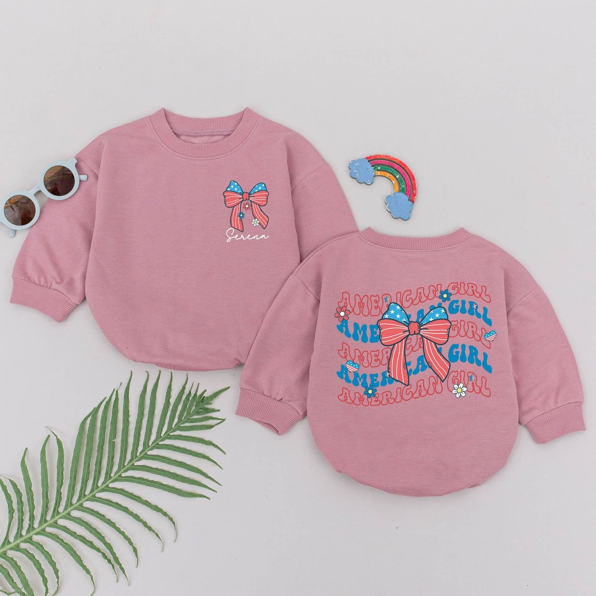 Custom Name American Girl Romper 4th of July Baby Outfit Party in the USA Bodysuit July Birthday Gif