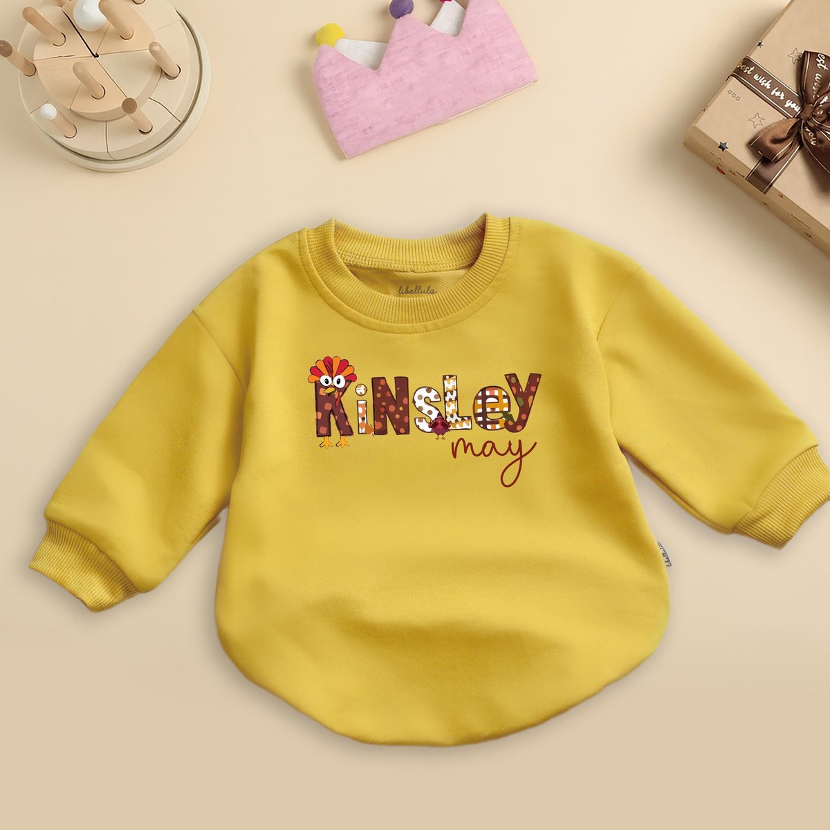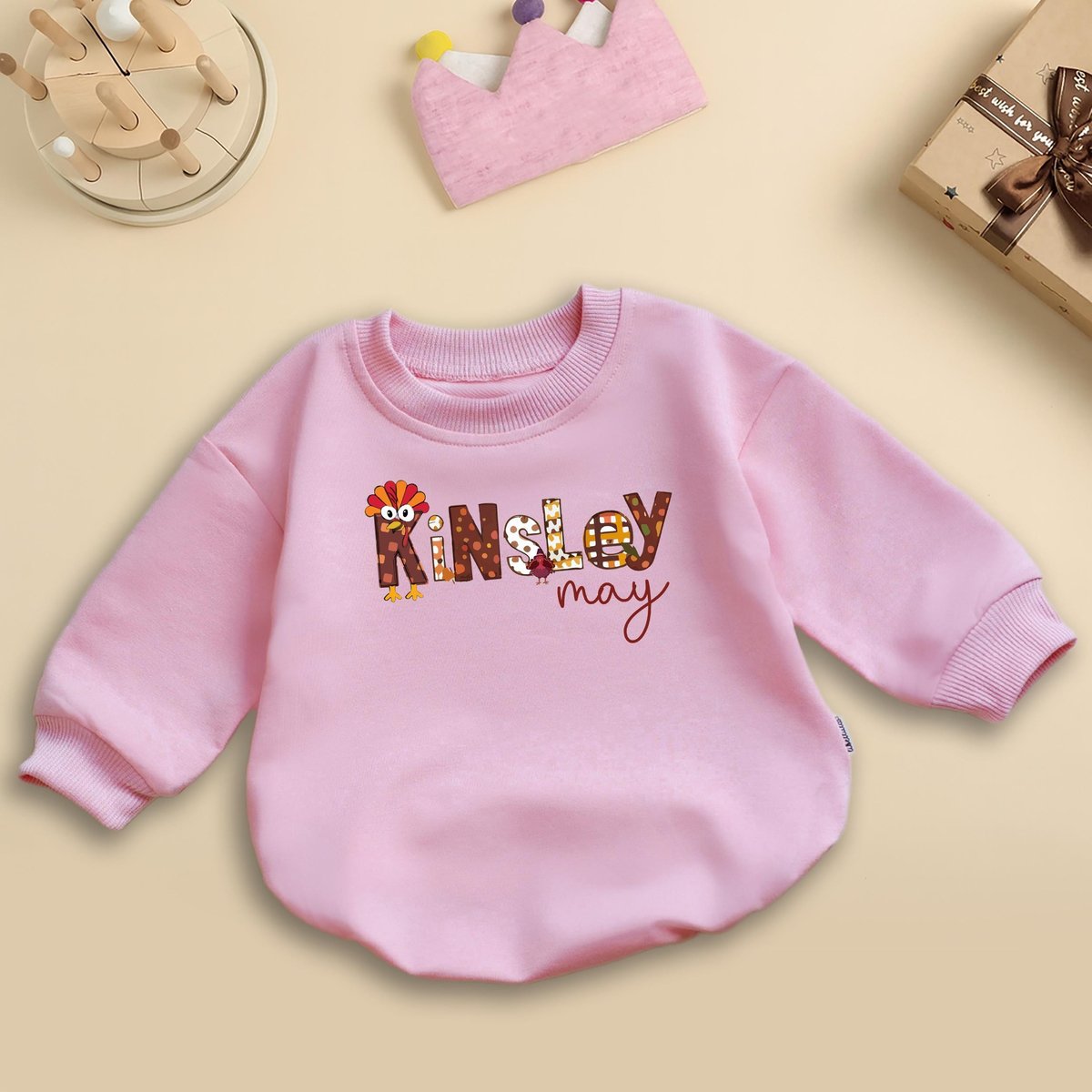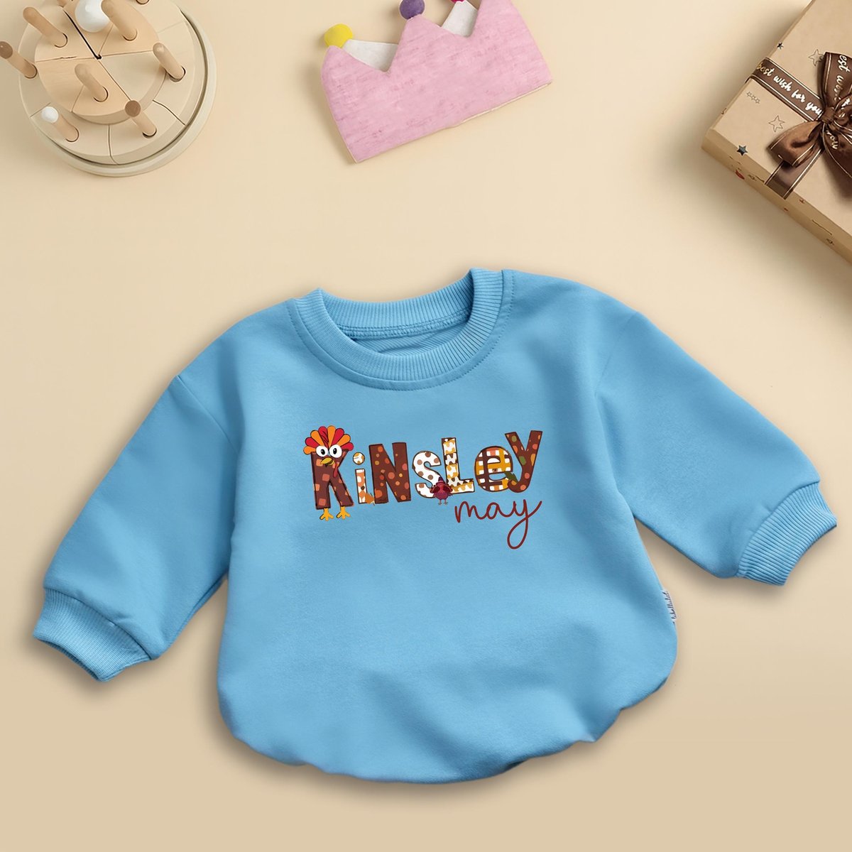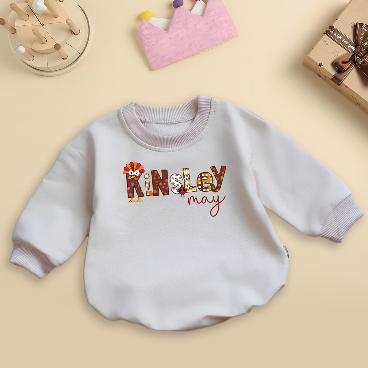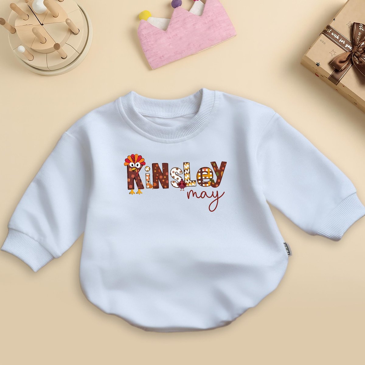 Custom Name Bubble Romper Funny Turkey Outfit First Thanksgiving Baby Clothes Fall Apparel Personali 436