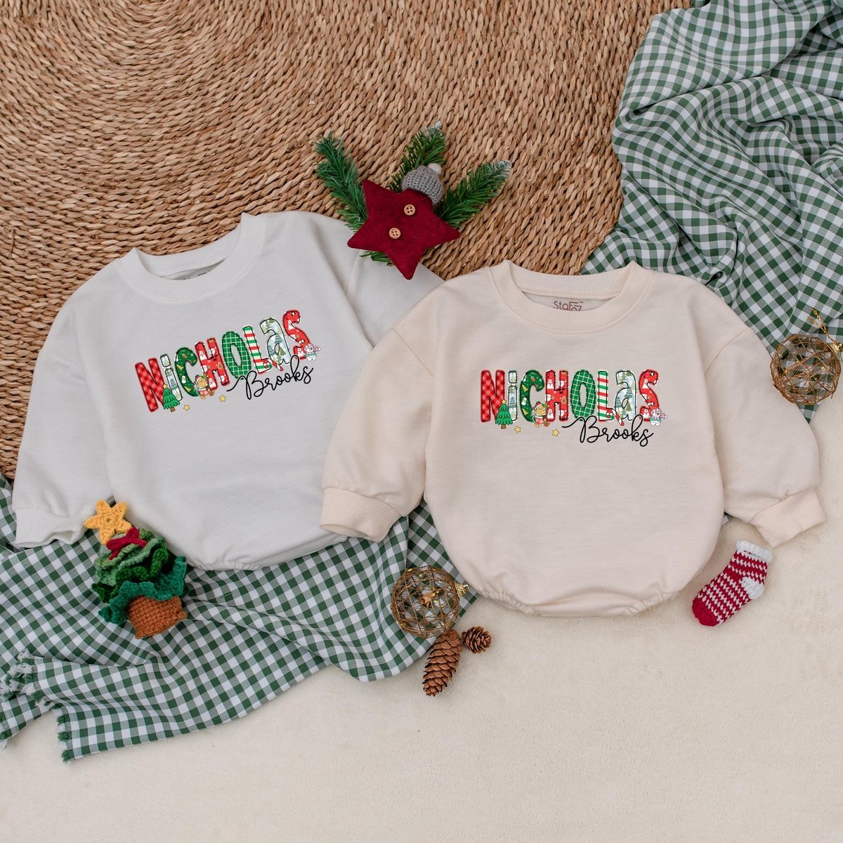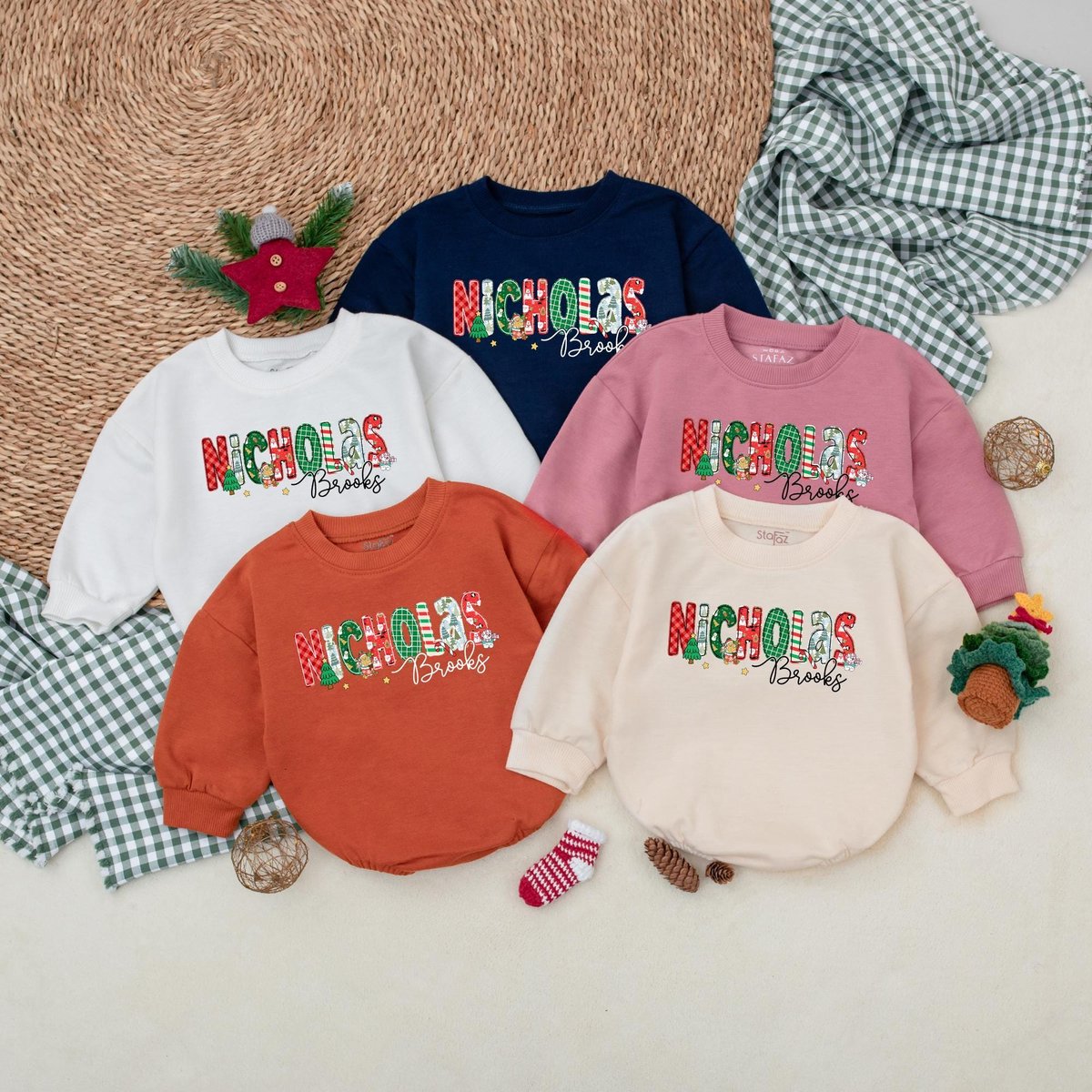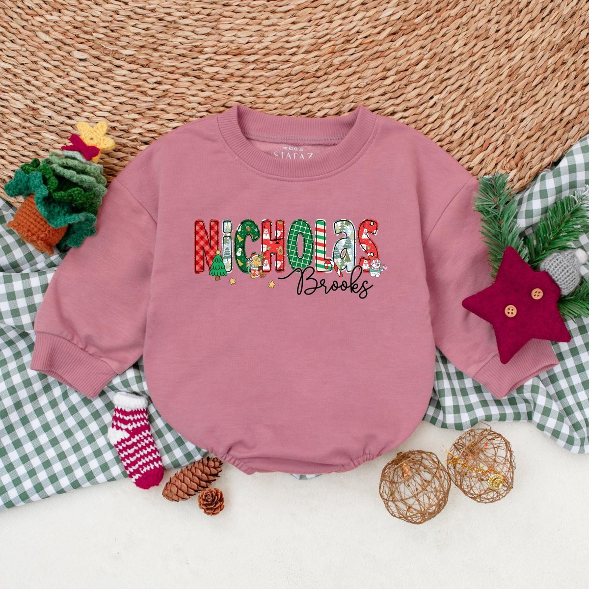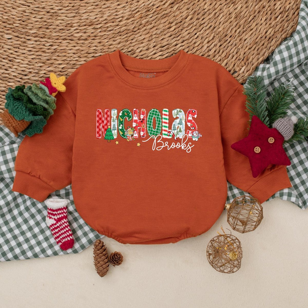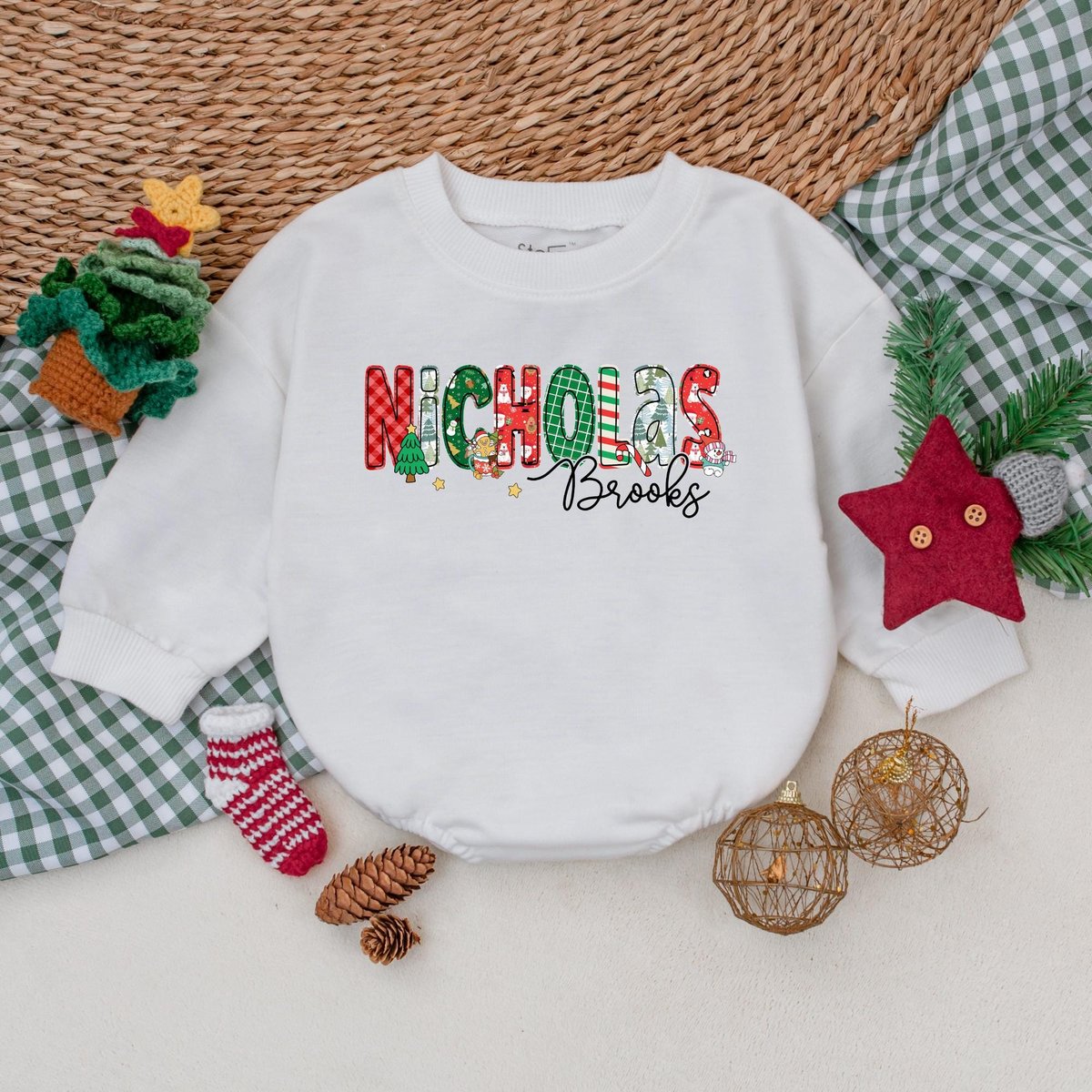 Be the first to review “Custom Name Christmas Baby Romper Baby Boy Christmas Outfit Baby Christmas Bodysuit My First Christm 180”