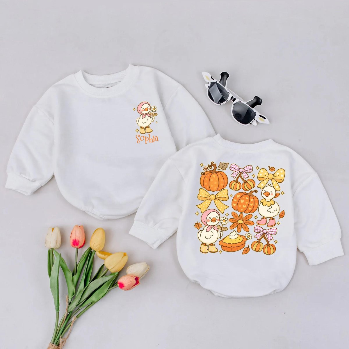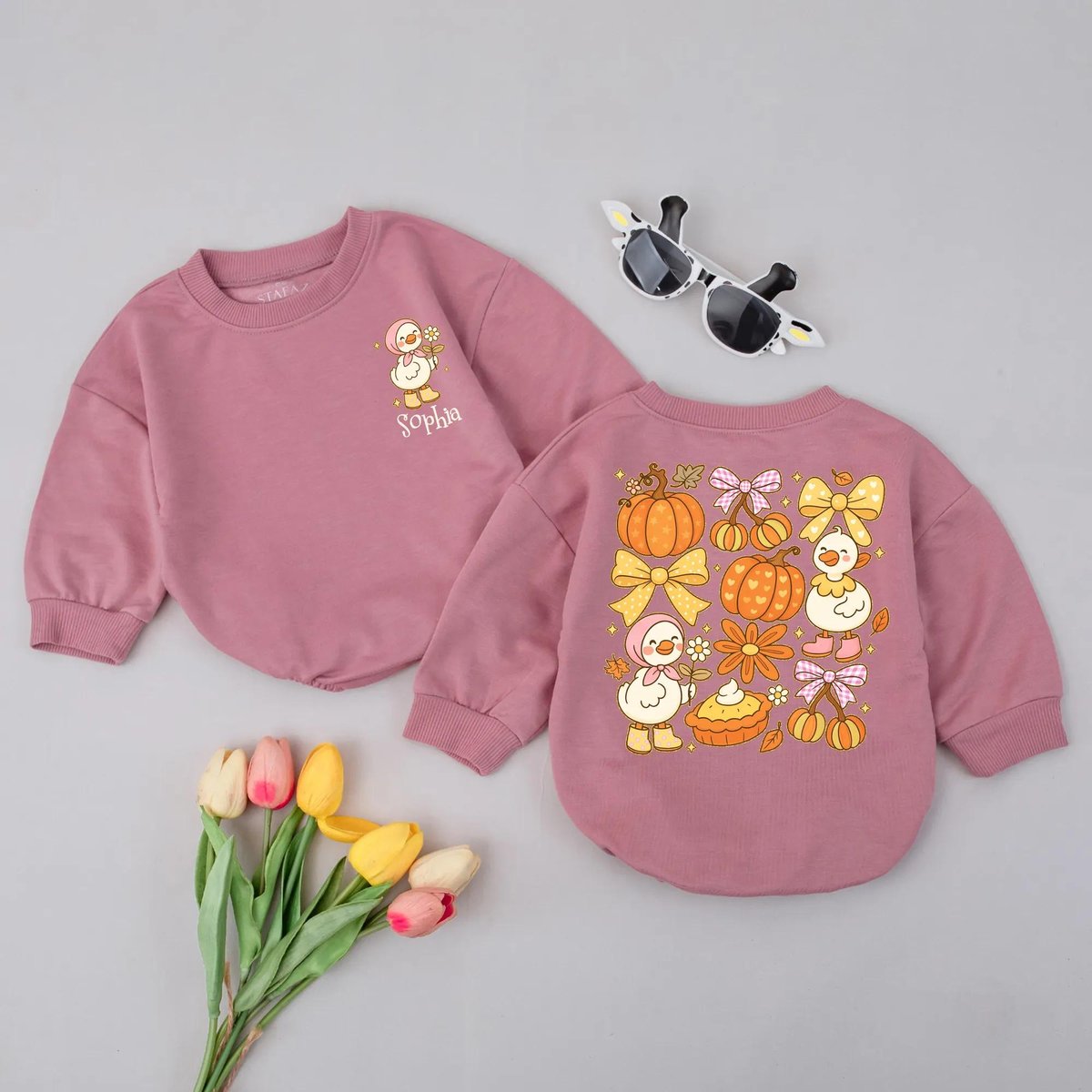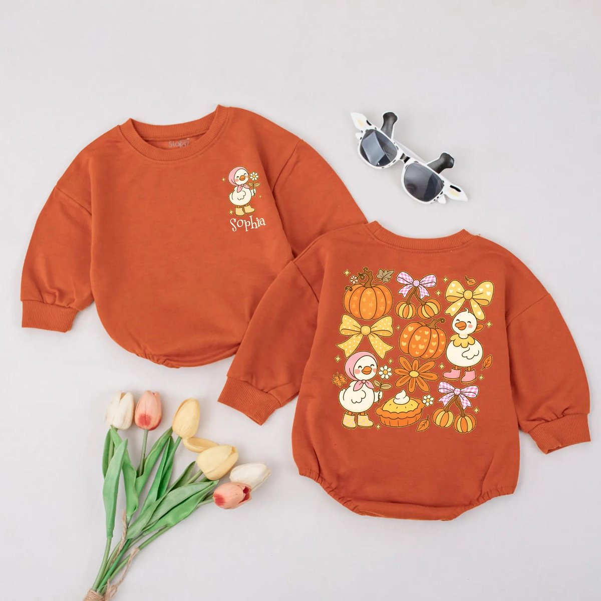 Custom Name Fall Goose Romper Preppy Pumpkin Baby Outfit Silly Goose Thanksgiving Newborn Clothes Ba 435