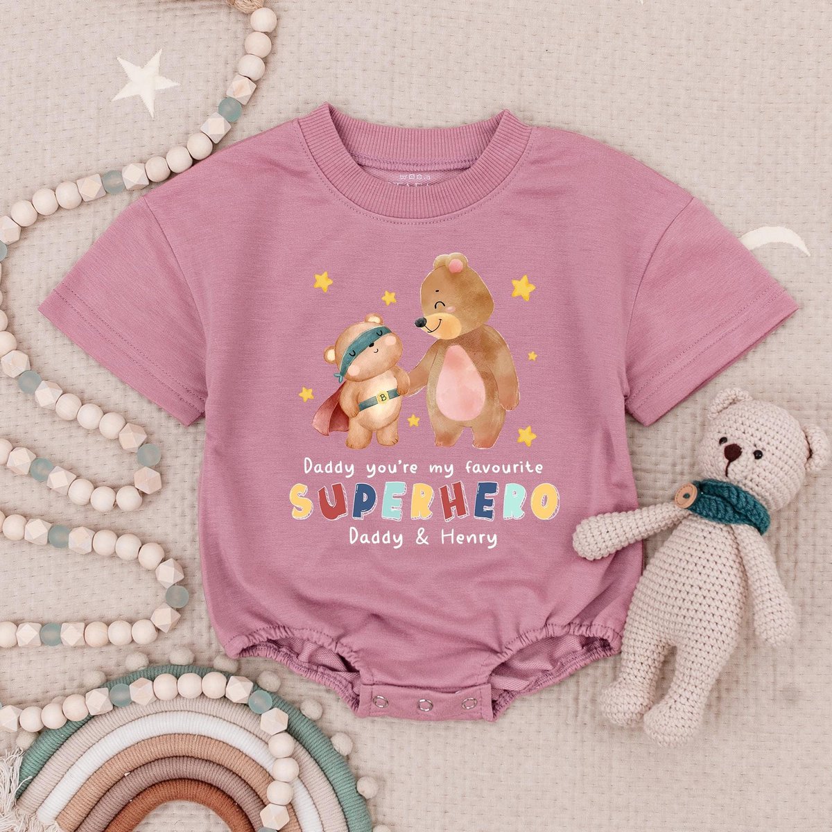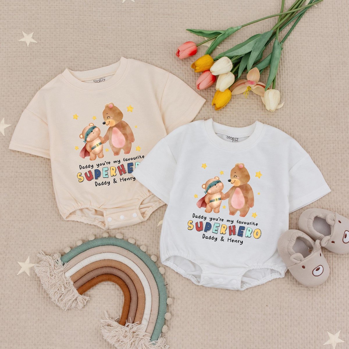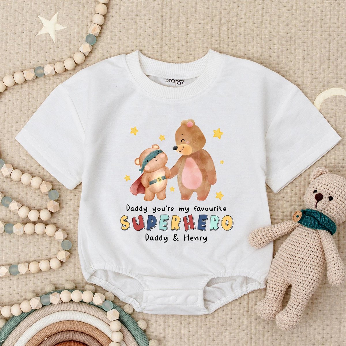 Custom Name Father’s Day Baby Romper Personalized Hero Babygrow Romper 1st Father’s Day Gift Anima