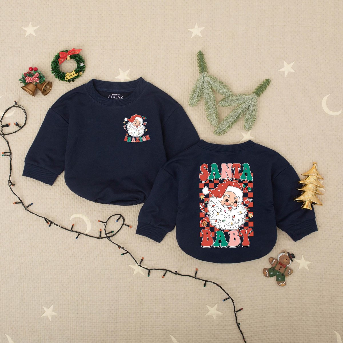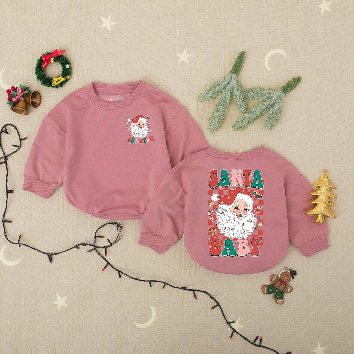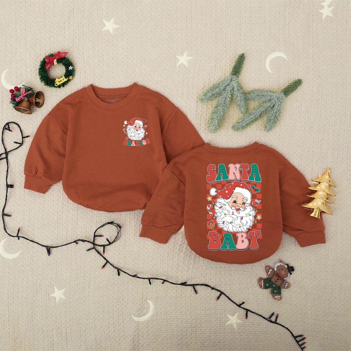 Custom Name Santa Merry Christmas Baby Romper Christmas Claus Baby Bodysuit Babys First Holiday Outf