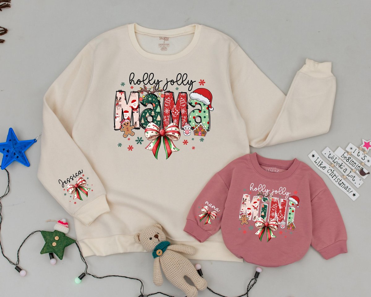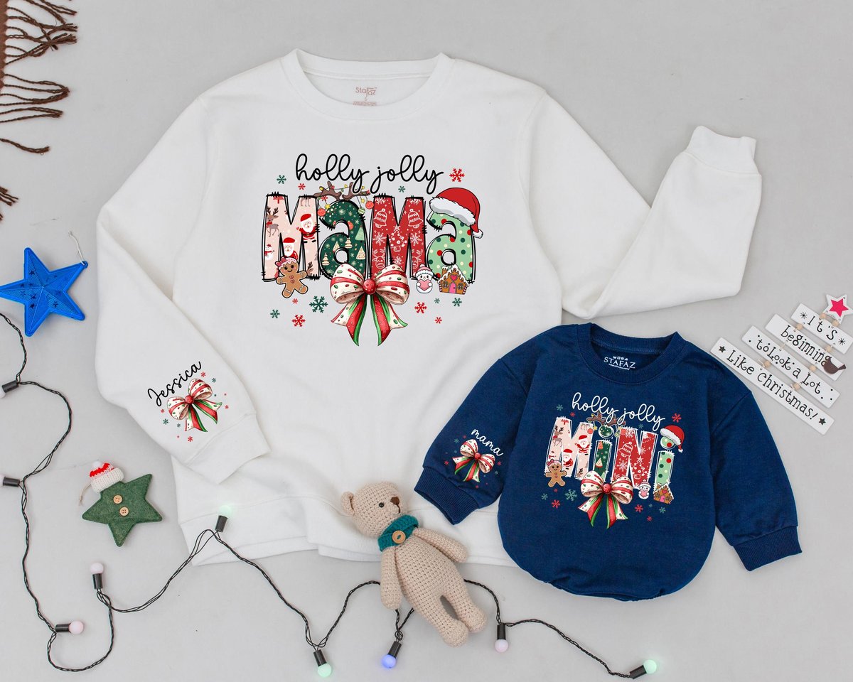 Custom Name Sweatshirt Holly Jolly Family Christmas Mommy and Me Sweaters Matching Family Outfit Mam 179