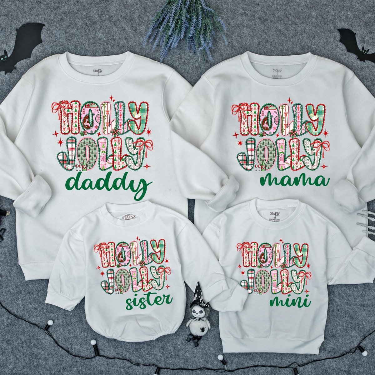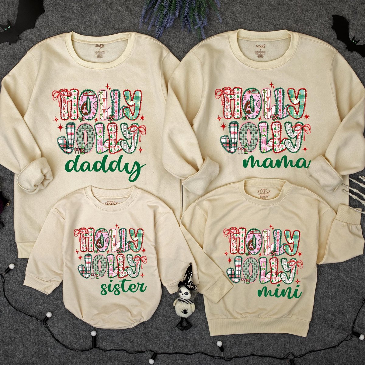 Custom Name Sweatshirt Holly Jolly Family Christmas Mommy and Me Sweaters Matching Family Outfit Mam 436