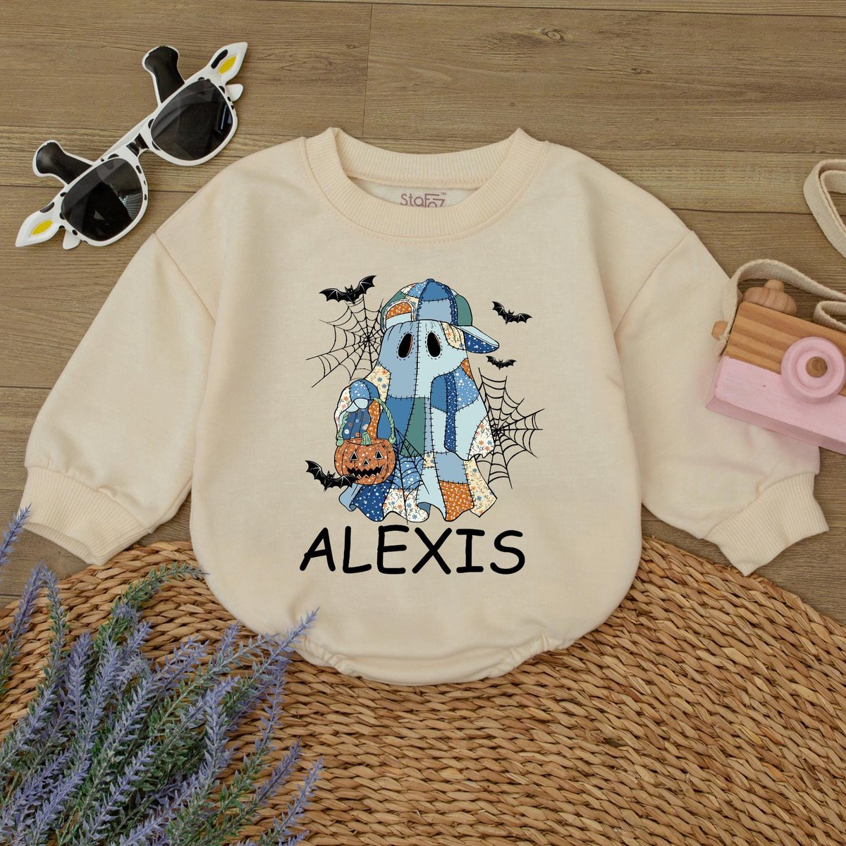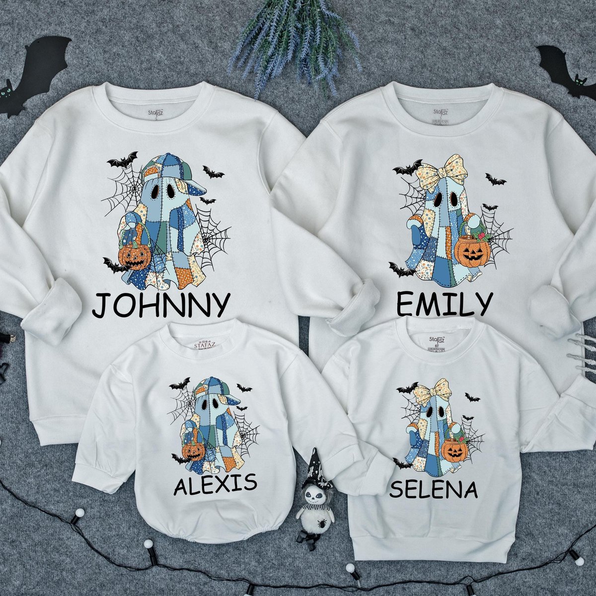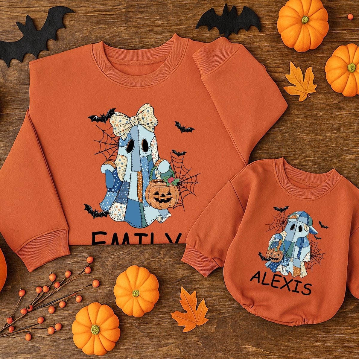 Be the first to review “Custom Patchwork Halloween Ghost Sweatshirt Halloween boo Baby romper Spooky Season family Sweater H 436”