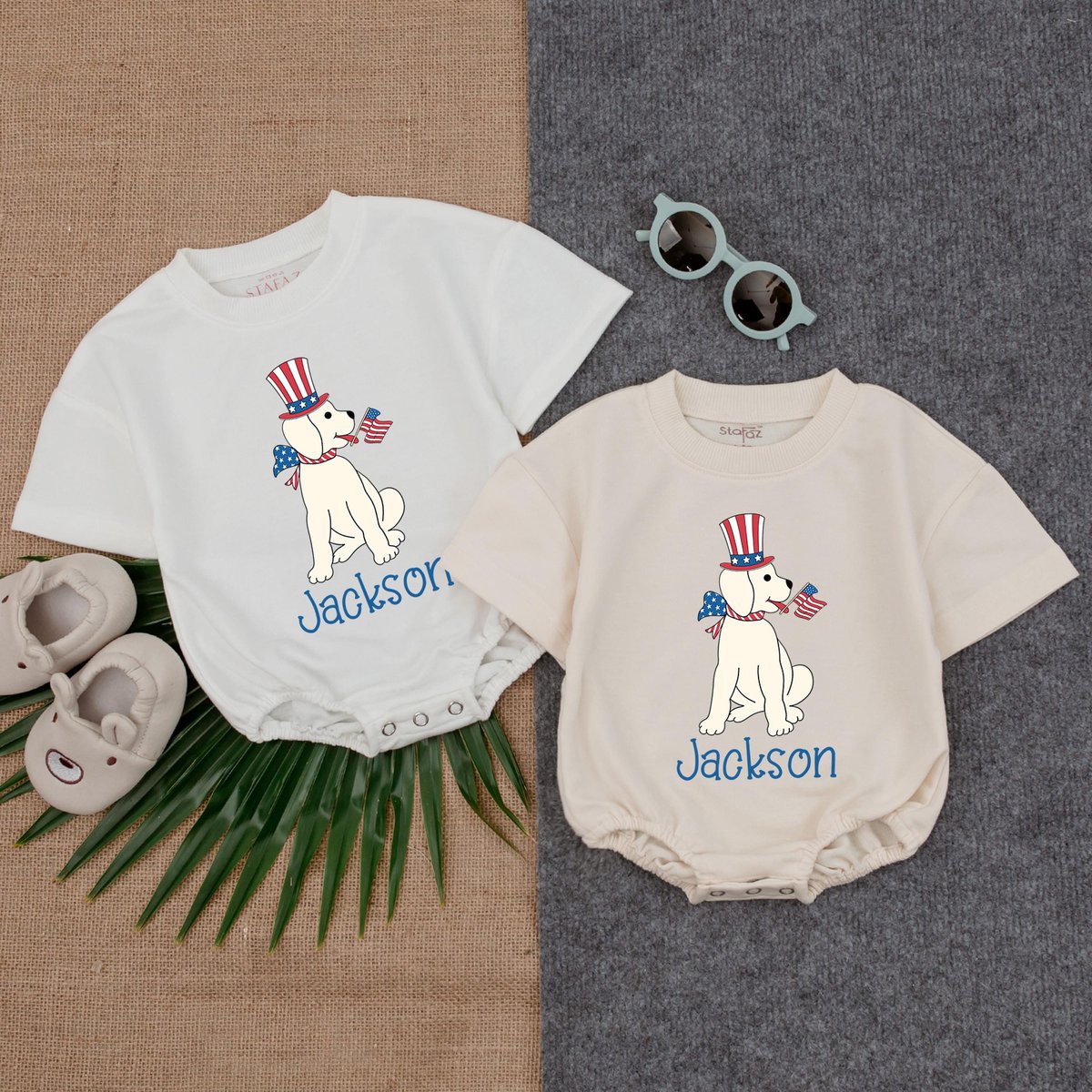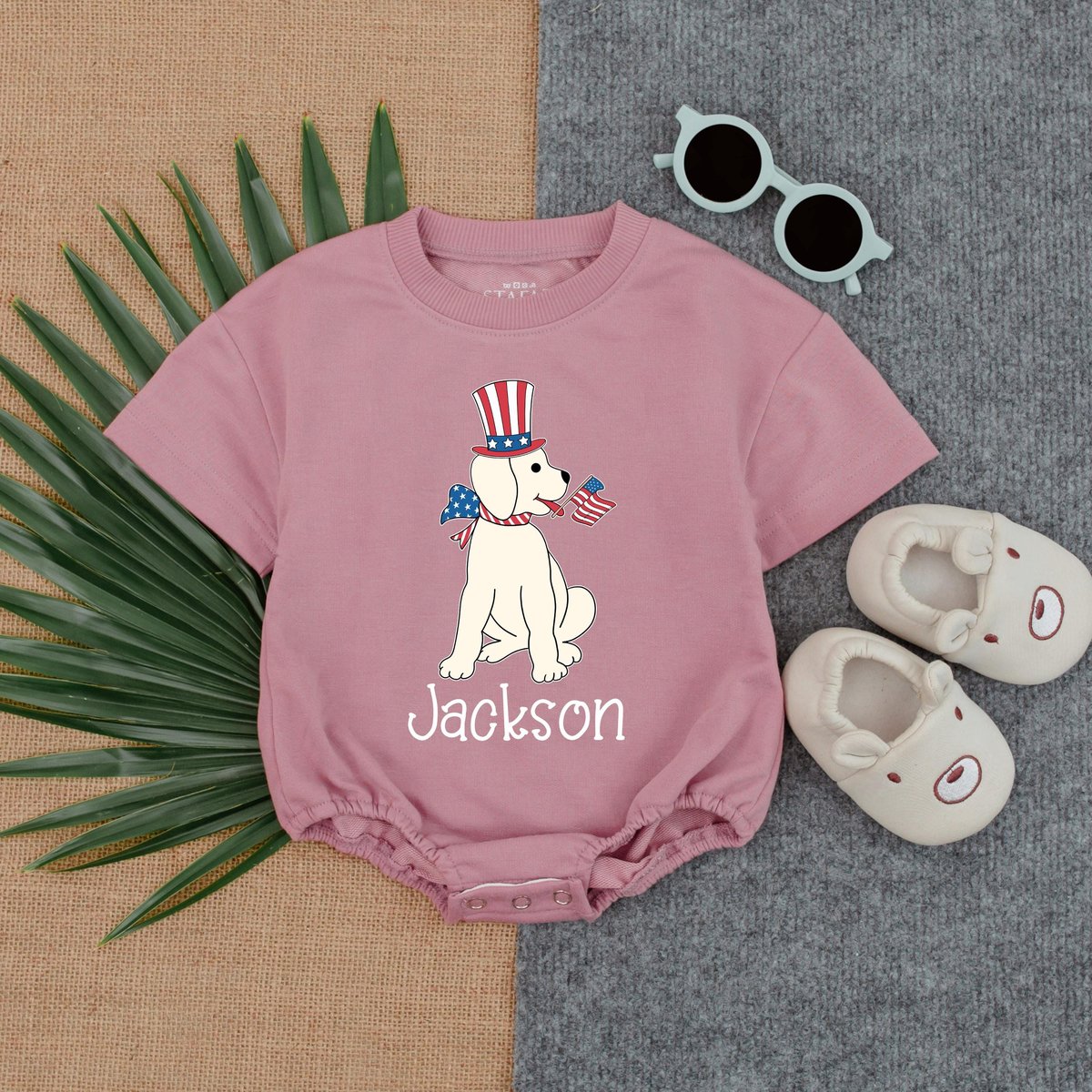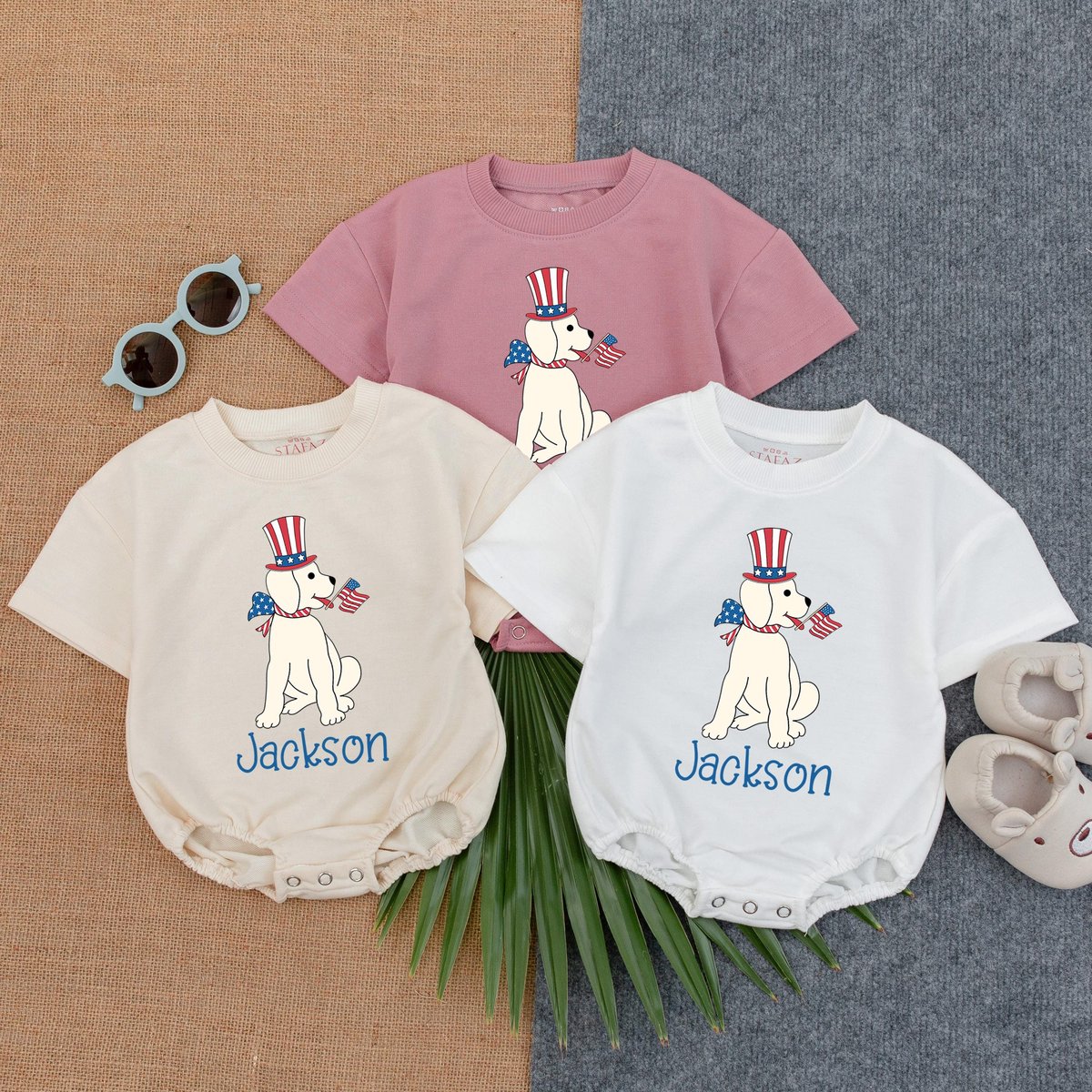 Be the first to review “Custom Puppy Boy 4th of July Bubble Romper Personalized Red White Blue Baby Outfit Patriotic Toddler 431”