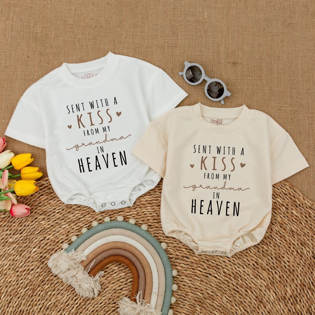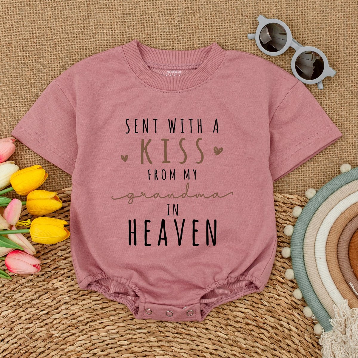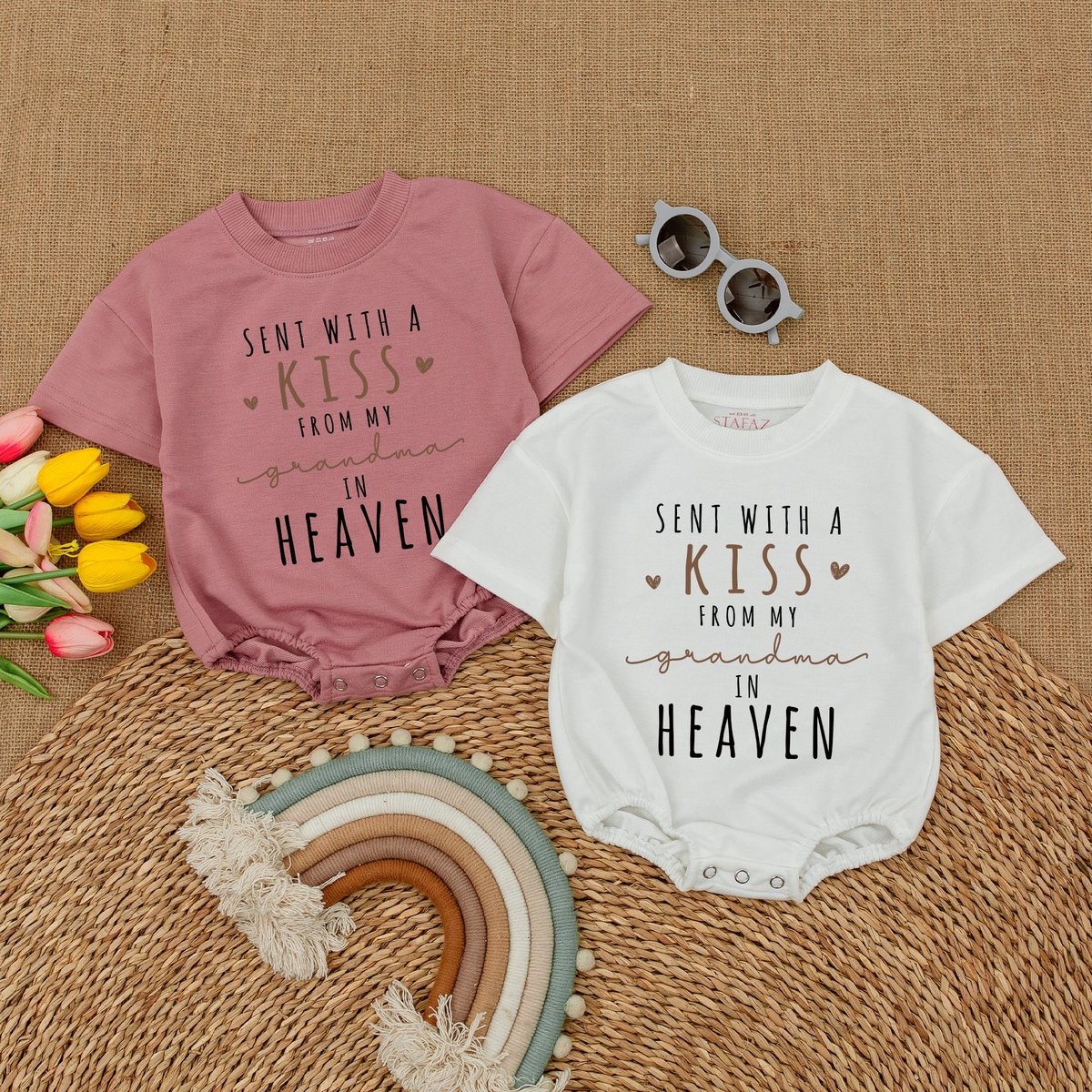 Custom Sent With A Kiss From My Grandma In Heaven Romper New Grandbaby Bodysuit Newborn Bubble Rompe 173