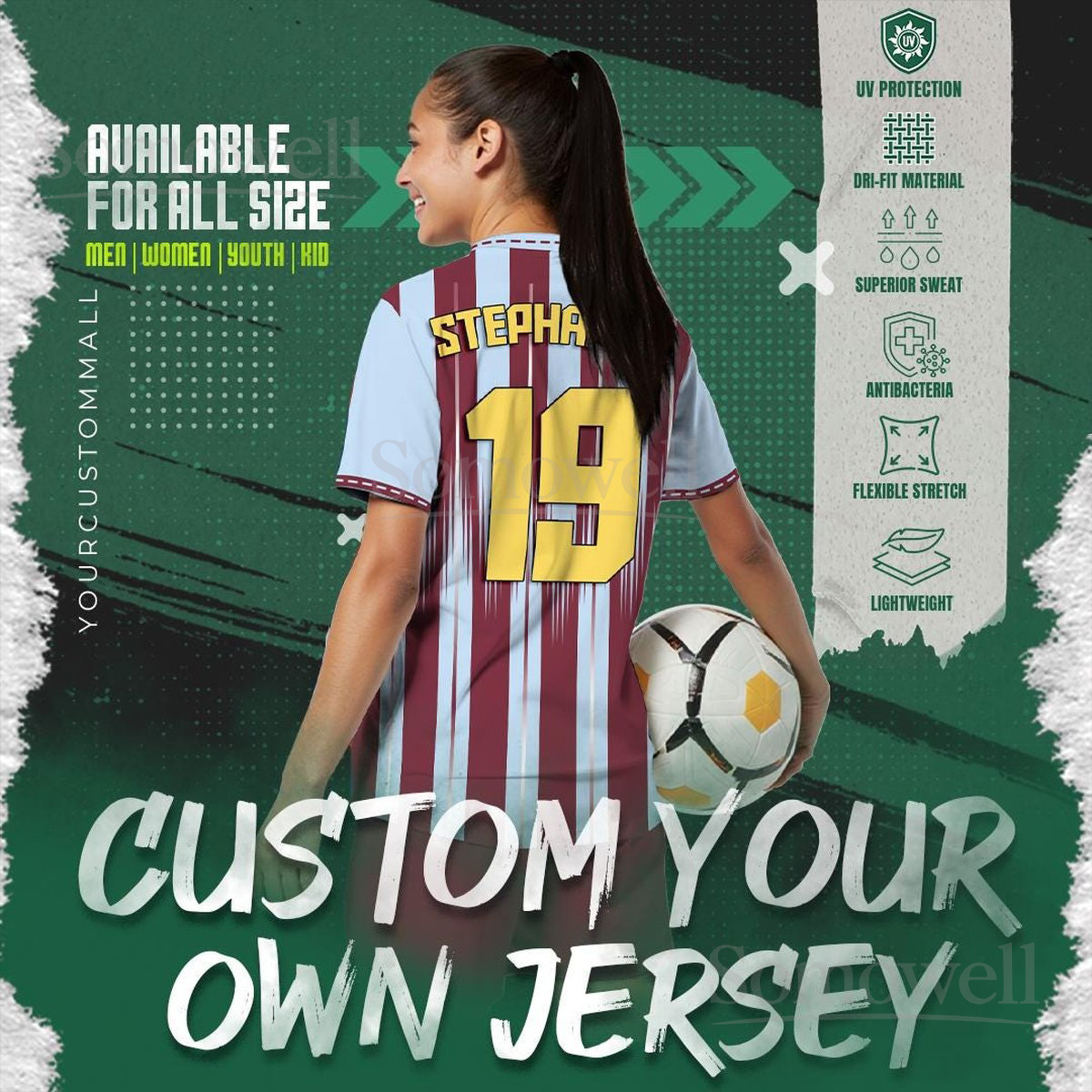 Custom Soccer Jersey Vertical Stripes Design Personalized Team Logo Name and Number Edition for All Ages