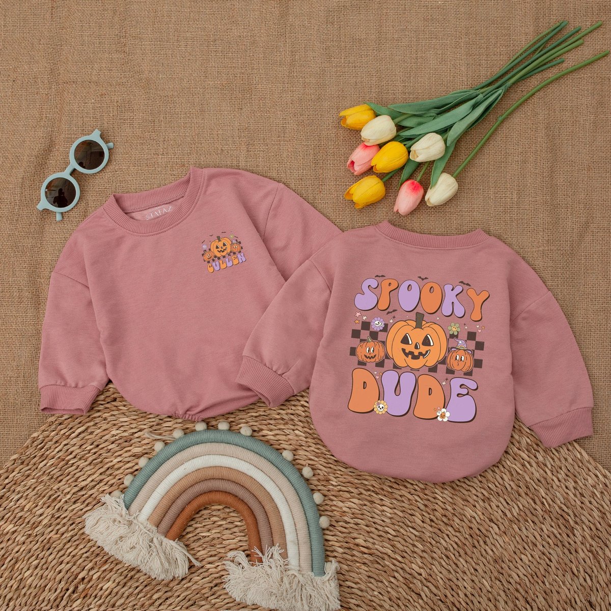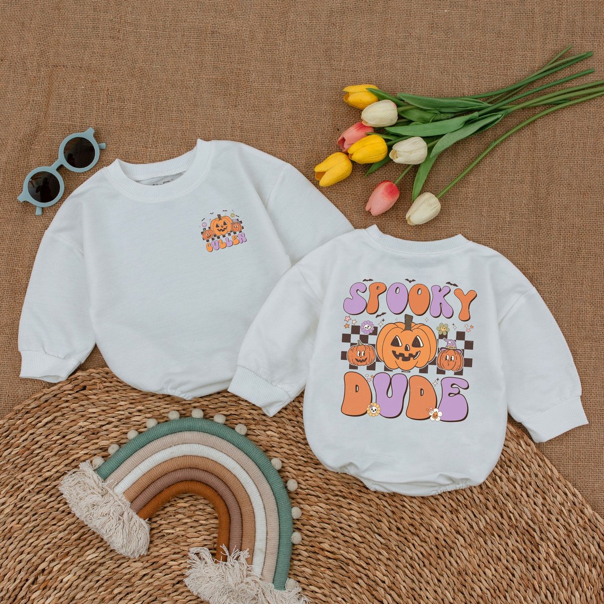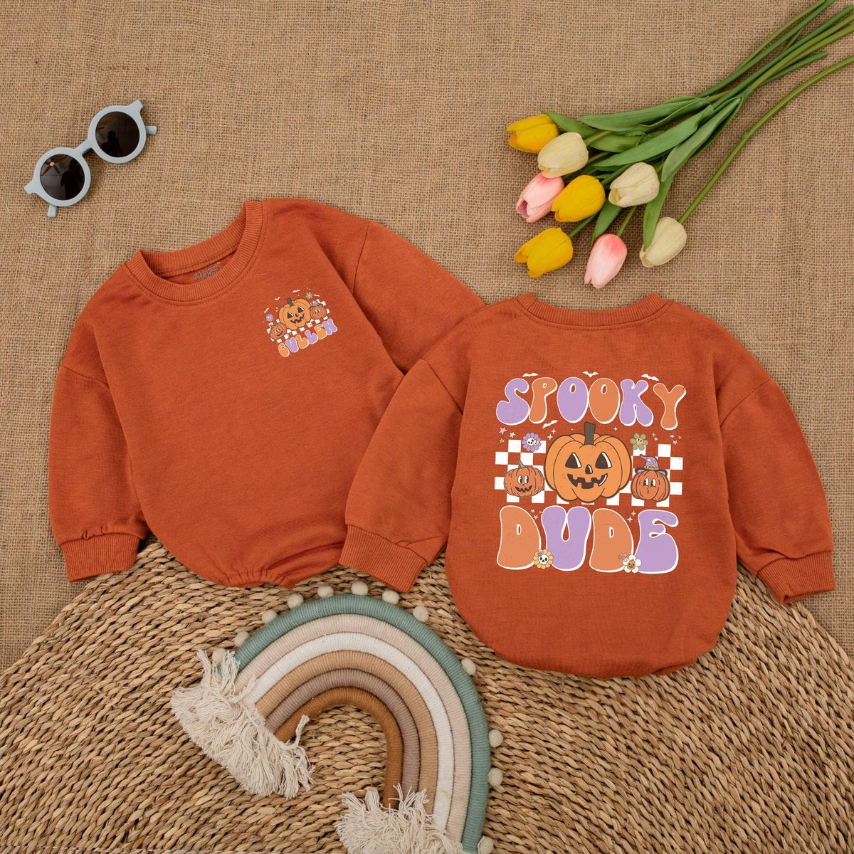 Custom Spooky Dude Baby Romper Retro Halloween Bodysuit Vintage Halloween Fall Baby Outfit Halloween 173