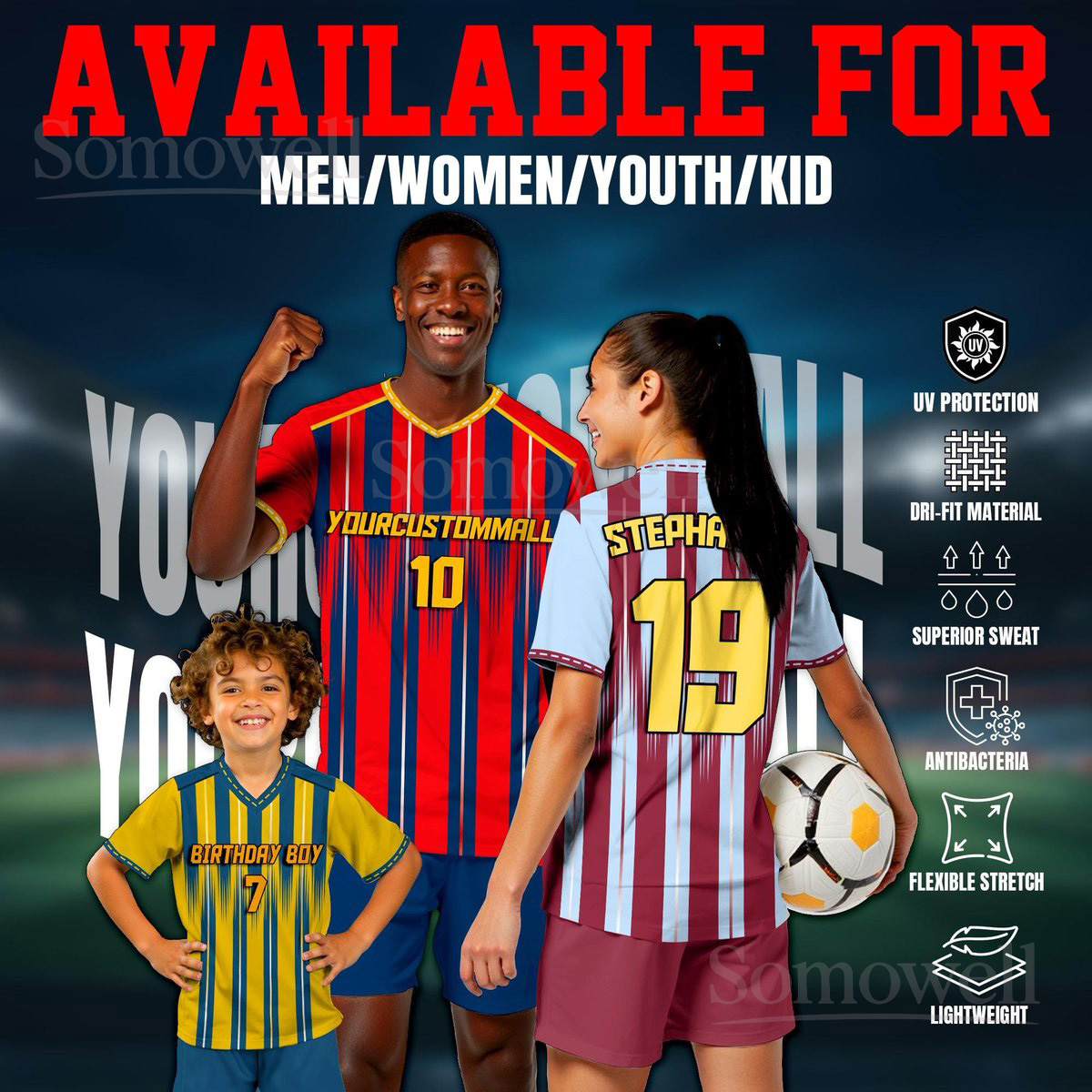 Custom Team Soccer Jersey Striped Design Personalized Name Number and Logo Edition