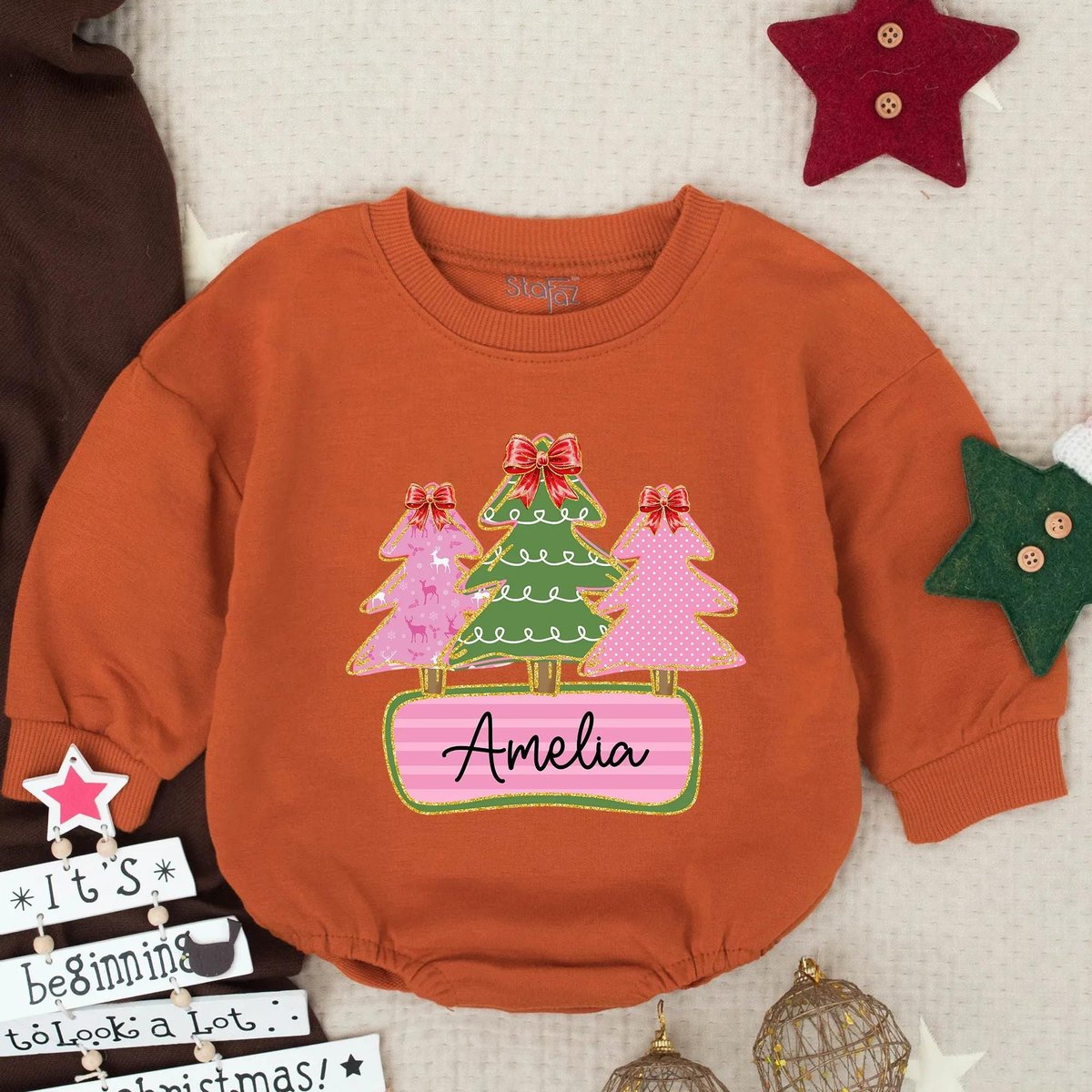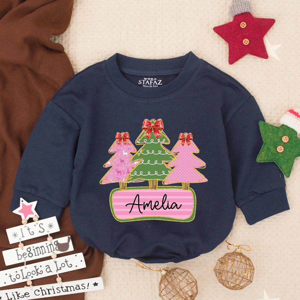 Customized Baby Name Christmas Bubble Romper Toddler Girl Christmas Tree Baby Toddler Custom Holiday