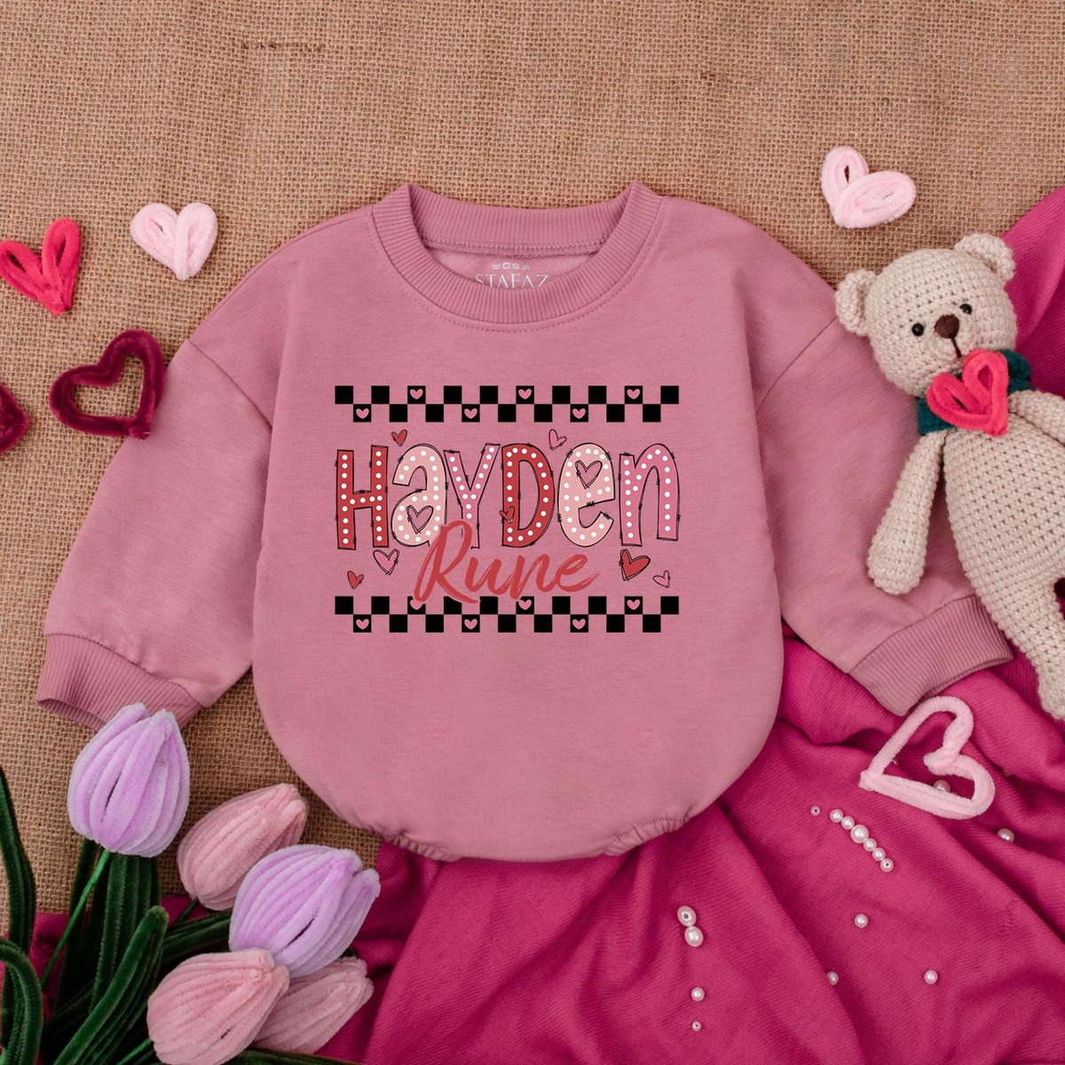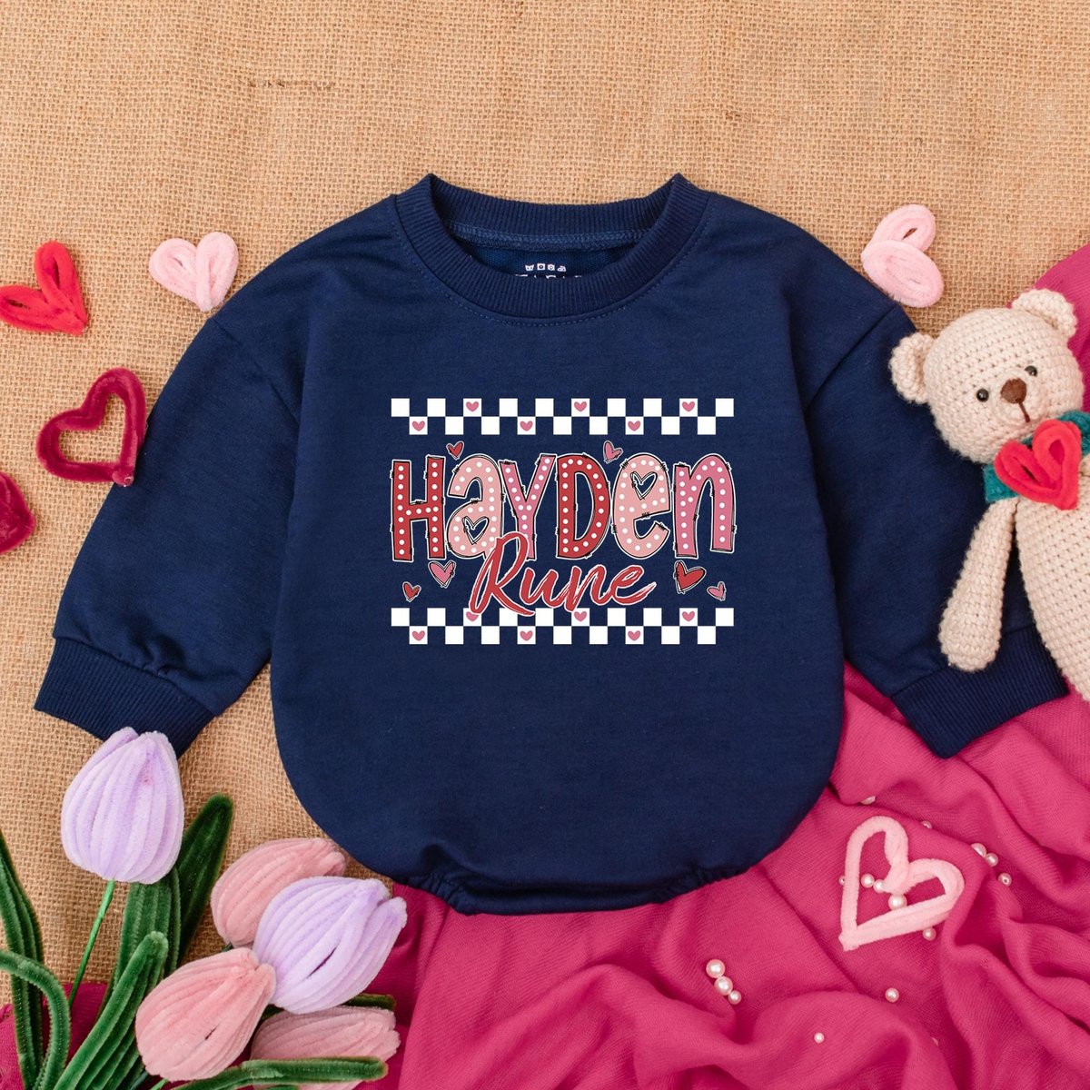 Be the first to review “Customized Checker Valentine Baby Bubble Romper Hearts and Bows Baby Outfit My First Valentine Outfi”