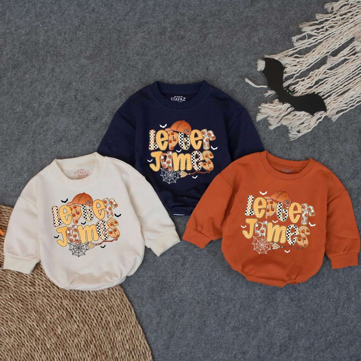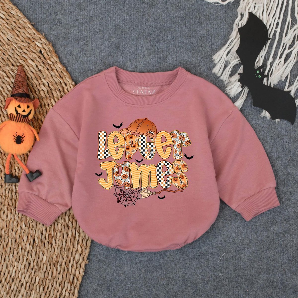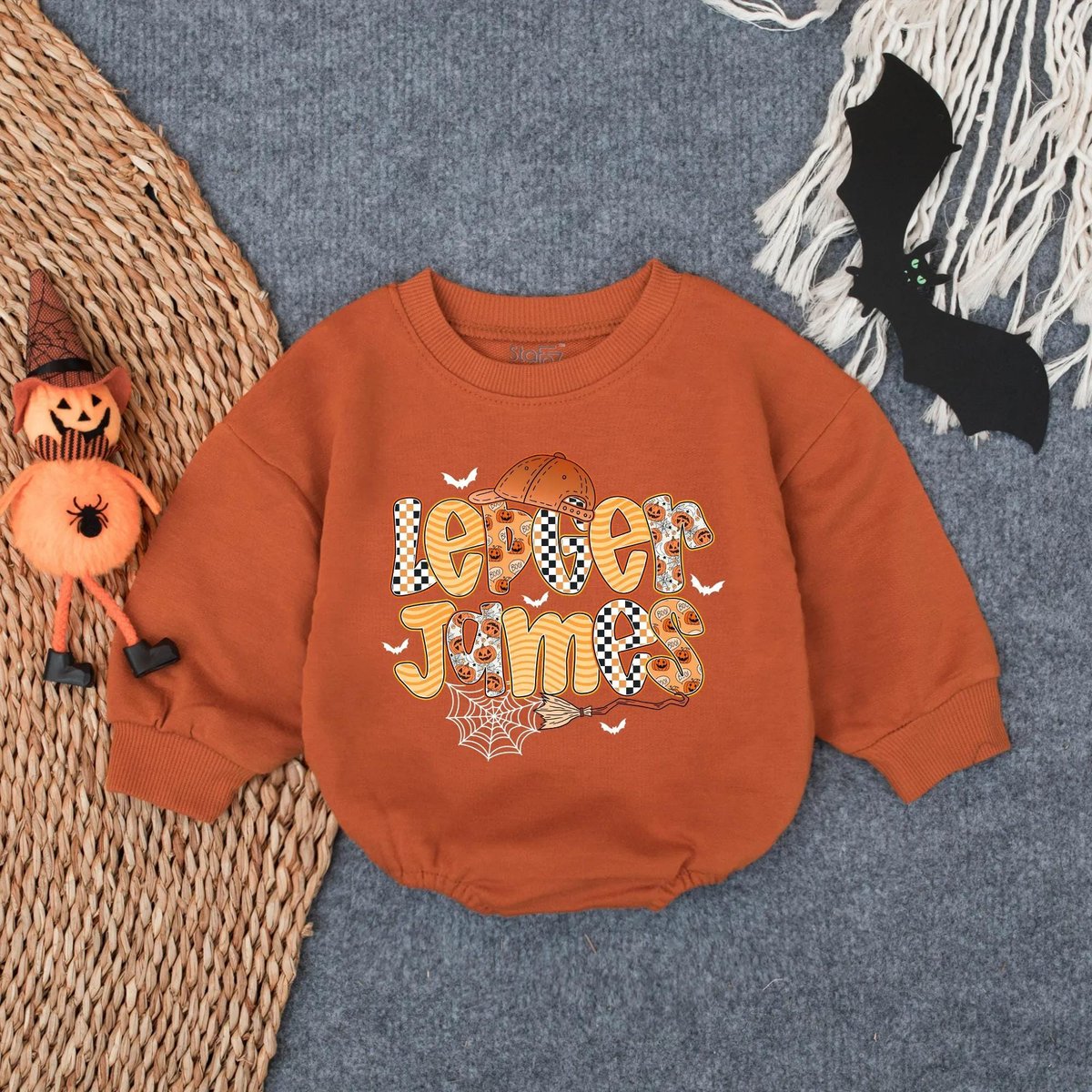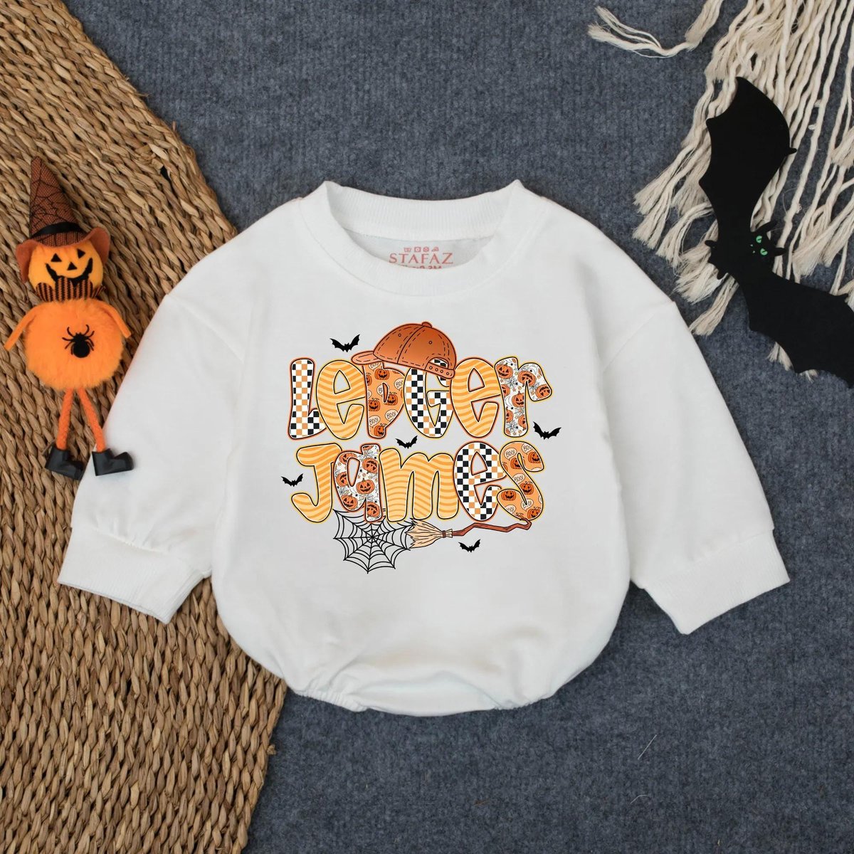 Customized Halloween Boy Bubble Romper Baby Spooky Outfit Toddler Fall Costume Infant Trick or Treat 434