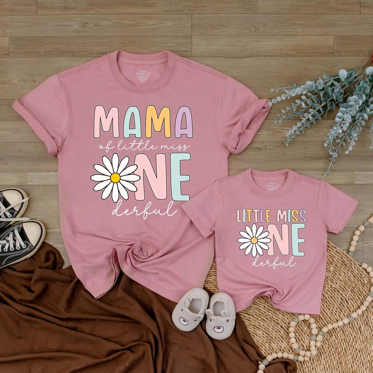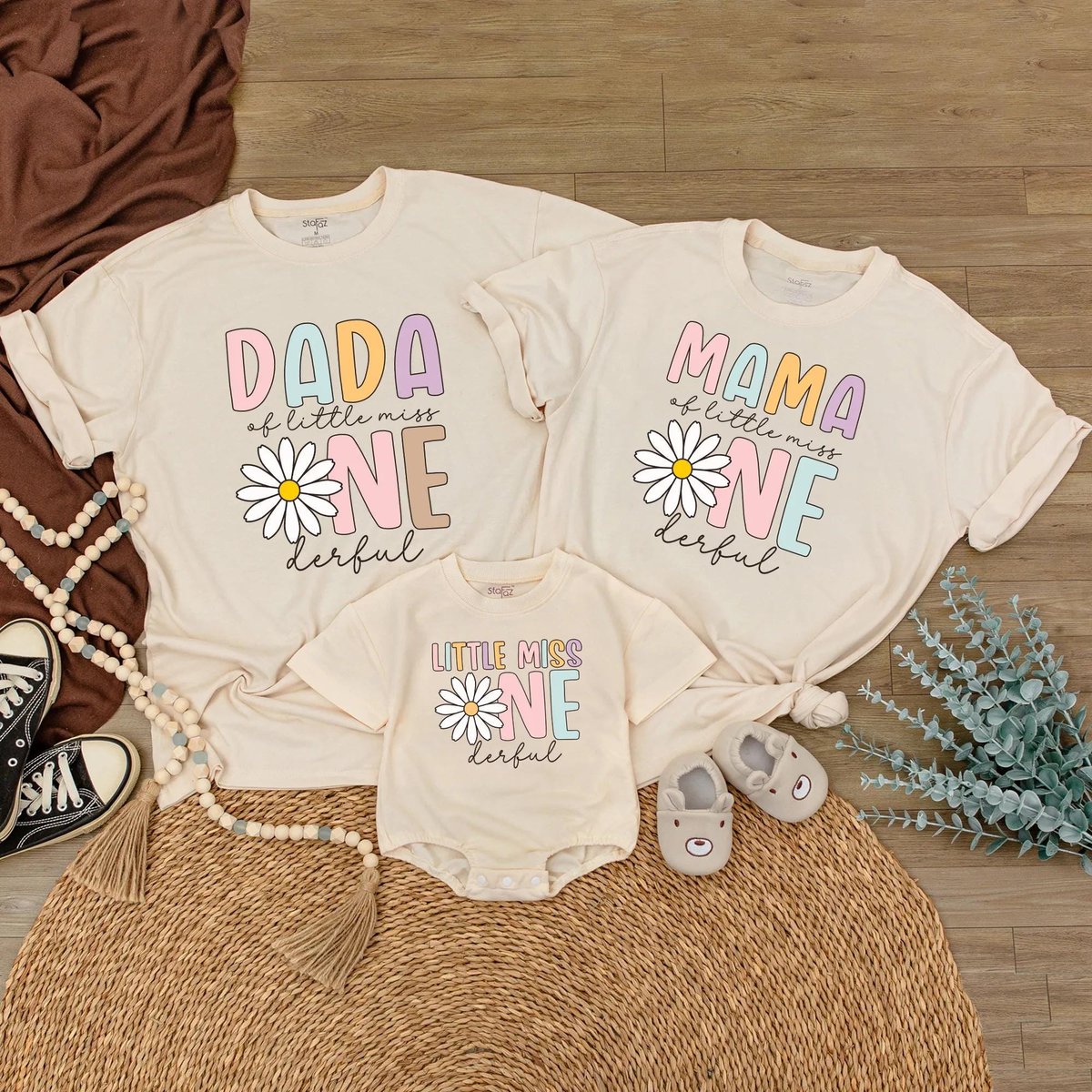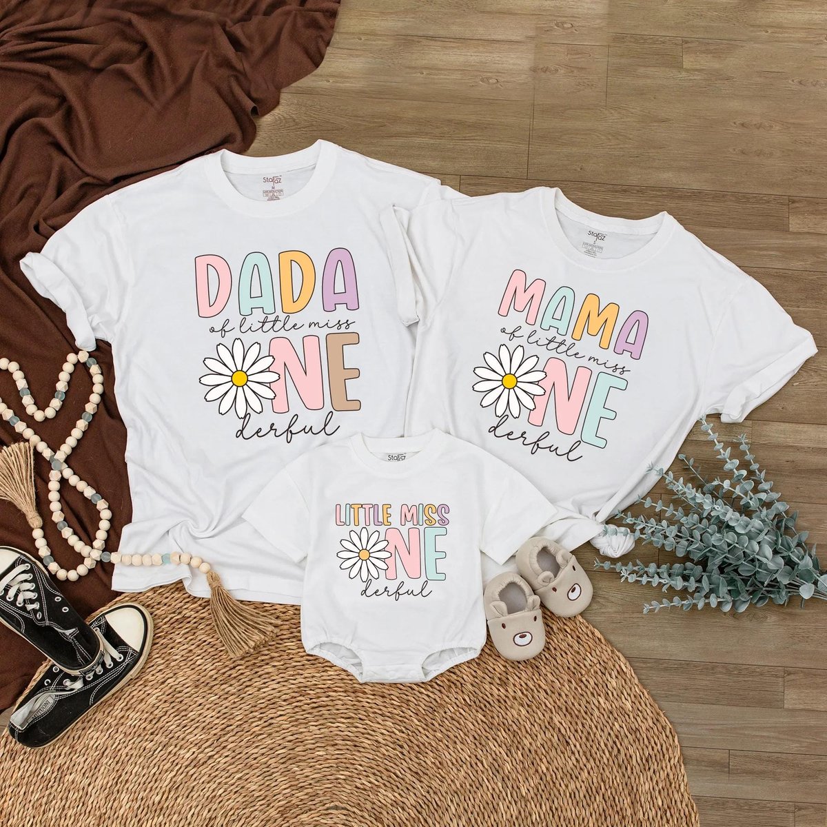 Customized Little miss onederful First Birthday Family Matching Shirts 1st Birthday Daisy Flower Lit
