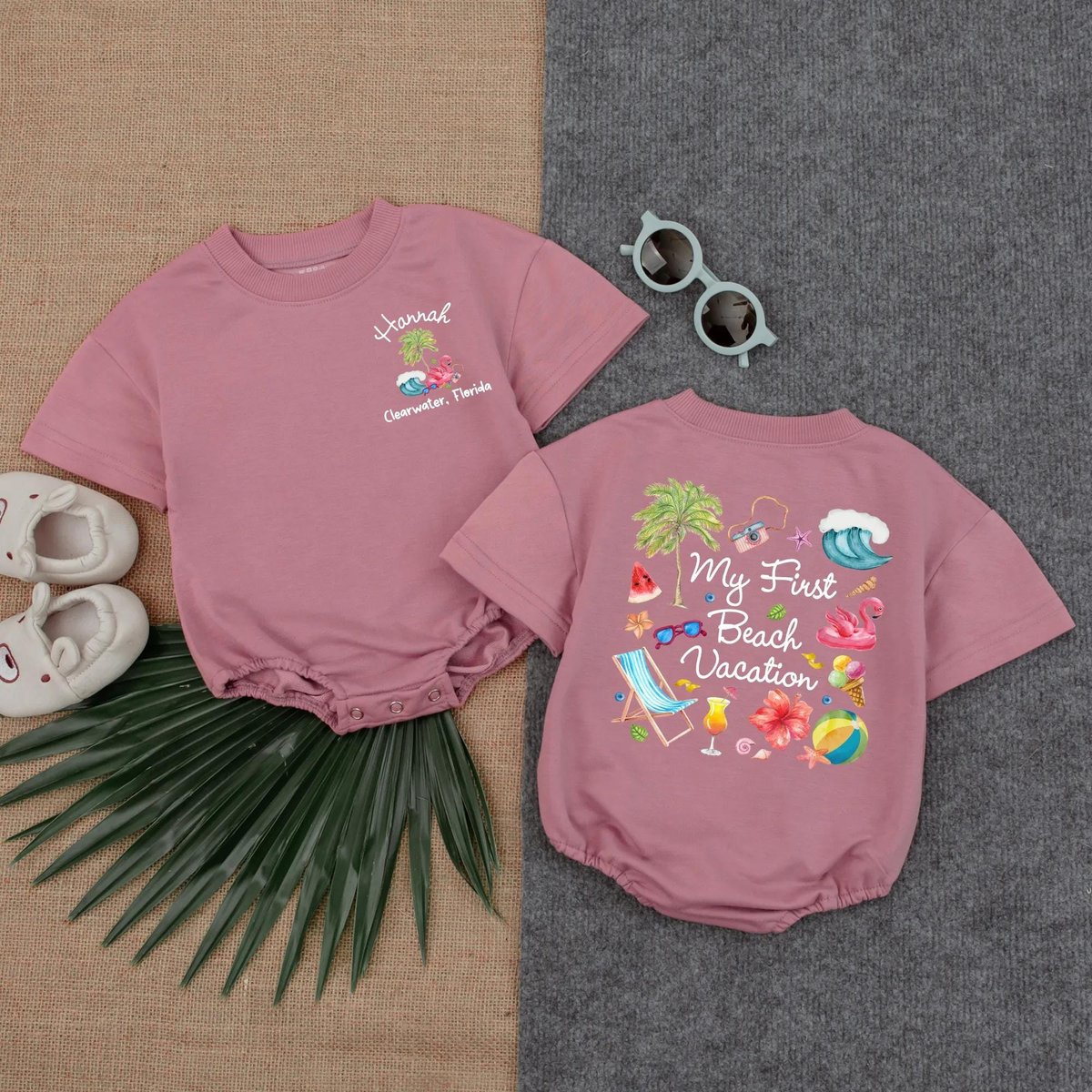 Customized My First Beach Vacation Baby Romper Short Sleeve Summer Baby Clothes 1st Vacation Baby 435