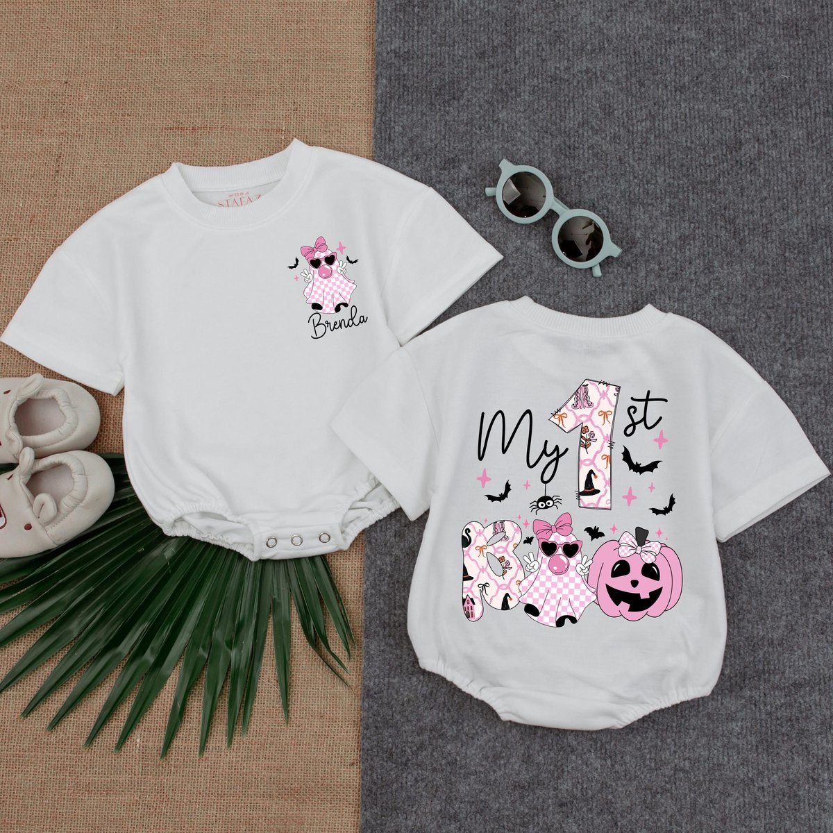 Customized My First Boo T shirt Bubble Romper Pink Boo Girl Outfit Toddler Halloween Clothes Spooky 433